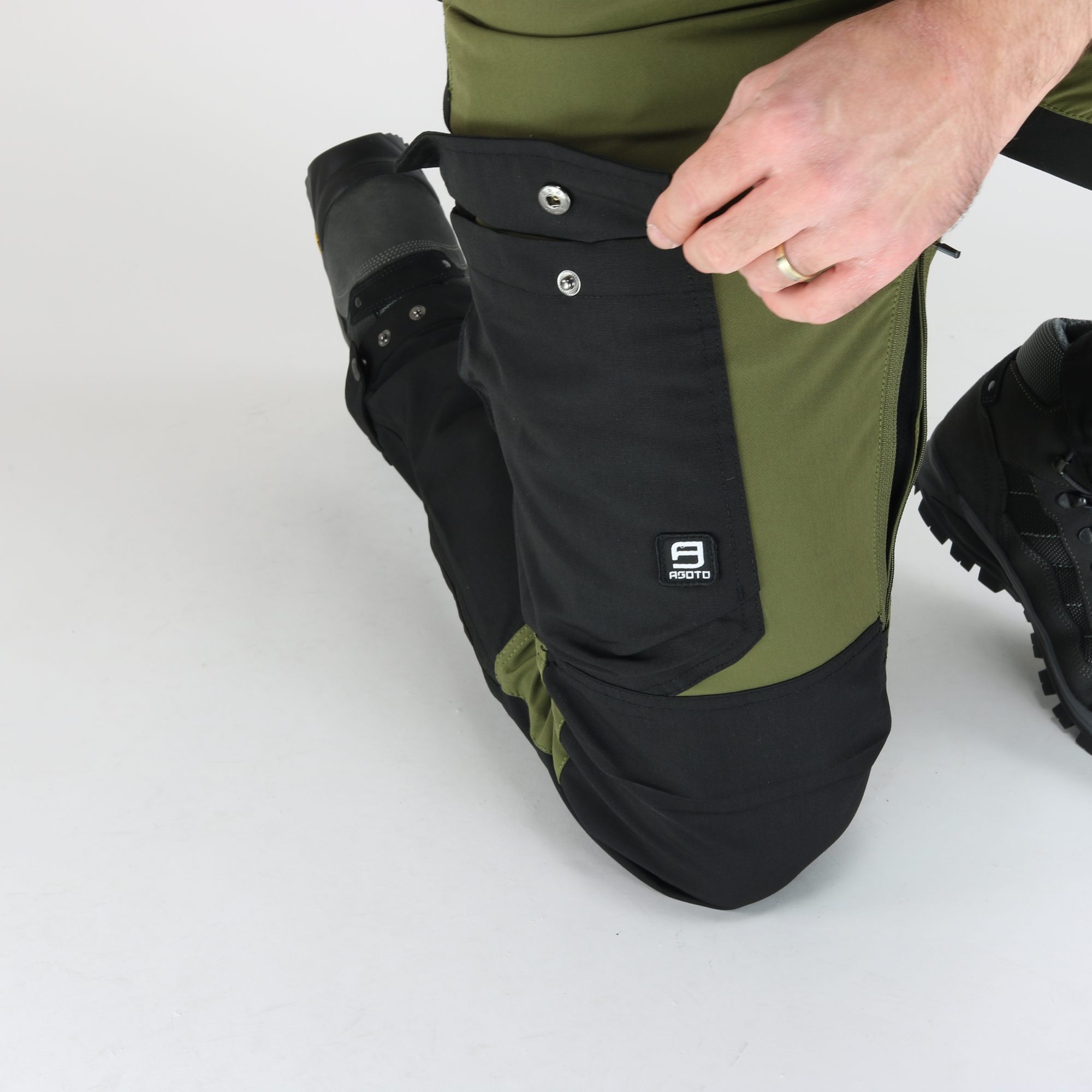 • detail Asoto Abisko Herren Outdoor Hose bequem oliv DWR wasserabweisend Stretch