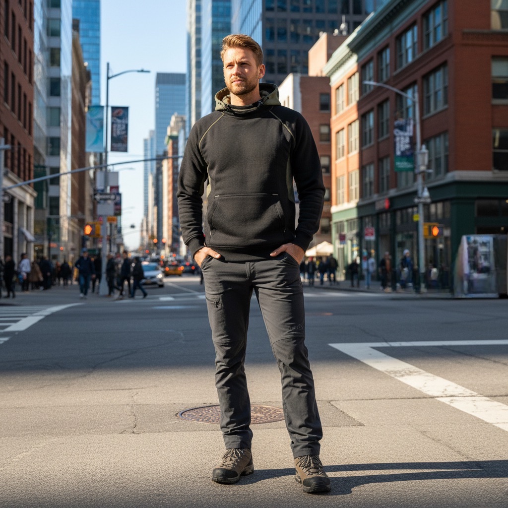 Asoto Vindel Sweden schwarz olivgrüner Herren Baumwollpullover 320 g ist die ideale Wahl für alle, die Komfort, Funktionalität und zeitlosen Stil in einem suchen. Der Pullover besteht aus hochwertigem Baumwollstoff mit einem Gewicht von 320 g/m2, was ein angenehmes Tragegefühl über den ganzen Tag hinweg garantiert – ob bei der Arbeit, in der Freizeit oder bei Outdoor-Aktivitäten. Das Material ist strapazierfähig und weich zugleich, atmungsaktiv und bietet angenehme Wärme. Die Zusammensetzung besteht aus 80 % Baumwolle und 20 % Polyester. Eine praktische Kängurutasche vorne bietet Platz für die Hände oder kleinere Gegenstände. Die Ärmelabschlüsse sind mit Daumenlöchern versehen, die den Tragekomfort erhöhen und die Handgelenke vor Kälte schützen. Die gefütterte Kapuze im Snood-Stil mit Kordelzug sorgt für zusätzlichen Wärmeschutz. Der Pullover hat einen modernen geraden Schnitt, elastische Bündchen und ein stilvolles schwarz olivgrünes Design, das sich leicht mit anderer Kleidung kombinieren lässt. Asoto Vindel Sweden ist ein vielseitiges Kleidungsstück für Stadt, Werkstatt und Natur, das Funktionalität, Komfort und Langlebigkeit perfekt vereint.