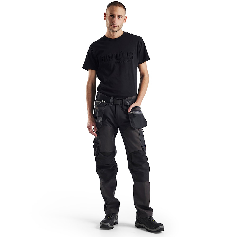 Das stilvolle Baumwoll-T-Shirt mit markantem 3D-„Blakläder“-Schriftzug auf der Brust ist die perfekte Wahl für die Arbeit und den Alltag. Der lockere Schnitt sorgt für hohen Tragekomfort und uneingeschränkte Bewegungsfreiheit. Hergestellt aus 100 % Baumwolle (Single Jersey, 150 g/m2), bietet das Shirt eine angenehme Atmungsaktivität und ein weiches Tragegefühl. Der Rundhalsausschnitt mit geripptem Kragen sowie verstärkte Schulter- und Nackennähte sorgen für zusätzliche Strapazierfähigkeit und Langlebigkeit. Der auffällige 3D-Print „Blakläder“ unterstreicht Ihren exzellenten Geschmack in Sachen Arbeitskleidung und verleiht dem Shirt eine moderne Note.