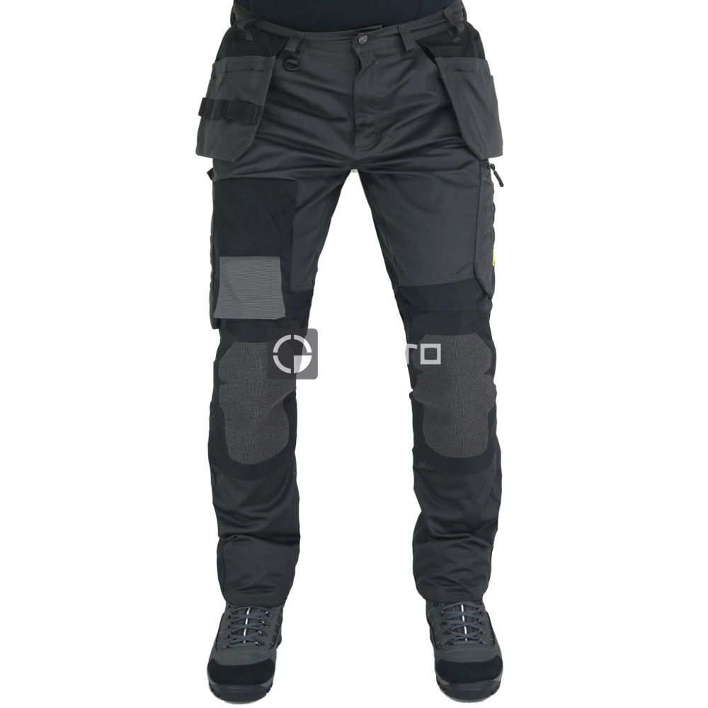 Diese eleganten, anpassungsfähigen und extrem strapazierfähigen Handwerkerhosen wurden mit größter Sorgfalt entworfen, um den höchsten Anforderungen von Profis an Bewegungsfreiheit, Funktionalität und Komfort gerecht zu werden. Die Kombination aus robustem Material und Stretch-Einsätzen sorgt für außergewöhnliche Flexibilität, was besonders für Bodenleger, Fliesenleger und andere Handwerker, die oft in kniender Position arbeiten, von Vorteil ist. Strategisch platzierte Stretcheinsätze im hinteren Bund, an den Vordertaschen und an der Rückseite der Knie maximieren die Bewegungsfreiheit und erhöhen den Tragekomfort auch bei langen Arbeitstagen. Die Hosen sind mit praktischen Taschen ausgestattet, darunter eine spezielle Messertasche aus Kevlar®-verstärktem Material mit Klappe und Stretcheinsatz sowie eine flexible Handytasche, die für die meisten modernen Smartphones geeignet ist. Dank der Verwendung einer strapazierfähigen Mischung aus 65 % Polyester und 35 % Baumwolle in Köperbindung mit einem Gewicht von 300 g/m2 bieten diese Hosen nicht nur eine lange Lebensdauer, sondern auch eine hohe Widerstandsfähigkeit gegenüber anspruchsvollen Arbeitsbedingungen. Als Beweis für die präzise Verarbeitung und erstklassige Qualität gewährt der Hersteller eine lebenslange Garantie auf die Nähte, was bestätigt, dass diese Hosen auch unter härtesten Bedingungen bestehen.