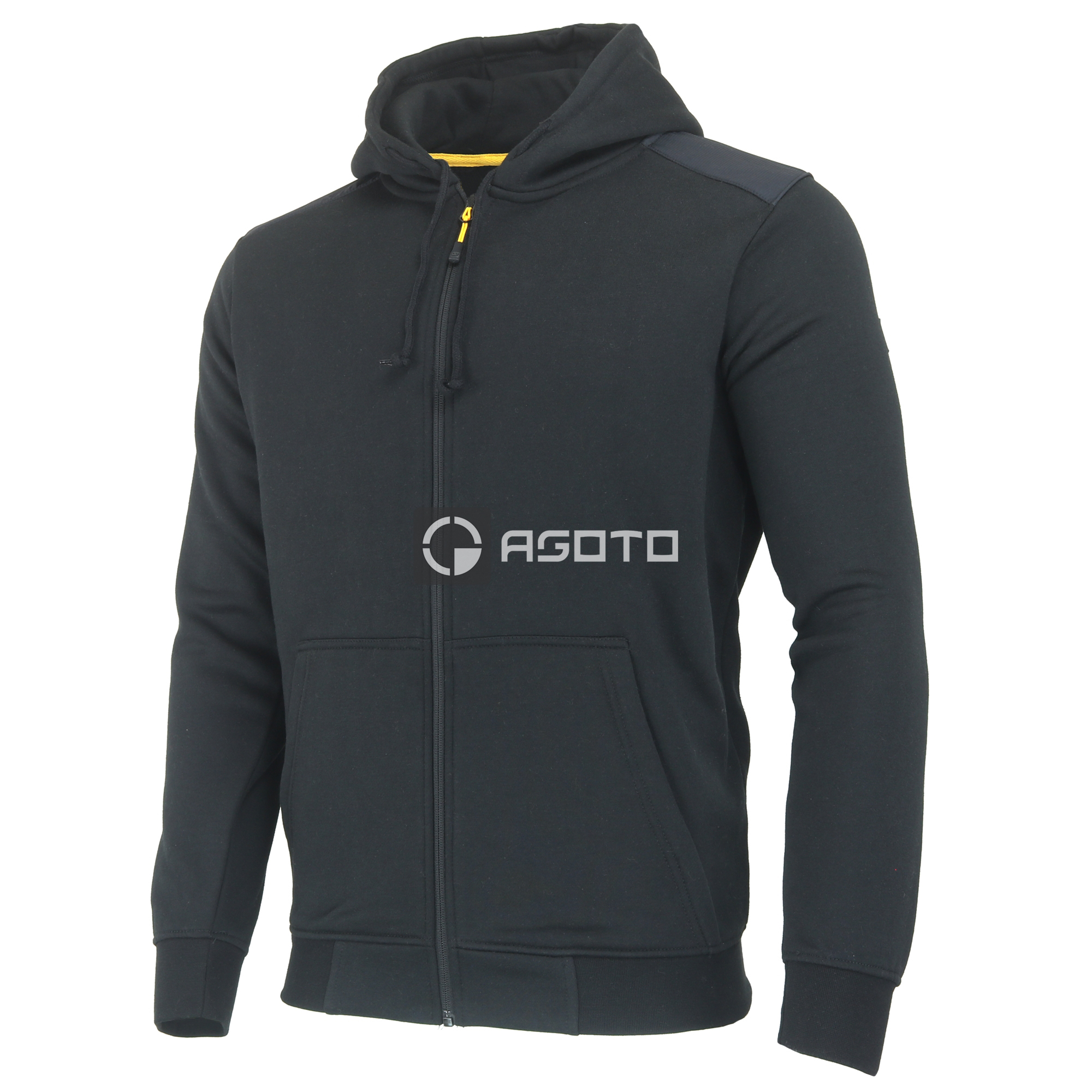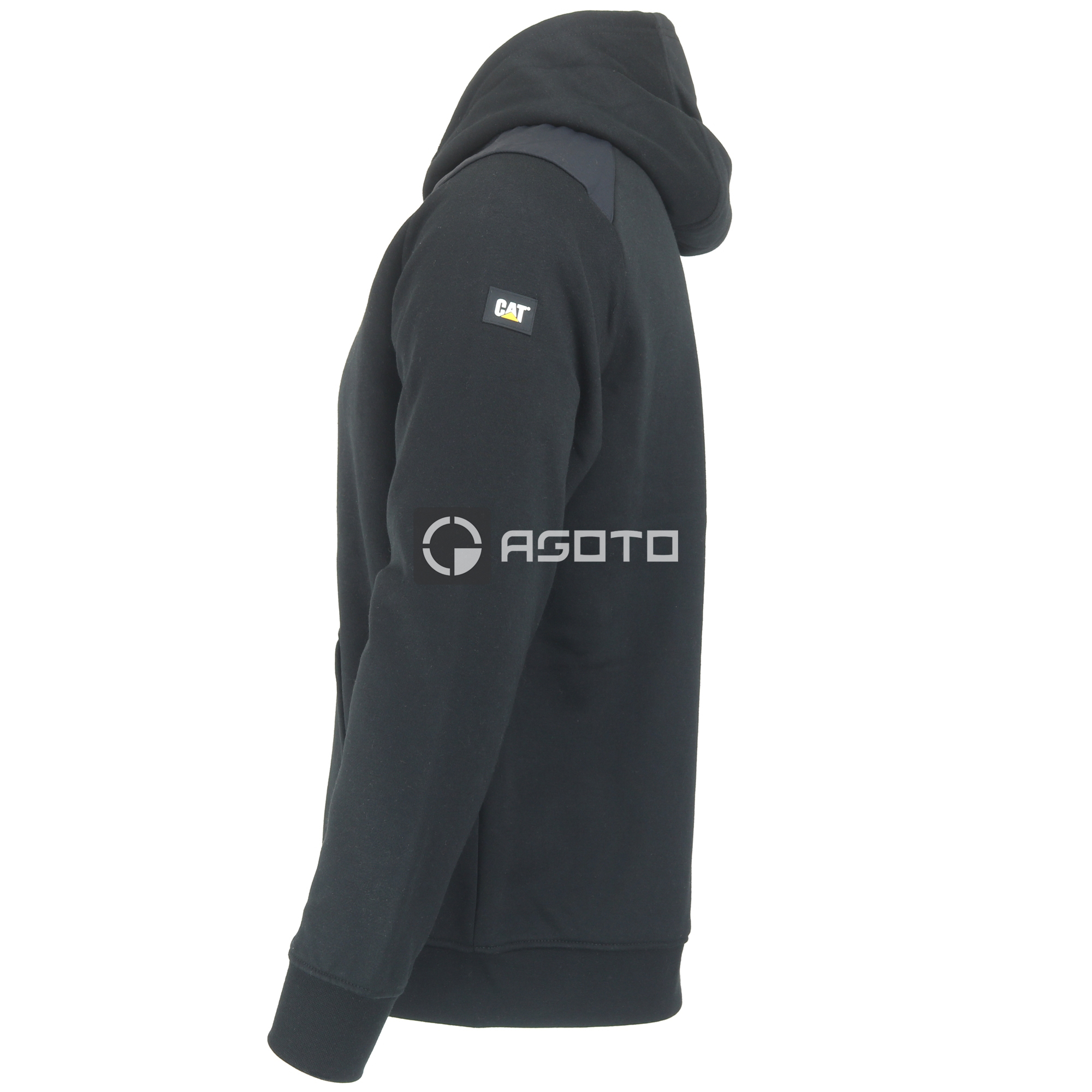 Modernes Kapuzen-Sweatshirt mit Reißverschluss zum einfachen Anziehen. Innen hoher Baumwoll- und Fleeceanteil. Verstärkte Schultern + CAT-Logo auf dem linken Ärmel. Material: 70% Baumwolle, 30% Polyesterfleece. Schwarze Farbe. Gewicht: 300g / m2
