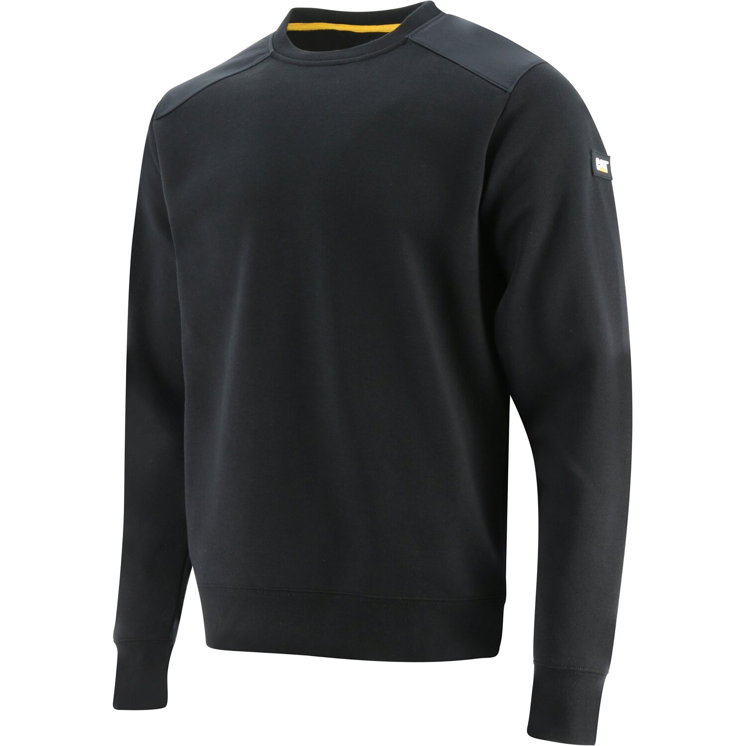 Moderner Sweatshirt-Pullover mit Baumwoll-Fleece-Anteil auf der Innenseite. Material: 35 % Baumwolle, 65 % Polyester-Fleece Farbe: schwarz Gewicht: 300 g/m2. CAT-Logo aus Silikon auf dem linken Ärmel.