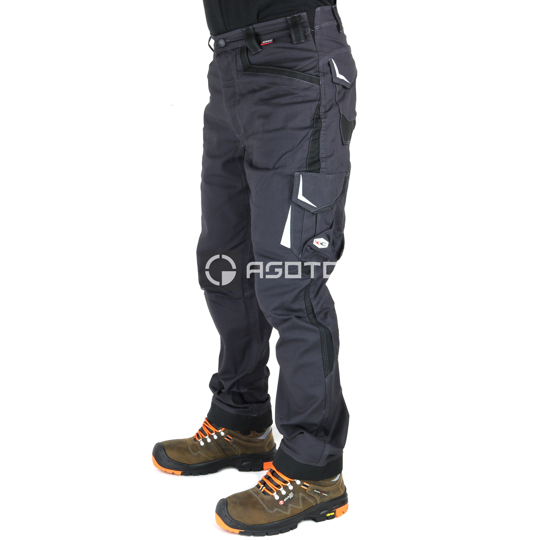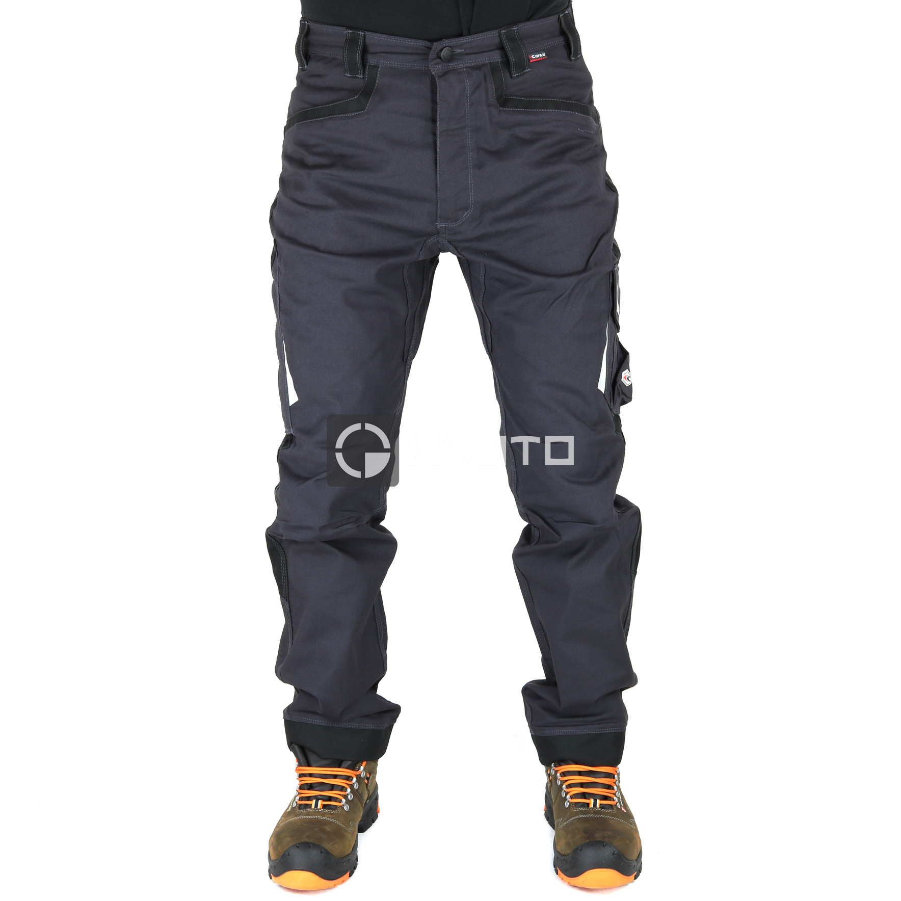 Cofra Barrerio Stretch Arbeitshose, 2 breite Fronttaschen, 3M reflektierende Pads ™ SCOTCHLITE ™ Reflective Material - 8725 Silver Fabric, abriebfeste Polster an den Gesäßtaschen, abriebfeste Polster am Hosenboden, abriebfeste Polster an der Vordertasche, doppelte Gesäßtasche mit Patte, elastischer Bund, Hammerschlaufe, ergonomisches Design an Knien und Beinen, Handytasche, verstärkter Schritt, Tasche pro Meter, Seitentasche, Stretchmaterial, YKK®-Reißverschluss, ZUSAMMENSETZUNG: 64% Baumwolle - 34% Polyester - 2% Elasthan + abriebfeste Einsätze aus 100% Nylon, 250 g/m2