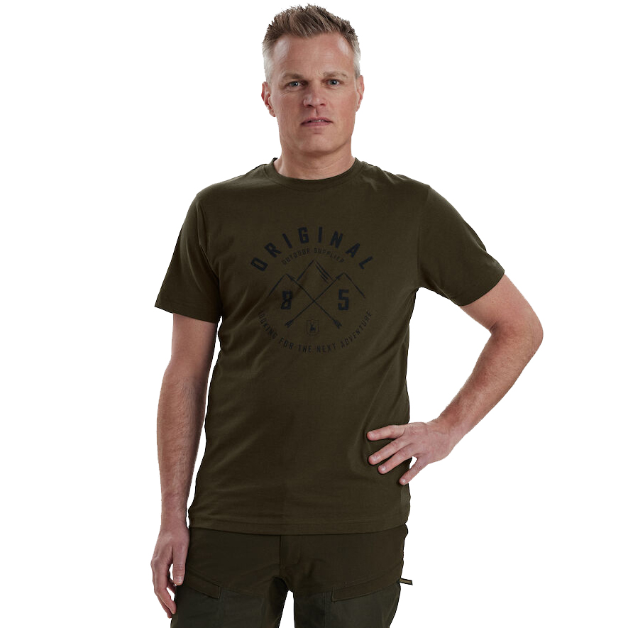 Begrüßen Sie Ihr nächstes Abenteuer mit dem Deerhunter Nolan Print T-Shirt. Ein klassisches Rundhals-T-Shirt aus einer weichen und bequemen Baumwoll-Polyester-Mischung, perfekt für den Alltag.