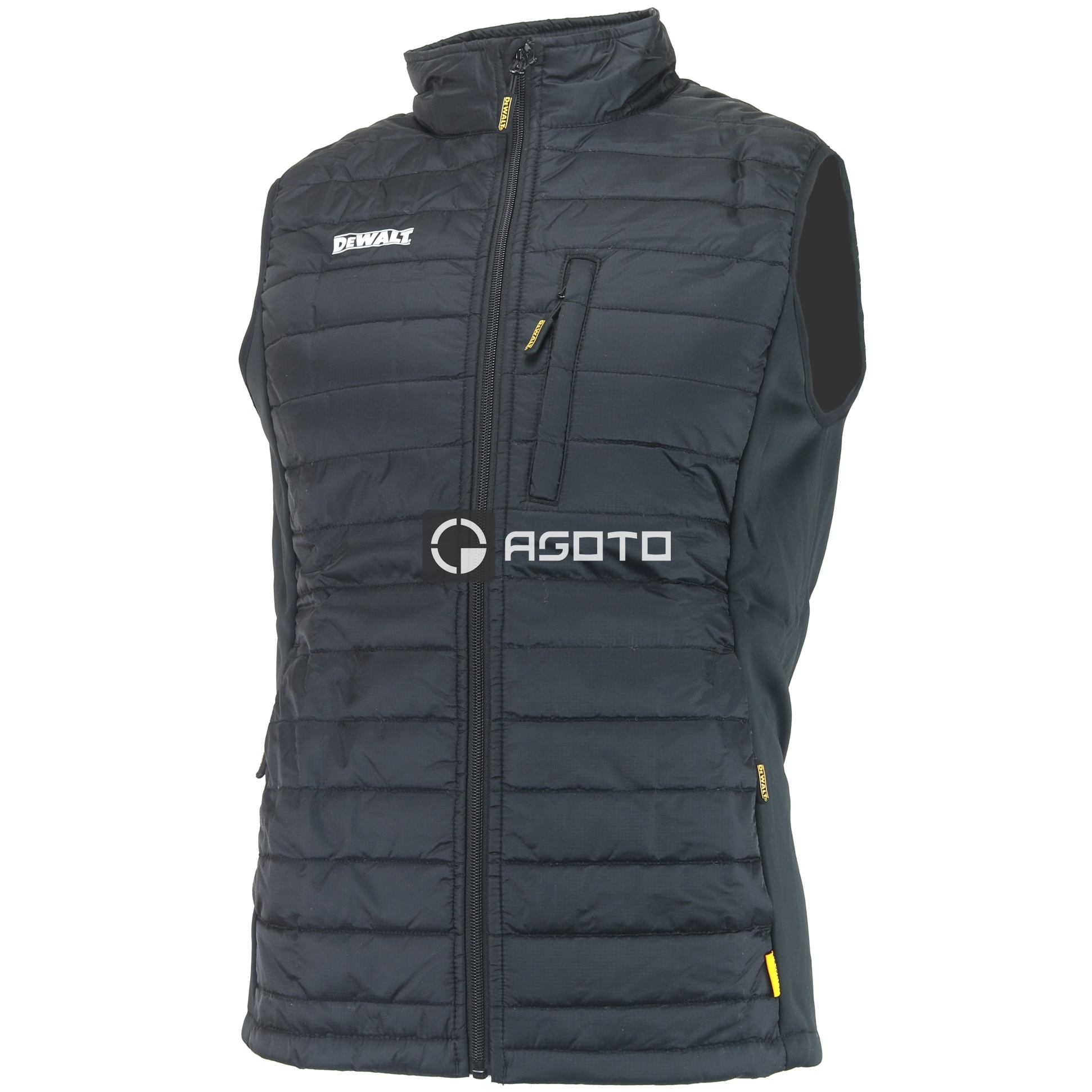 Die DEWALT Force Weste ist geeignet, um als Kleidung unter oder über der Schicht getragen zu werden. Es hat eine leichte Polsterung, die eine äußere regenfeste Nylonbeschichtung und ein inneres Polyester / Taft-Futter hat. Komfortable Stretch-Seiteneinsätze und abgesenkter Rücken mit zentralem Reißverschluss. Mit zwei Eingrifftaschen vorne und einer Brusttasche mit Reißverschluss. Es hat auch ein reflektierendes DEWALT-Logo auf der Brust und im Nacken.