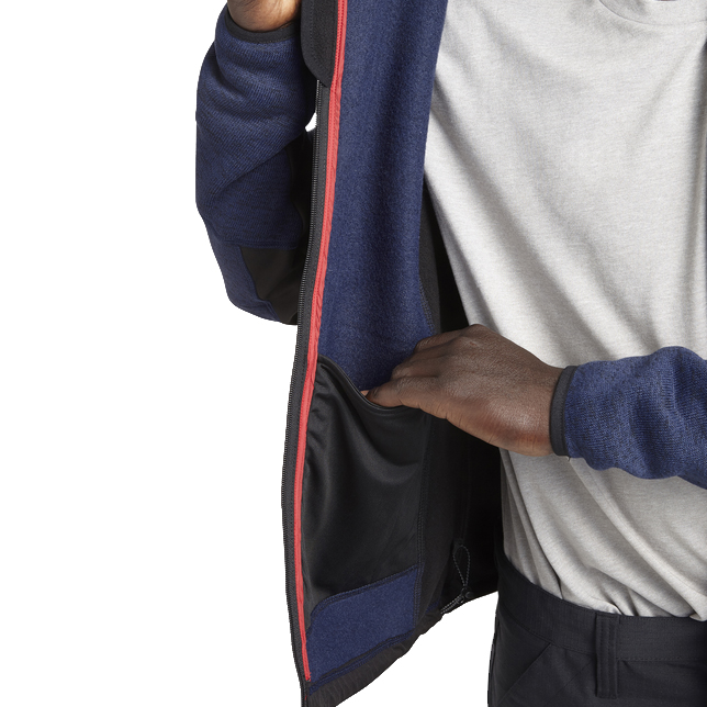 Sweatshirt mit Jersey-Außenseite und angerauter Innenseite mit Stehkragen und ergonomischen Ärmeln. Hinten länger für eine bessere Passform. Zwei Seitentaschen und eine Vordertasche mit Reißverschluss und reflektierenden Details. Verstellbarer Saum mit Kordelzug. Material: Strick 100 % Polyester, 300 g/m2; Softshell-Einsätze 94 % Polyester 6 % Elasthan 300 g/m2