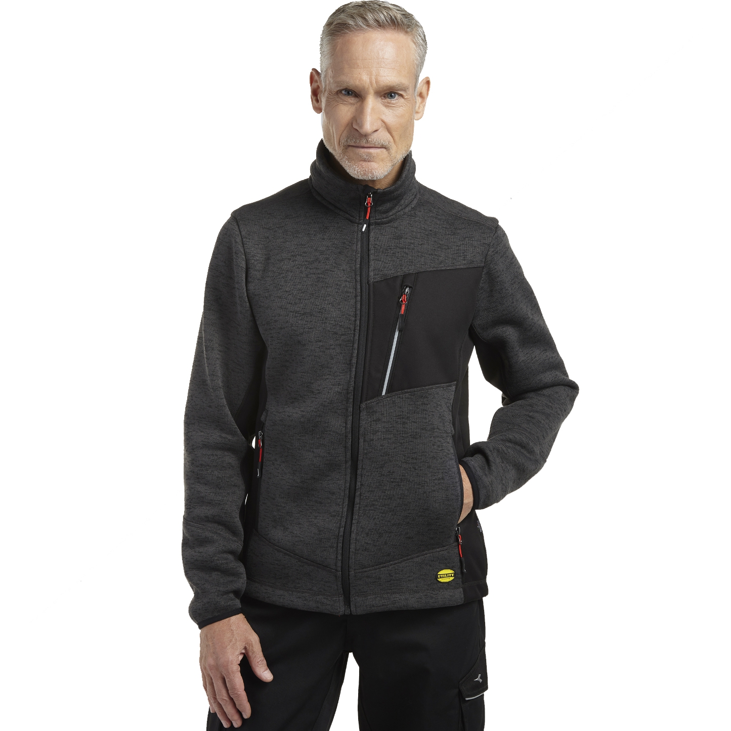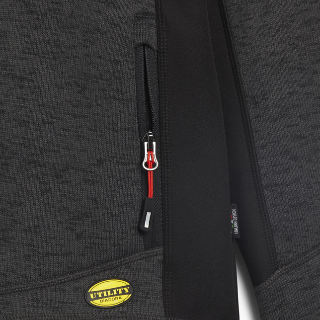 Sweatshirt mit Jersey-Außenseite und angerauter Innenseite mit Stehkragen und ergonomischen Ärmeln. Hinten länger für eine bessere Passform. Zwei Seitentaschen und eine Vordertasche mit Reißverschluss und reflektierenden Details. Verstellbarer Saum mit Kordelzug. Material: Strick 100 % Polyester, 300 g/m2; Softshell-Einsätze 94 % Polyester 6 % Elasthan 300 g/m2
