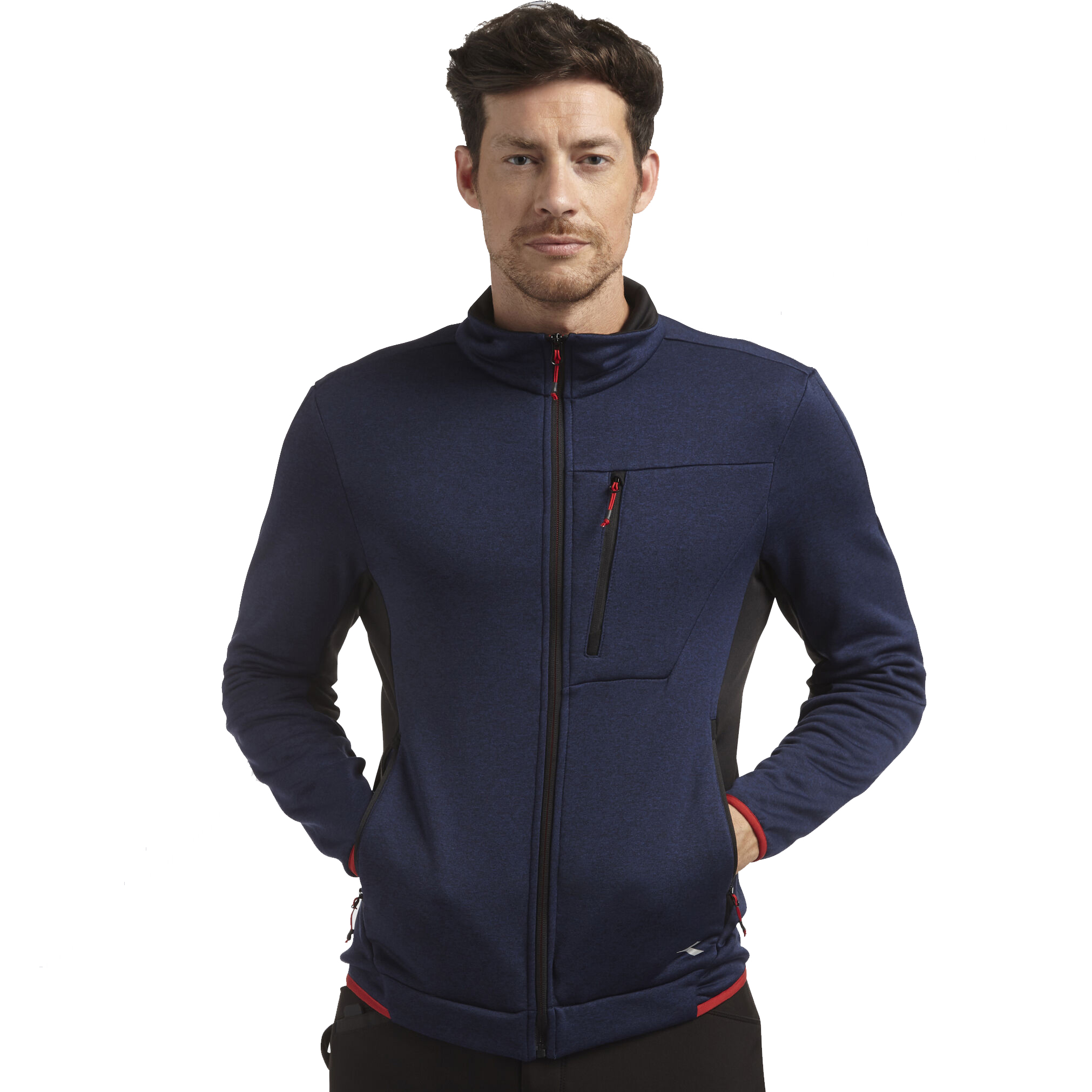 Technisches Super-Stretch-Fleece mit glatter Außenseite und angerauter Innenseite. Ergonomischer Schnitt und moderner Look. Zwei Seitentaschen und eine Fronttasche mit Reißverschluss. Details in Kontrastfarbe.