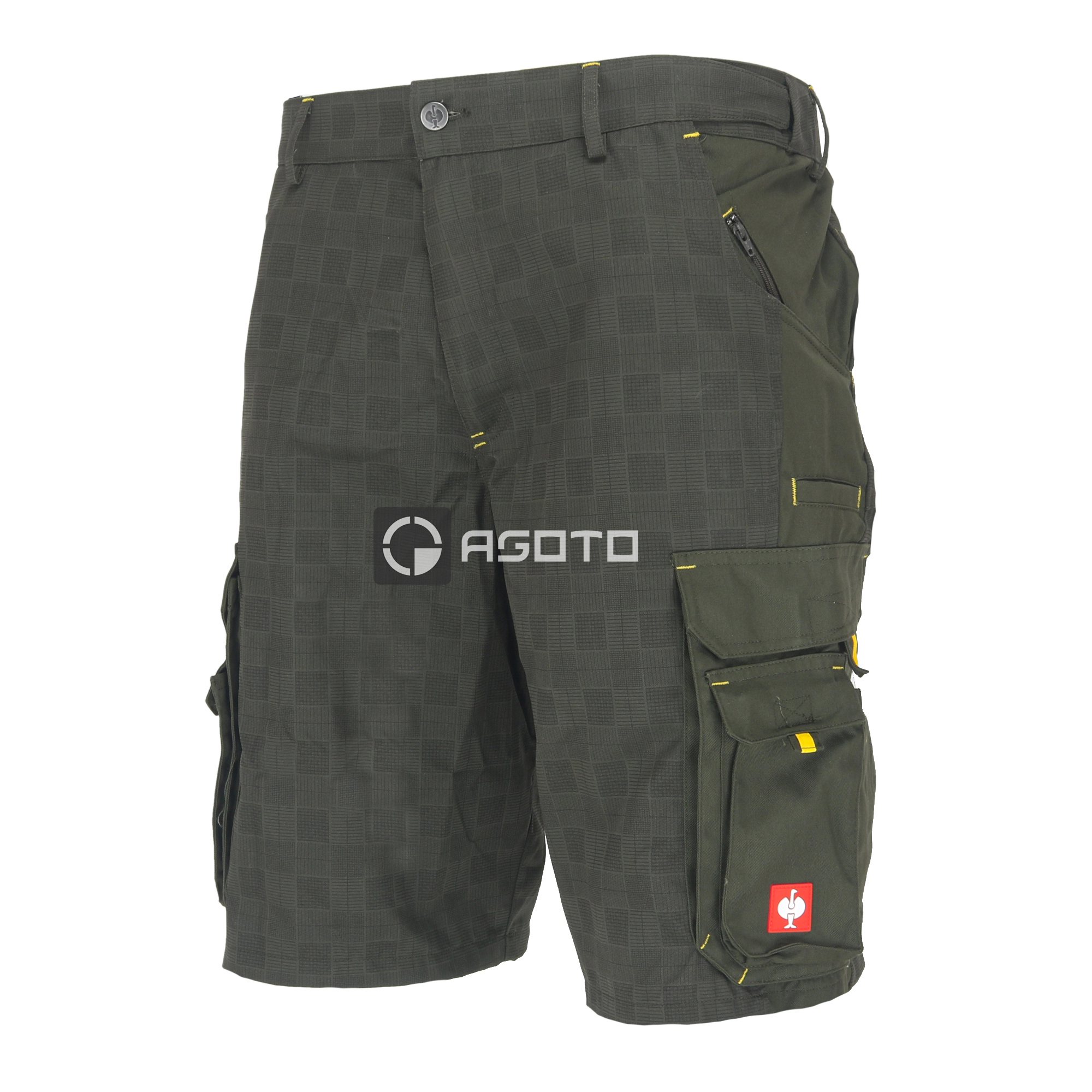 Die Arbeitsshorts mit feiner Struktur und modernem Look sind die perfekte Wahl für warme Arbeitstage. Der elastische FLEXBELT®-Bund sorgt für optimalen Sitz und hohen Tragekomfort bei jeder Bewegung. Zwei tiefe Seitentaschen und zwei Gesäßtaschen bieten ausreichend Stauraum, wobei die rechte Gesäßtasche mit einer Klappe und Klettverschluss gesichert ist. An beiden Oberschenkeln befinden sich zusätzliche Taschen mit Klappen und Klettverschluss sowie integrierten Handyfächern und Stifthaltern. Außerdem sind beidseitig innenliegende Zollstocktaschen vorhanden. Das Material besteht aus 65 % Polyester und 35 % Baumwolle mit einem Gewicht von ca. 245 g/m2 – robust, langlebig und angenehm zu tragen.