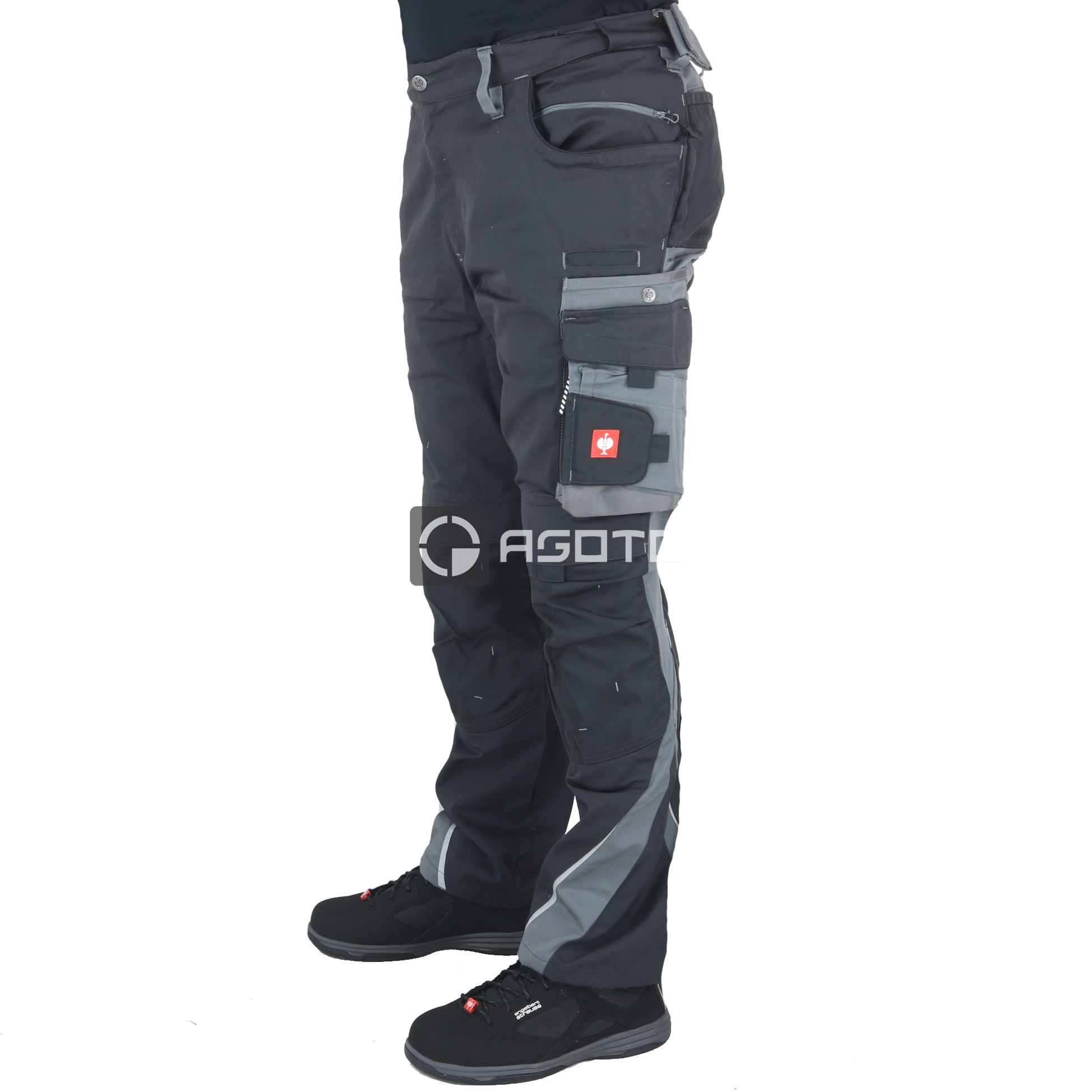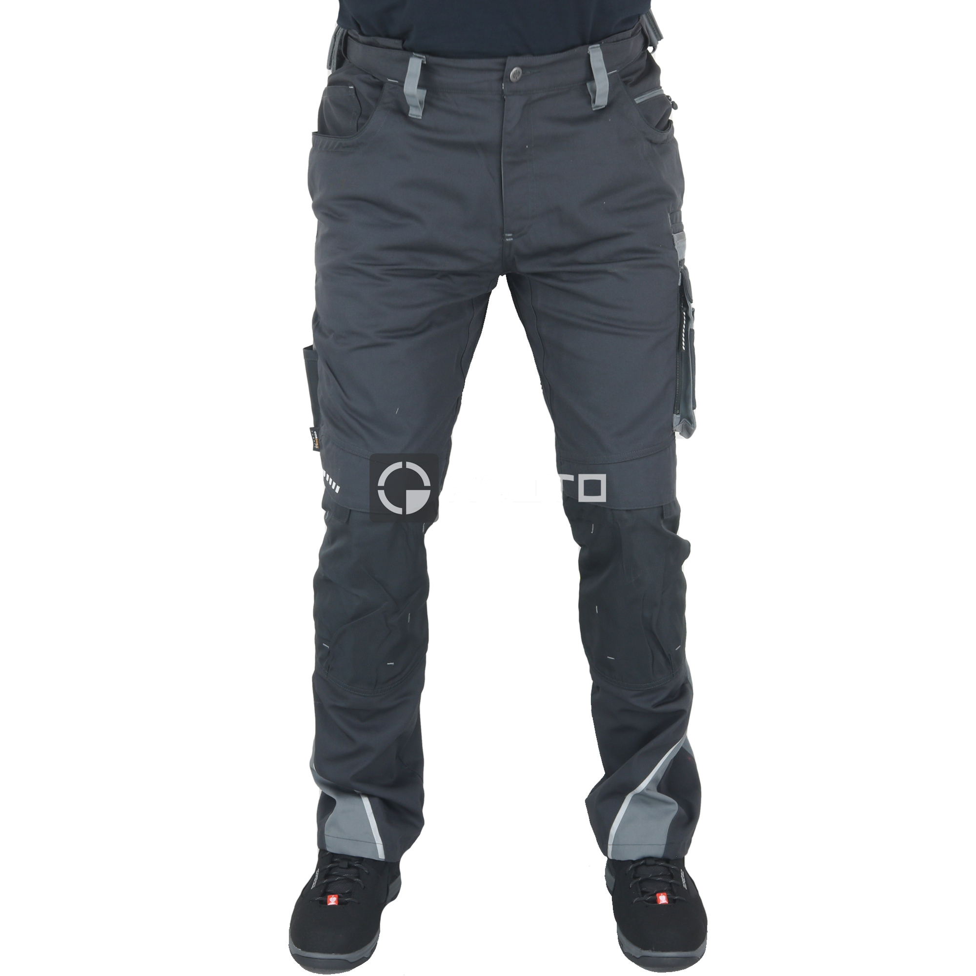 Hochwertige modische Arbeitshose von Engelbert Strauss. Tiefe Taschen, Handyfach, Kniepolstertaschen mit Klettverschluss, verstärkte Knie aus robustem CORDURA®-Material, für Ihre Sicherheit: Reflexstreifen, breite Gürtelschlaufe mit Befestigung für spezielle Montagetaschen für Handwerker, Flexbelt® elastischer Seitenbund, innen mit feinem Verarbeitung, Gesäßtaschenkonstruktion für bequemen Sitz mit Einsätzen aus CORDURA®-Material, aufklappbare Maßbandtasche, Schenkeltaschen mit mehreren Fächern. Material: 65 % Polyester / 35 % Baumwolle (ca. 245 g/m2).