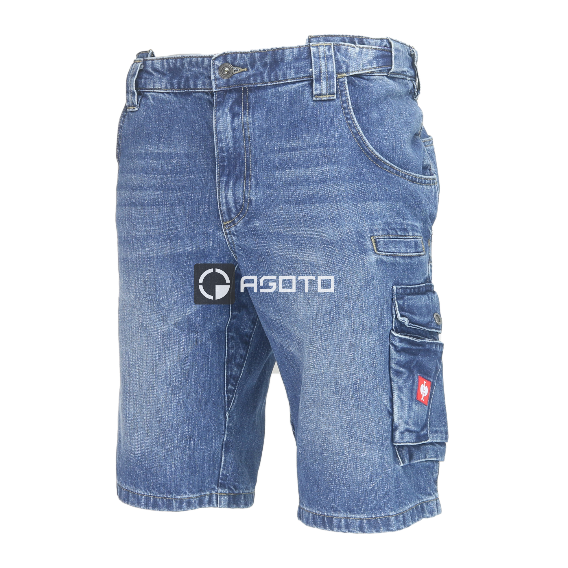 Engelbert Strauss Worker sind Jeansshorts im coolen Casual-Look! Cargo-Schnitt, bequemer, elastischer seitlicher FLEXBELT®-Bund, 2 große Gesäßtaschen, eine davon mit Patte und Druckknopf, 2 Einschubtaschen und ein Münzfach, mehrteilige Oberschenkeltasche auf der rechten Seitentasche für Faltmaßband, aufgenähte Oberschenkeltasche mit Patte , Schnappverschluss und Handyfach auf der linken Seite. Außenmaterial 100 % Baumwolle (ca. 400 g/m2)