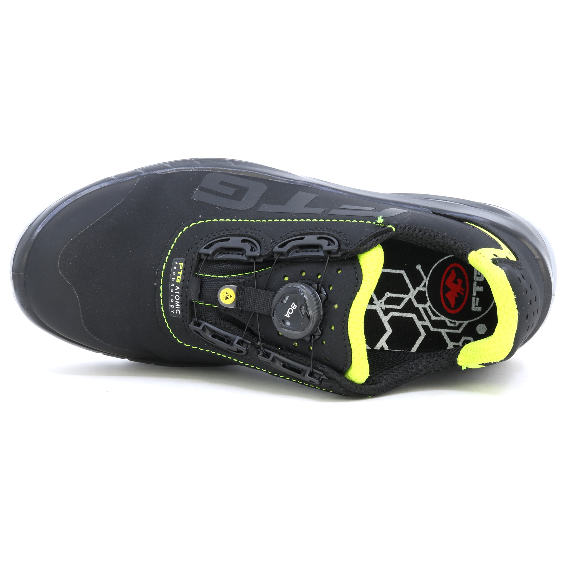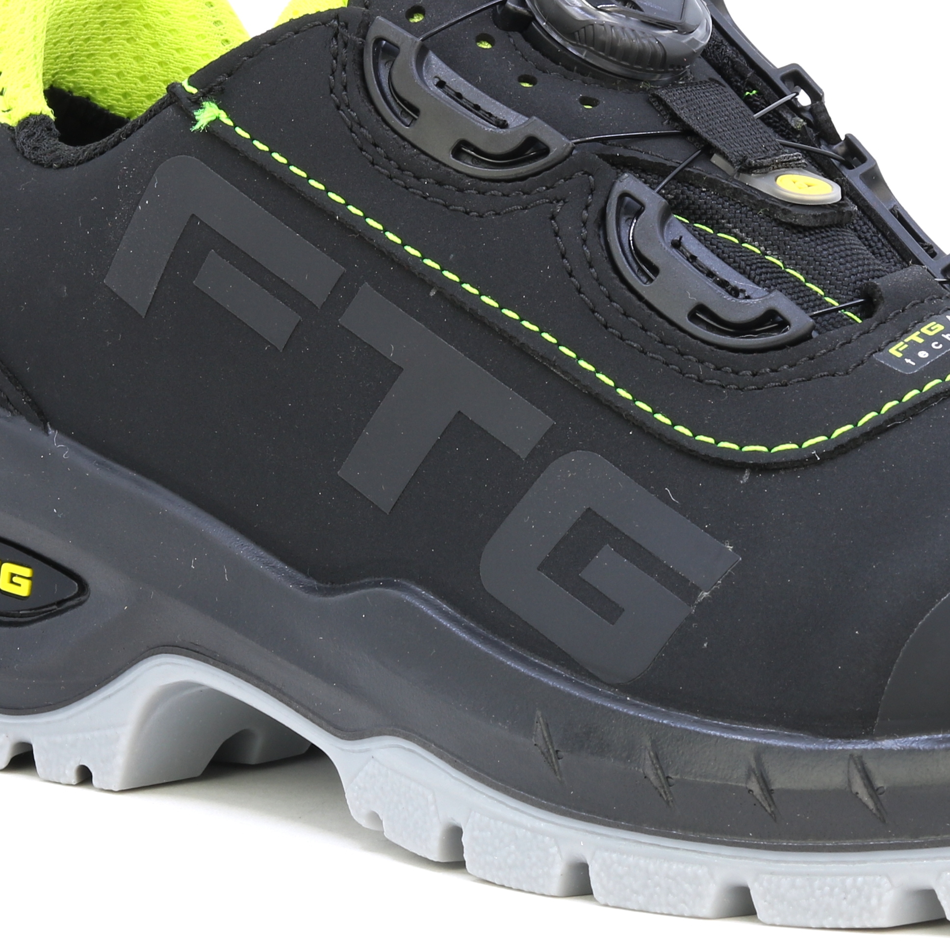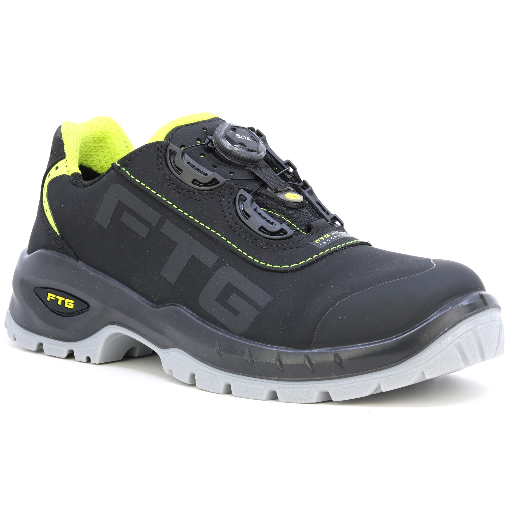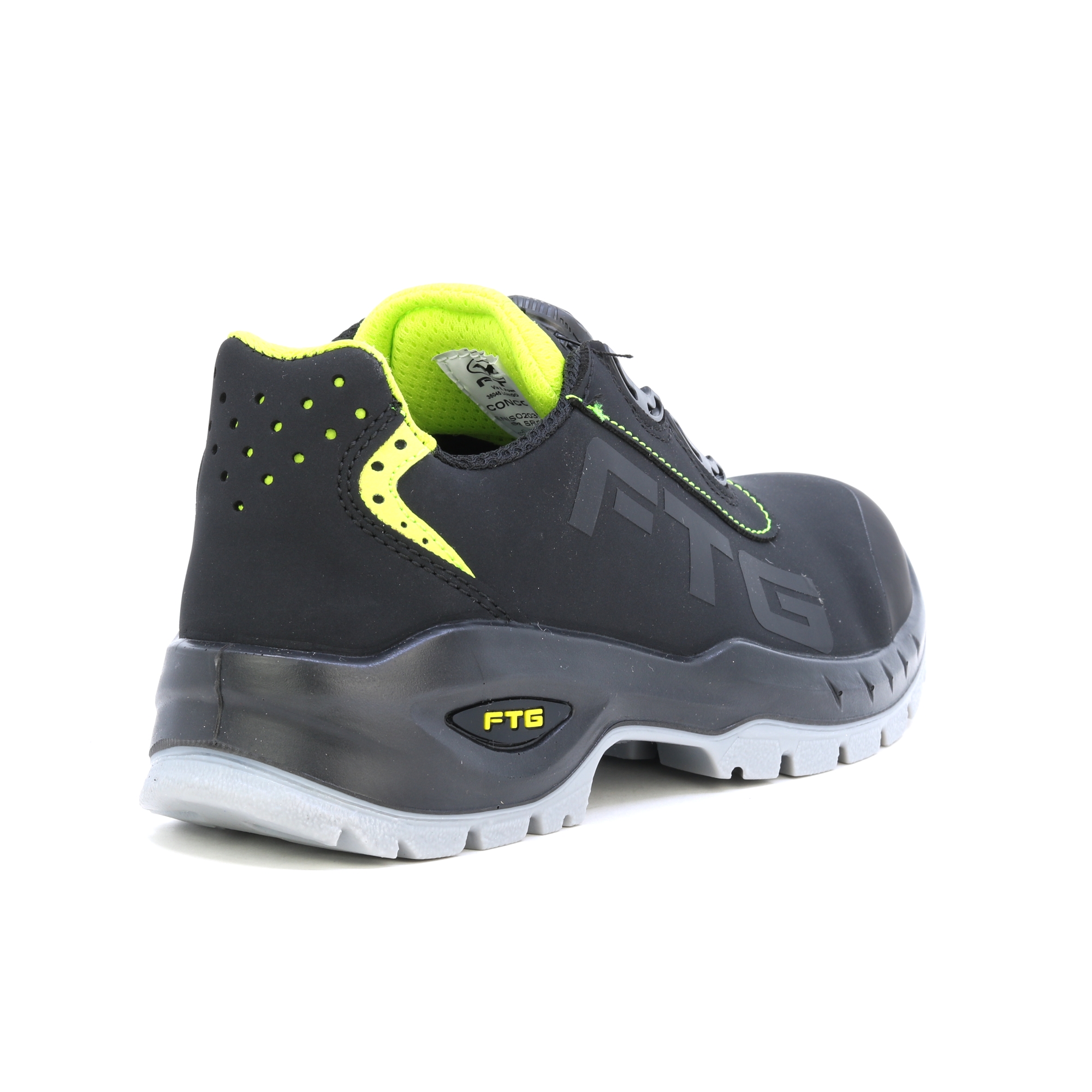 High-End-Schuhe mit klarem Design für anspruchsvolle Aufgaben. BOA-System für einfaches und bequemes Anziehen der Schuhe. Der FTG Concorde S3 ist mit seiner metallfreien Zehenschutzkappe und der durchtrittsicheren Innensohle der ideale Sicherheitsschuh für Bau, Handwerk und Industrie. Das Obermaterial aus Nubukleder ist dank mehrerer Nähte leicht zu reinigen und sorgt für Stabilität. Die TPU-Overlay-Sohle wurde bewusst für die Professional Line konzipiert und besteht aus verschiedenen, darauf optimierten Profilelementen. Die Laufsohle ist abriebfest und hat besseren Flex, verbesserten Grip auf dem Untergrund und ein optimales Flüssigkeitsextrusionsprofil für sicheren Halt. Ein Stoßdämpfer im Fersenbereich absorbiert Energie. Die FTG® Memory Foam Einlegesohle sorgt für das Plus an Komfort in einem Sicherheitsschuh. Dank der Körperwärme passt sich der Thermoschaum der Innensohle individuell der Fußform an. Dadurch wird eine optimale Druckverteilung über die gesamte Fußfläche erreicht. Perfekt für lange Arbeitstage! Die ESD-Antistatikbehandlung bietet Schutz bei Arbeiten in Betrieben mit der Möglichkeit elektrostatischer Entladungen. EN ISO 20345 - SICHERHEITSSCHUHE Die antistatische ESD-Behandlung bietet Schutz bei Arbeiten in Betrieben mit der Möglichkeit elektrostatischer Entladungen. EN ISO 20345 – SICHERHEITSSCHUHE