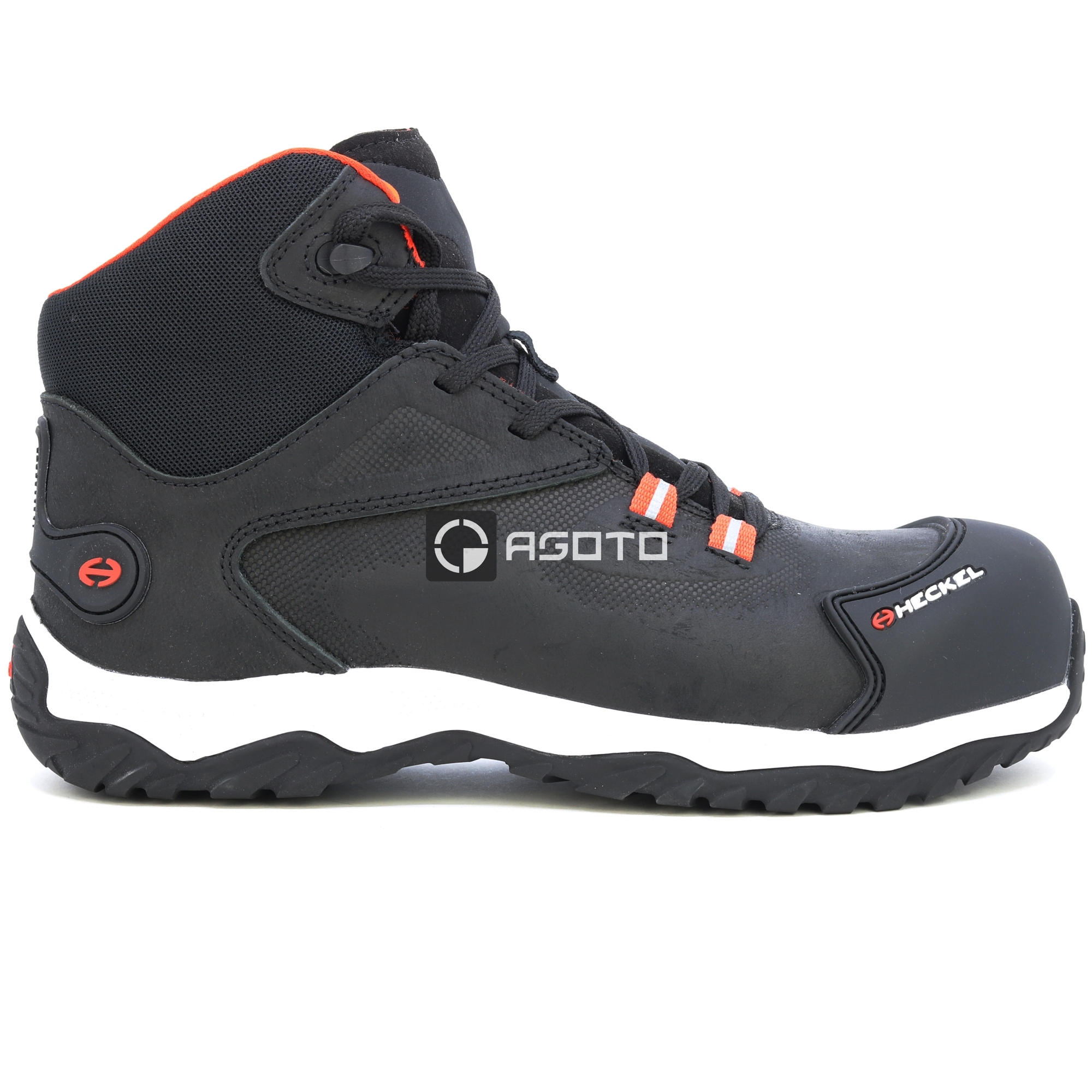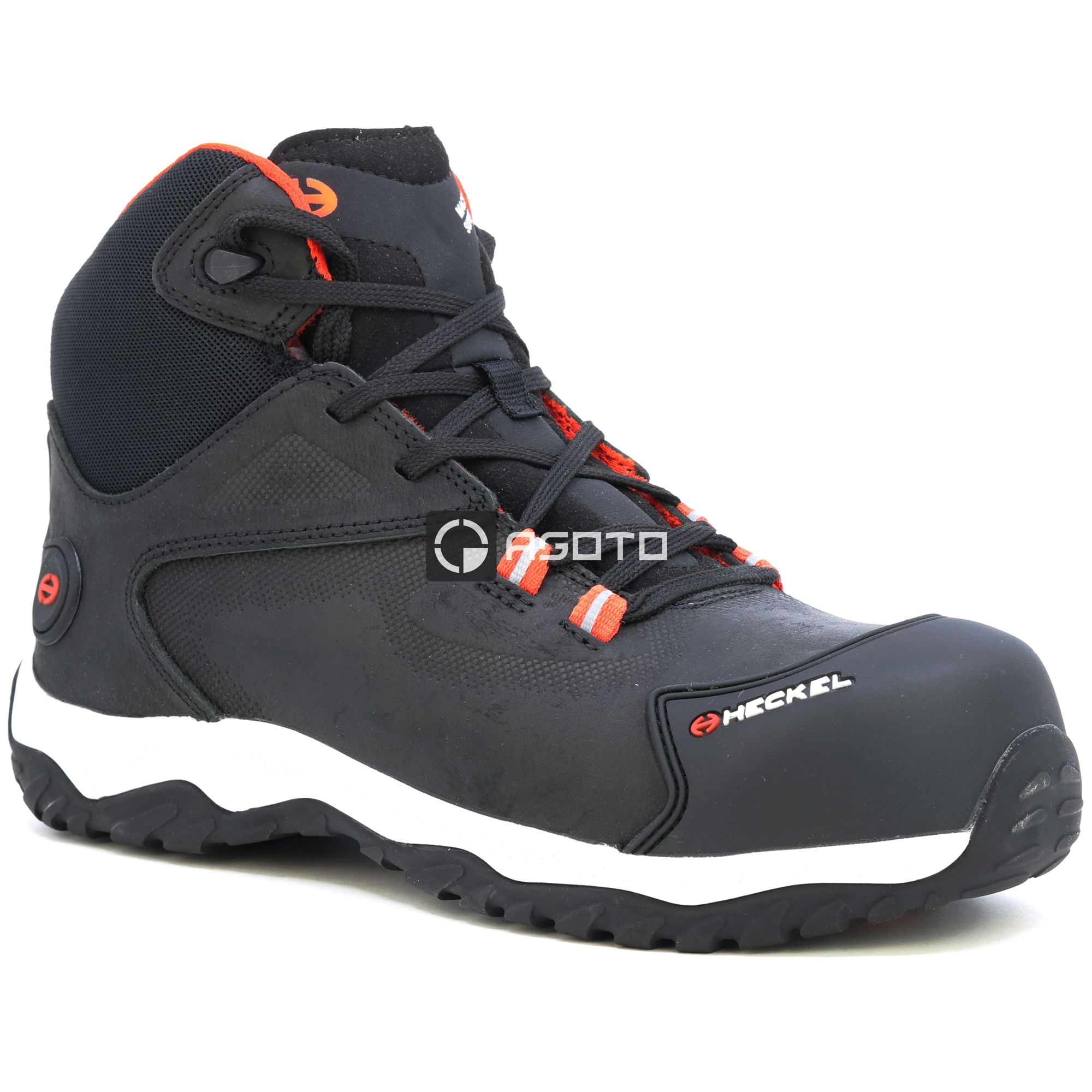 Der Heckel MS 300 S3 ist ein extrem langlebiger Sicherheitsschuh, der für alle Bedingungen zuverlässigen Schutz bietet, er macht einfach alles mit! MACSOLE® ADVENTURE 3.0 Gummisohle mit MACABSORB EVA im Vorfuß und Ferse für mehr Flexibilität und bessere Dämpfung | ausgezeichnetes Gripniveau (SRC) | beständig gegen Öle, Kohlenwasserstoffe und Chemikalien | antistatisch | Kontaktwärmebeständigkeit bis 300°C (HRO) | Sohlenprofil mit ergonomischen Formen zur besseren Überwachung der Bewegungsfreiheit | Offroad-Profil mit tiefen Profilen für besseren Grip | Gummiverschluss, wasserdichtes Obermaterial aus Vollnarbenleder | verstärkte Ferse und Seiten. Agile Low Guard für bessere Stabilität und Knöchelschutz bei gleichzeitig hoher Bewegungsfreiheit. 3D-Mesh-Futter für bessere Belüftung | schnell trocknende, genähte Zunge mit synthetischem und wasserdichtem Stoff, der Schmutz und Flüssigkeit vom Schuh fernhält | Schlaufe zum Fixieren der Zunge, flexible und kompakte Schaumstoffpolsterung für besseren Komfort und Schutz im Knöchel- und Achillessehnenbereich. Süßigkeiten ohne Metall | leichter als Stahl | leitet weniger Wärme und Kälte als eine Metallspitze. Durchtrittsichere, metallfreie Zwischensohle. | leicht und flexibel | leitet weniger Wärme und Kälte als eine Metallsohle | herausnehmbare Innensohle schützt 100 % der Fußoberfläche | anatomisch geformt mit Front- und Fersenstoßdämpfern | Mikrofaser-Oberschicht für bessere Abriebfestigkeit und sehr hohe Feuchtigkeitsaufnahme | Unterschicht aus offenzelligem Schaumstoff mit hoher Stoßdämpfung und Atmungsaktivität.