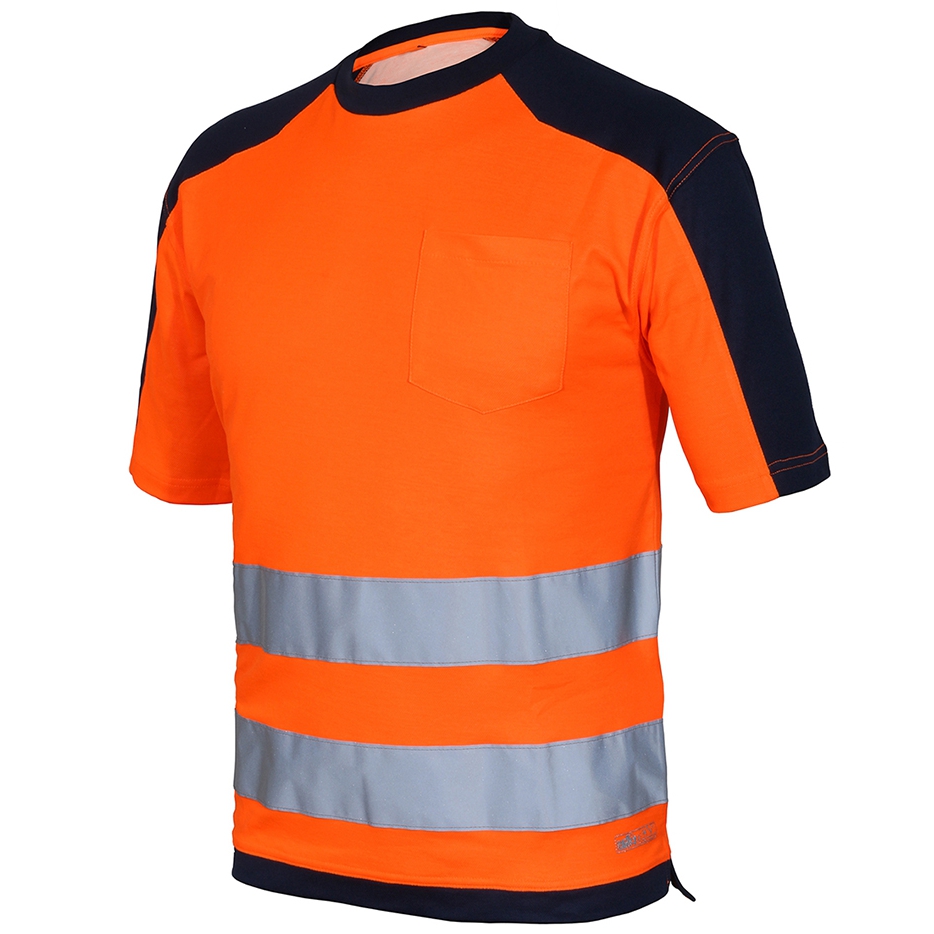 Výstražné tričko s kulatým průkrčníkem, krátký rukáv, reflexní pruhy: 2 horizontální (šíře 5 cm). Doporučené použití: stavebnictví, silničáři, řidiči, logistika, údržba, kolo, motorky, skladování. Výstražná kolekce italské značky ISSA je navržena tak, aby vyhověla nejnáročnějším požadavkům kladeným na pracovní oblečení. Konstrukce střihu je zaměřena na technické detaily, které oceníte nejen při práci. Oděv je vyroben: 50% bavlna, 50% polyester, 165 g/m2.