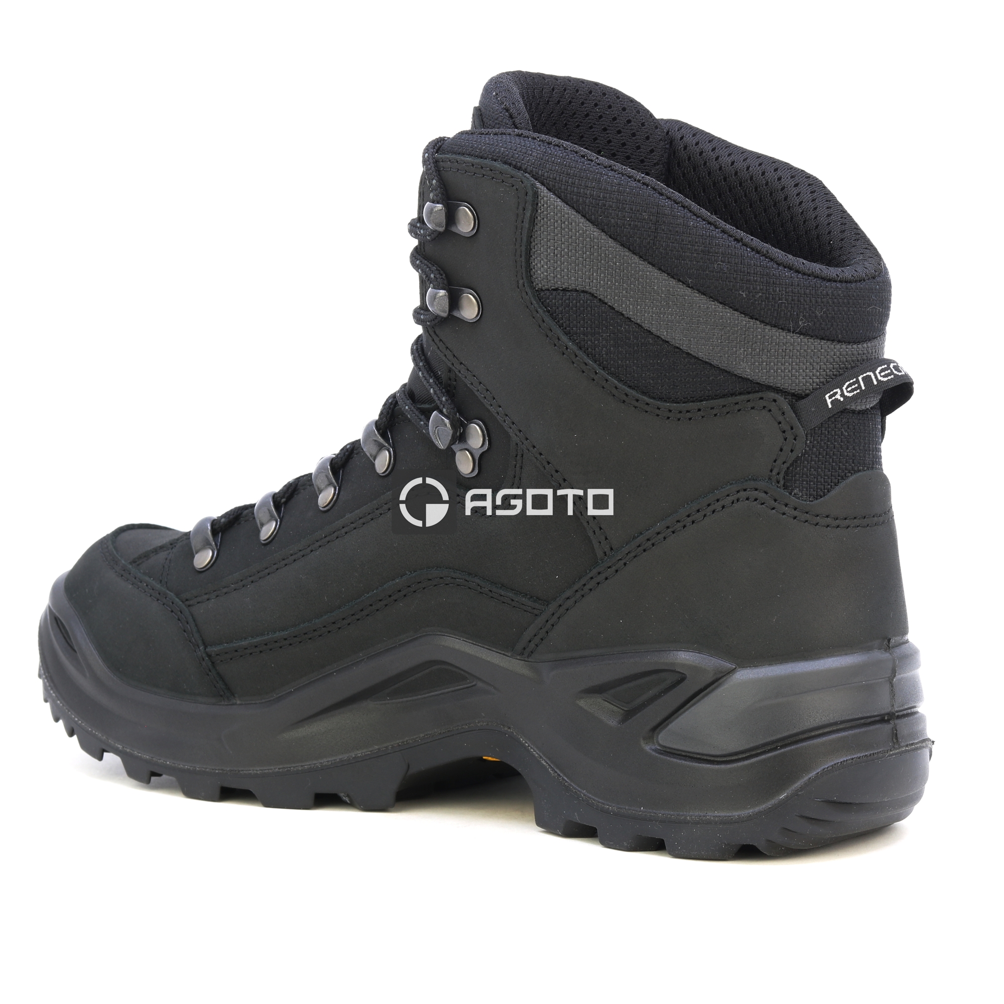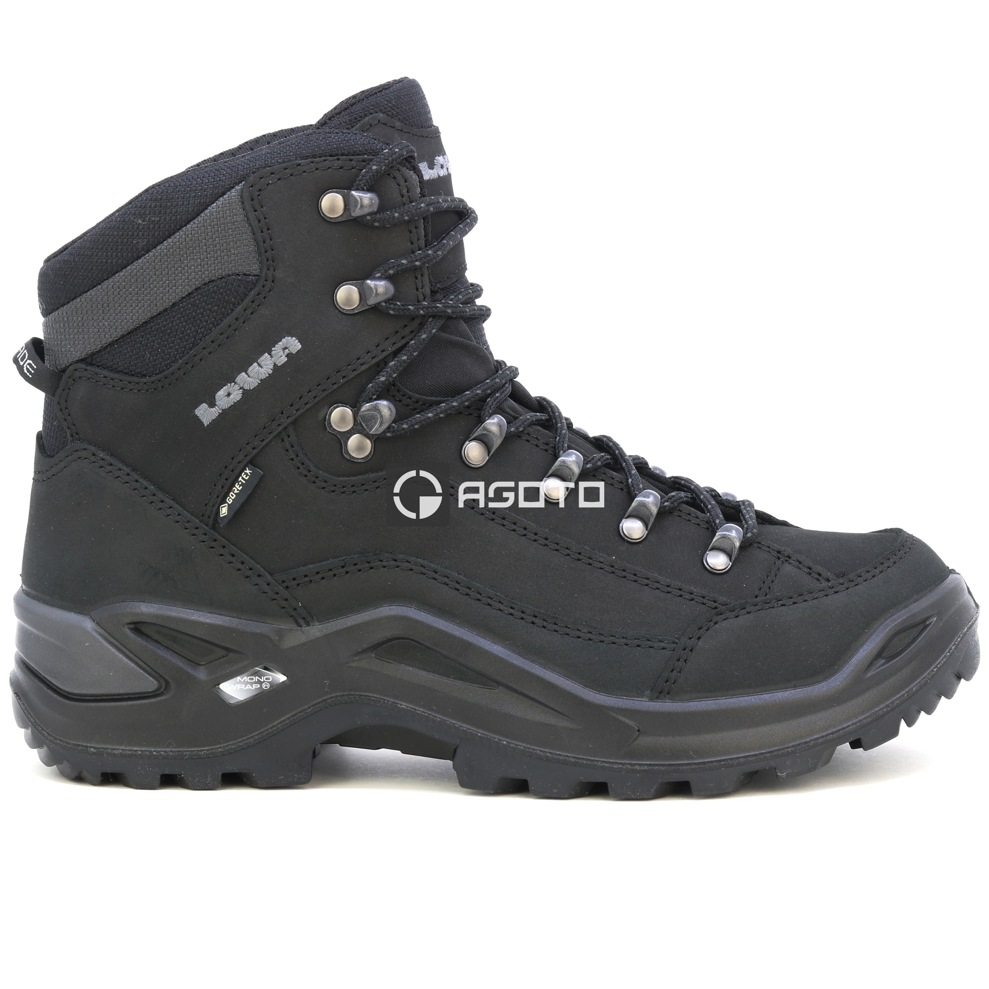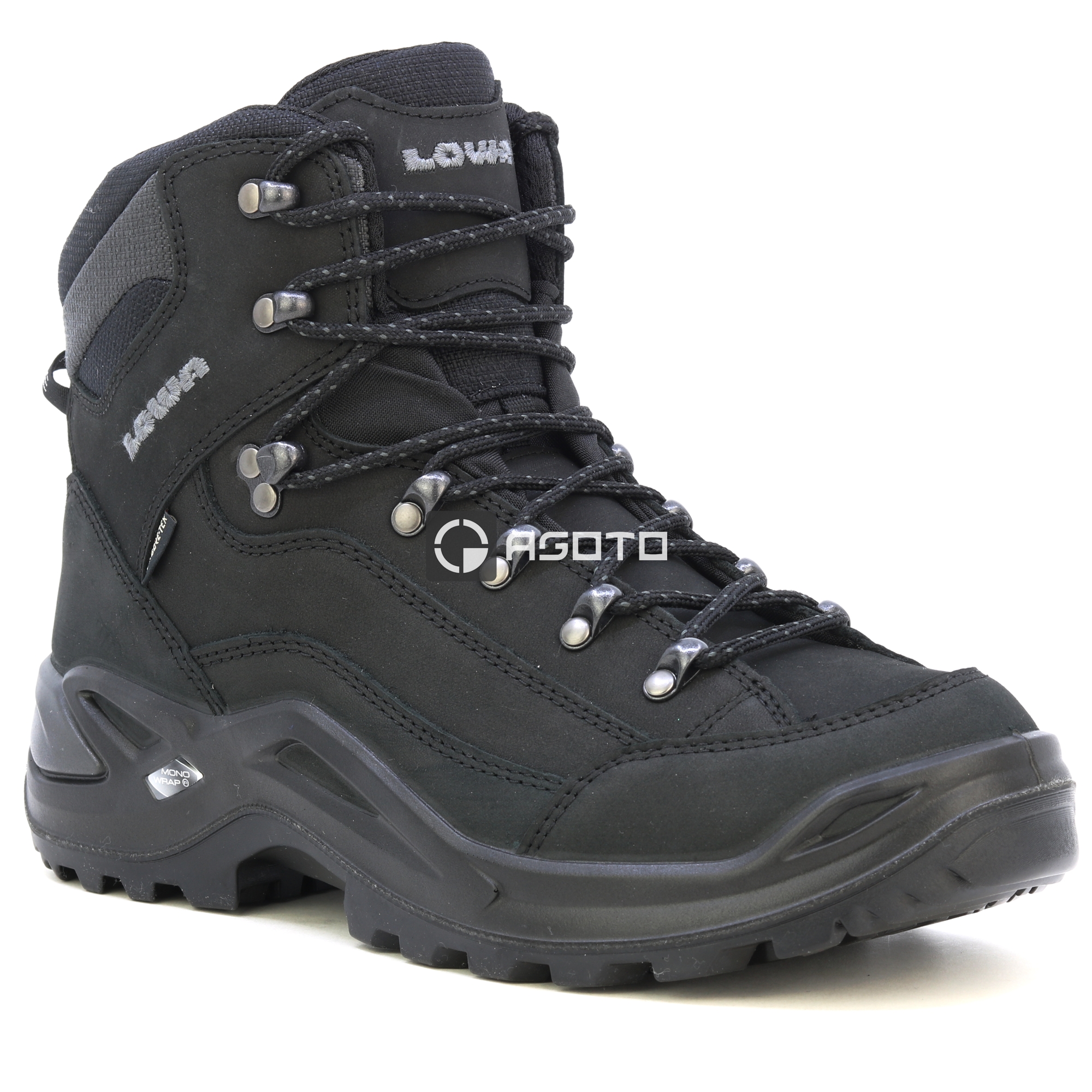 Der LOWA Renegade GTX Mid ist ein Herren-Outdoorschuh in Schwarz, der Komfort, Schutz und Haltbarkeit vereint und sich ideal für verschiedene Geländebedingungen eignet. Dieser Schuh ist mit einer Gore-Tex®-Membran ausgestattet, die für 100 % Wasserdichtigkeit und Atmungsaktivität sorgt und Ihre Füße auch bei anspruchsvollen Aktivitäten und jedem Wetter trocken hält. Das Modell hat einen mittelhohen Schnitt für optimale Stabilität und Knöchelunterstützung, was zu einer sicheren Bewegung auf unebenem Gelände beiträgt. Die Vibram® Evo-Außensohle bietet hervorragende Traktion und Haltbarkeit, während die gepolsterte Zwischensohle für maximalen Komfort bei längeren Wanderungen sorgt. Der obere Teil des Schuhs besteht aus hochwertigem Nubukleder, das nicht nur stylisch, sondern auch sehr langlebig ist. Der LOWA Renegade GTX Mid zeichnet sich durch eine robuste Konstruktion und ganztägigen Komfort aus und ist damit die ideale Wahl für Wanderer und Outdoor-Enthusiasten, die zuverlässiges Schuhwerk für unterschiedliches Gelände suchen.