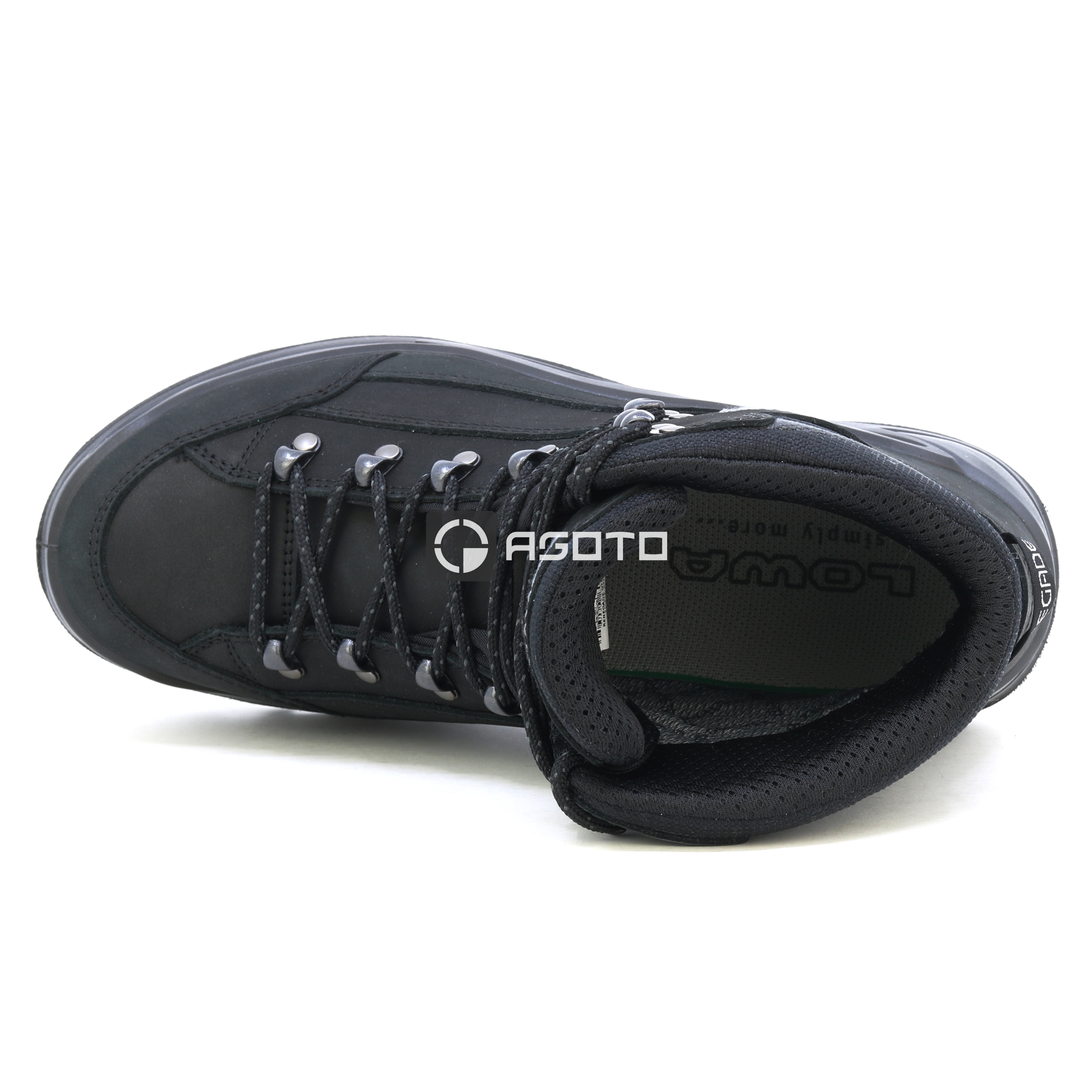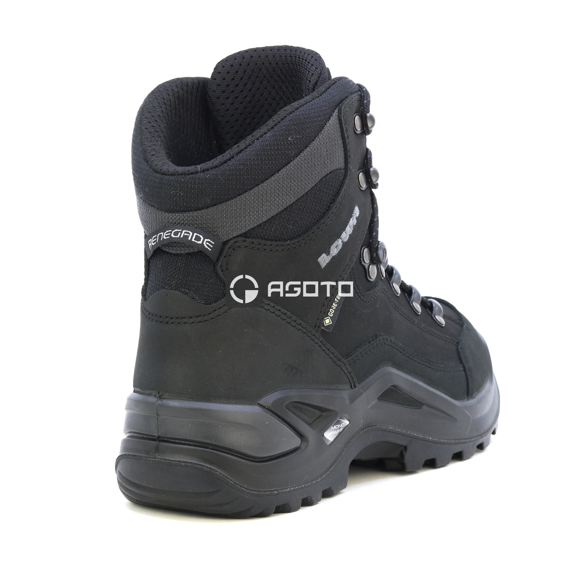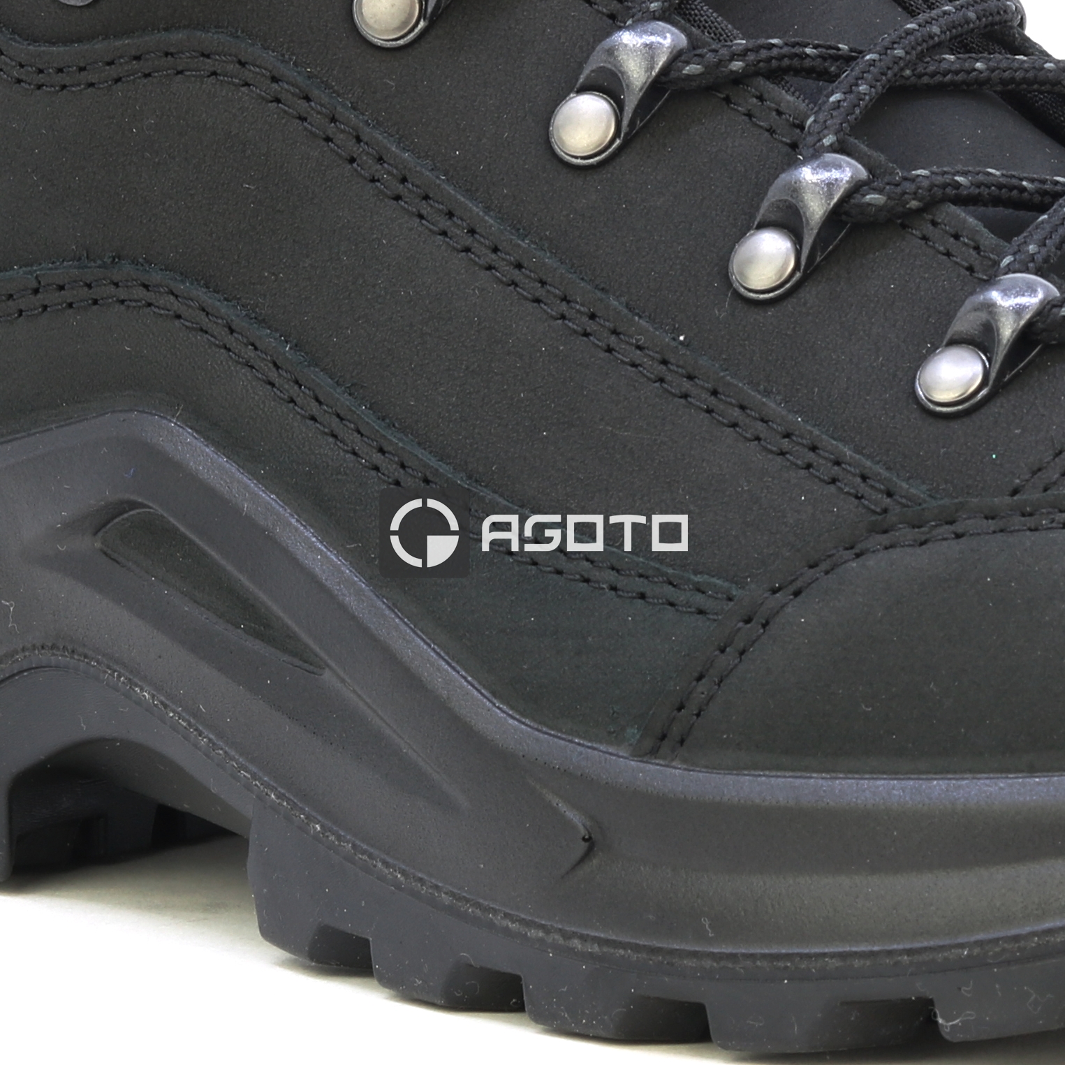 Der LOWA Renegade GTX Mid ist ein Herren-Outdoorschuh in Schwarz, der Komfort, Schutz und Haltbarkeit vereint und sich ideal für verschiedene Geländebedingungen eignet. Dieser Schuh ist mit einer Gore-Tex®-Membran ausgestattet, die für 100 % Wasserdichtigkeit und Atmungsaktivität sorgt und Ihre Füße auch bei anspruchsvollen Aktivitäten und jedem Wetter trocken hält. Das Modell hat einen mittelhohen Schnitt für optimale Stabilität und Knöchelunterstützung, was zu einer sicheren Bewegung auf unebenem Gelände beiträgt. Die Vibram® Evo-Außensohle bietet hervorragende Traktion und Haltbarkeit, während die gepolsterte Zwischensohle für maximalen Komfort bei längeren Wanderungen sorgt. Der obere Teil des Schuhs besteht aus hochwertigem Nubukleder, das nicht nur stylisch, sondern auch sehr langlebig ist. Der LOWA Renegade GTX Mid zeichnet sich durch eine robuste Konstruktion und ganztägigen Komfort aus und ist damit die ideale Wahl für Wanderer und Outdoor-Enthusiasten, die zuverlässiges Schuhwerk für unterschiedliches Gelände suchen.