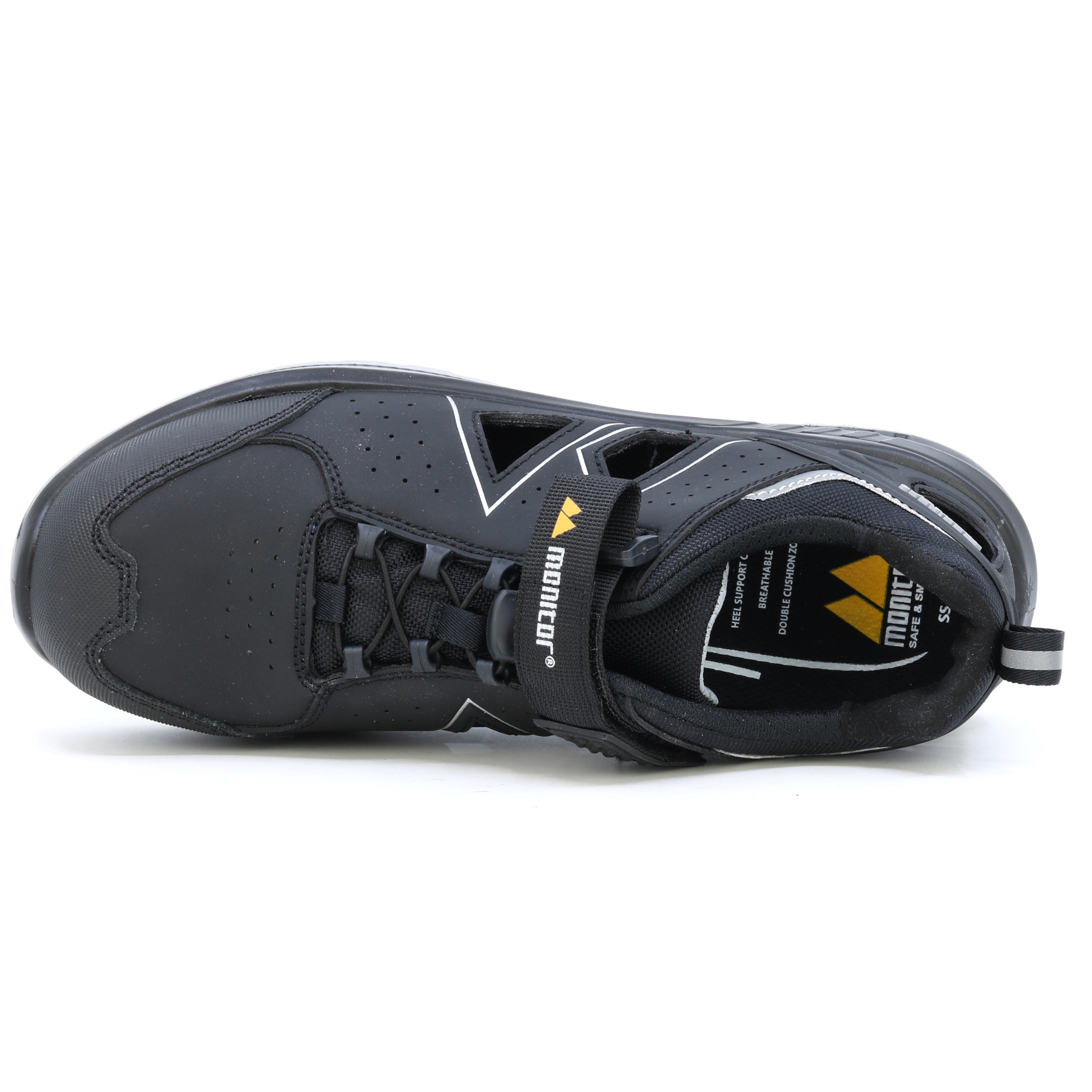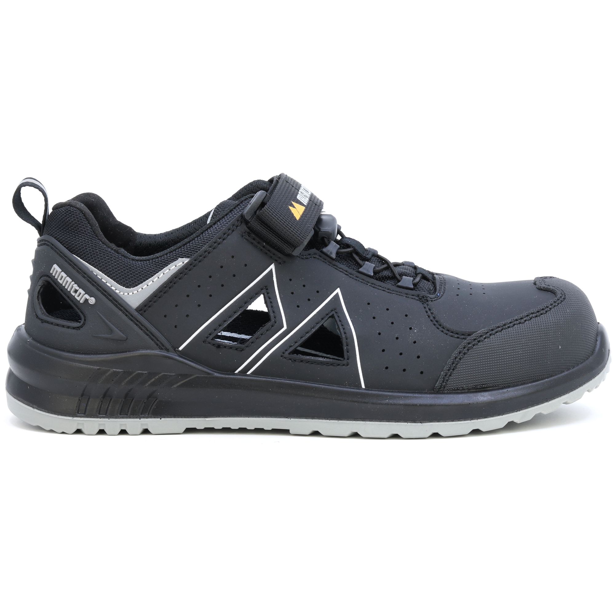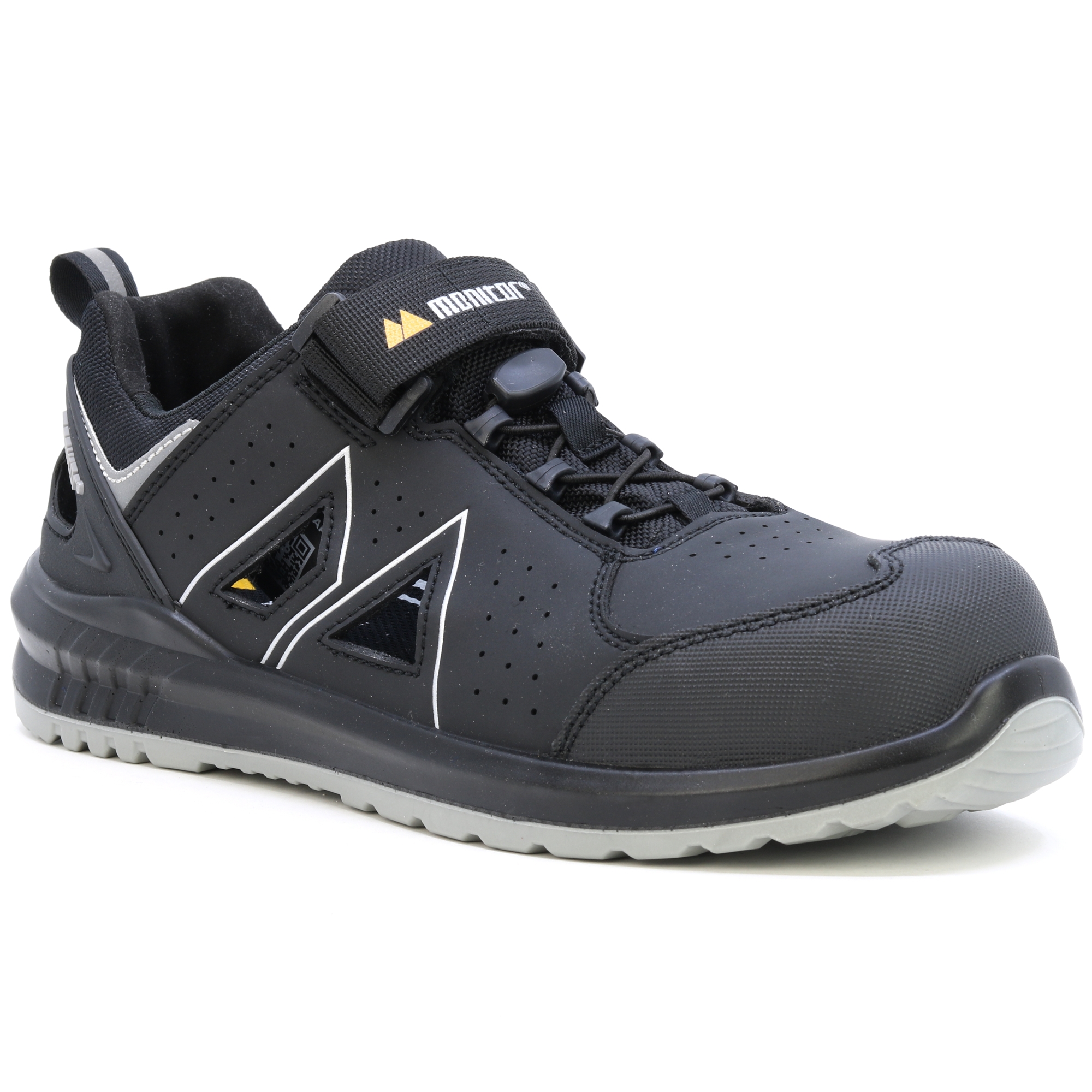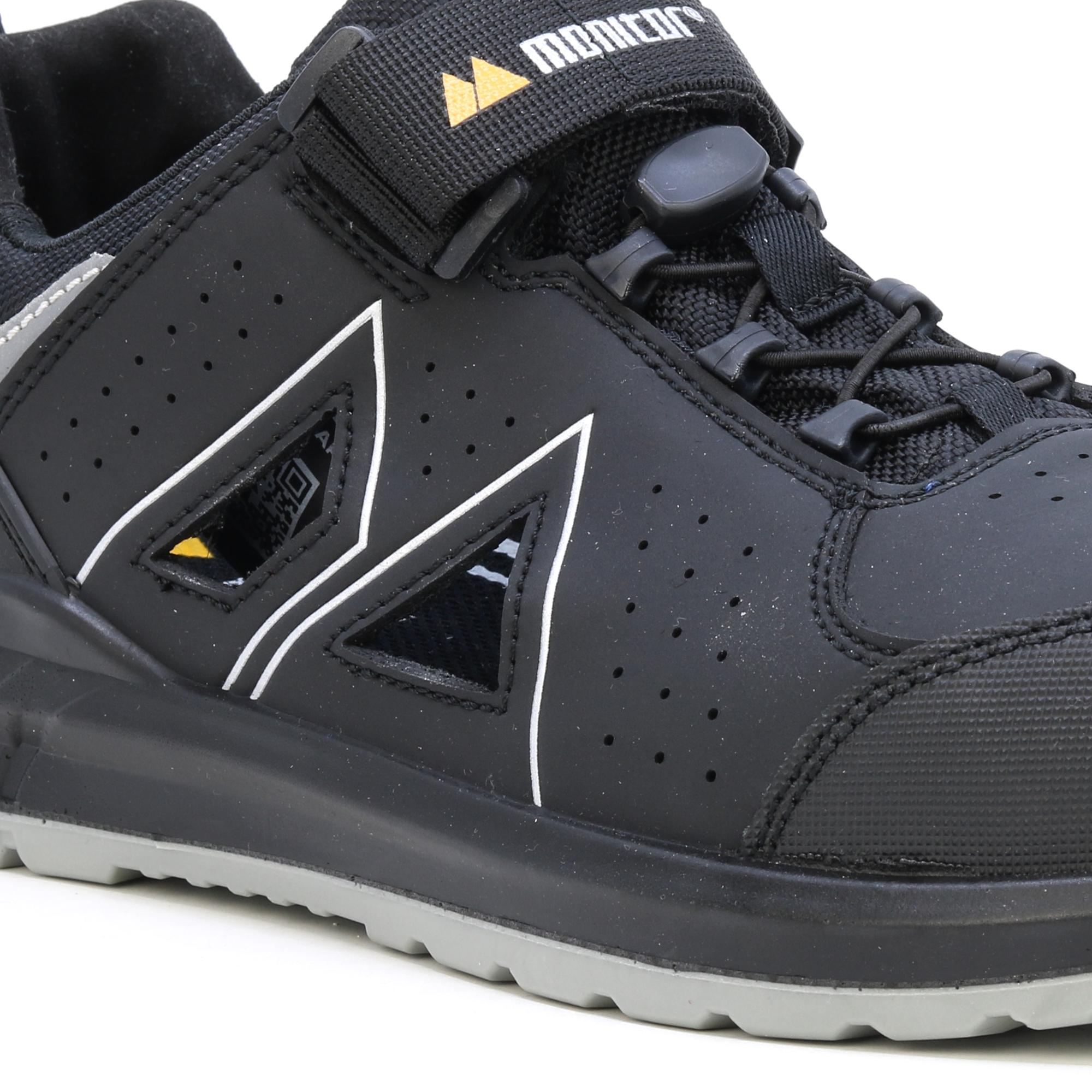 Monitor Radar ist ein weiteres neues Mitglied der Dynamic-Familie! Radar ist ein neuer Sport-Sicherheitsschuh, der durch Spritzgusstechnologie hergestellt wird und ein belüftetes Mikrofaser-Obermaterial mit großen belüfteten Bereichen auf beiden Seiten hat. Die Sohle besteht aus Double-Density-Polyurethan, die Zwischensohle hat eine Weichheit von 50 und zusammen mit der Monitor SS 2.0 Innensohle entsteht trotz der schmalen Sohle ein äußerst bequemer und gedämpfter Schuh. Der Radar verfügt über eine neuartige Schnürung, bei der wir den klassischen Klettverschluss mit einer komfortablen Schnürlösung kombiniert haben, wodurch der Schuh angenehm zu tragen ist und ein einfaches An- und Ausziehen ermöglicht. Die Innenseite des Schuhs besteht aus feuchtigkeitsabsorbierendem Gewebe. Die Spitze besteht aus Verbundmaterial und Durchdringungswiderstand aus weichem APT.