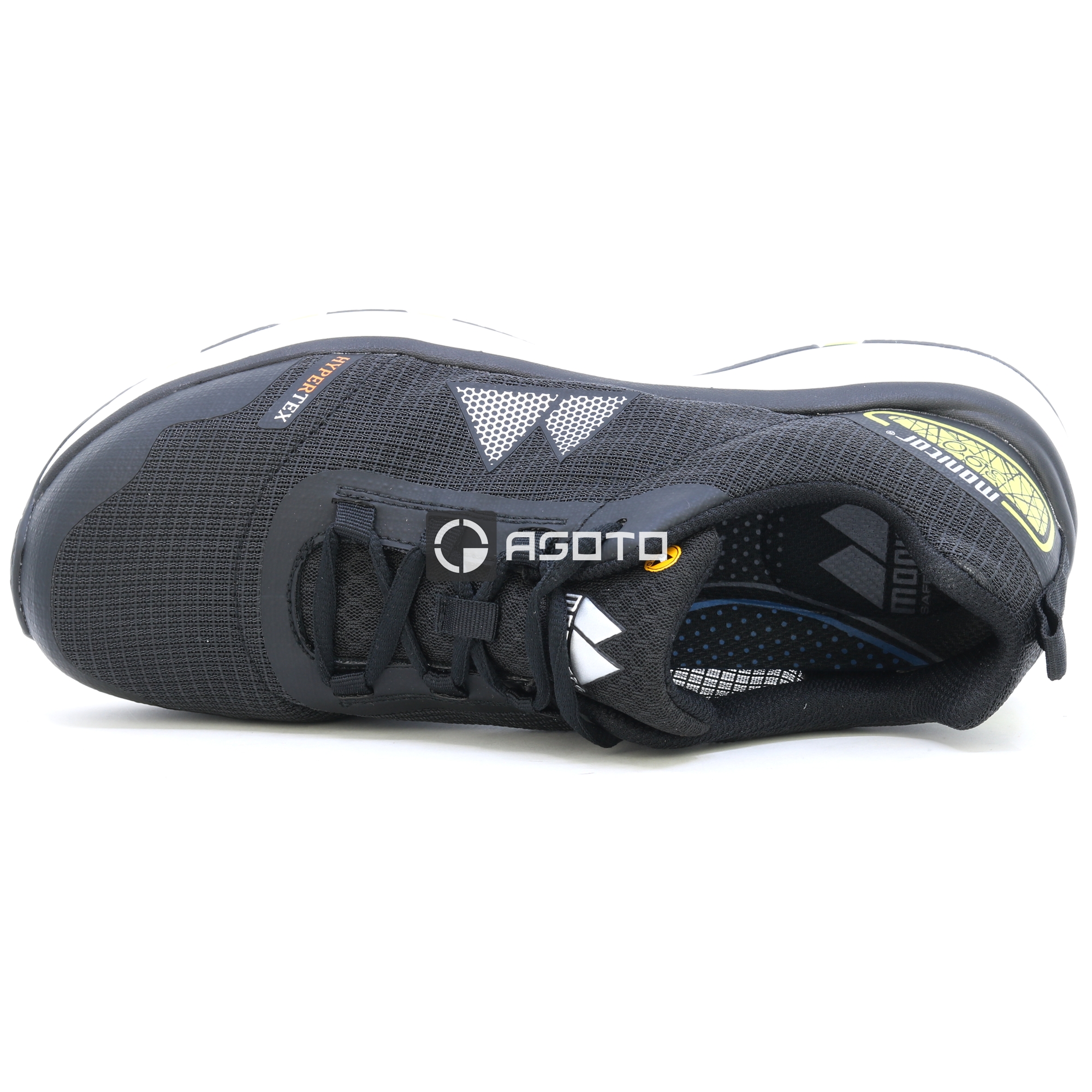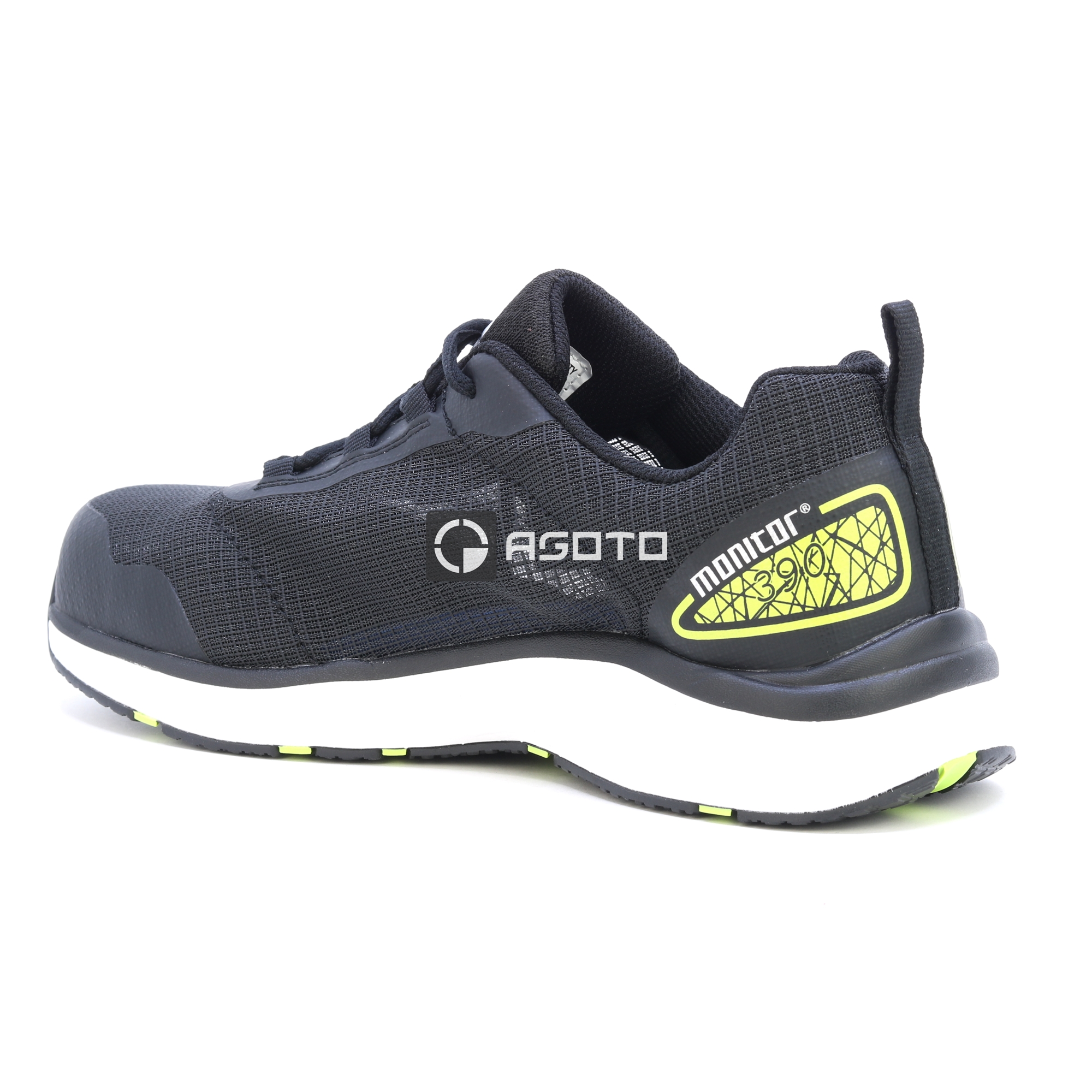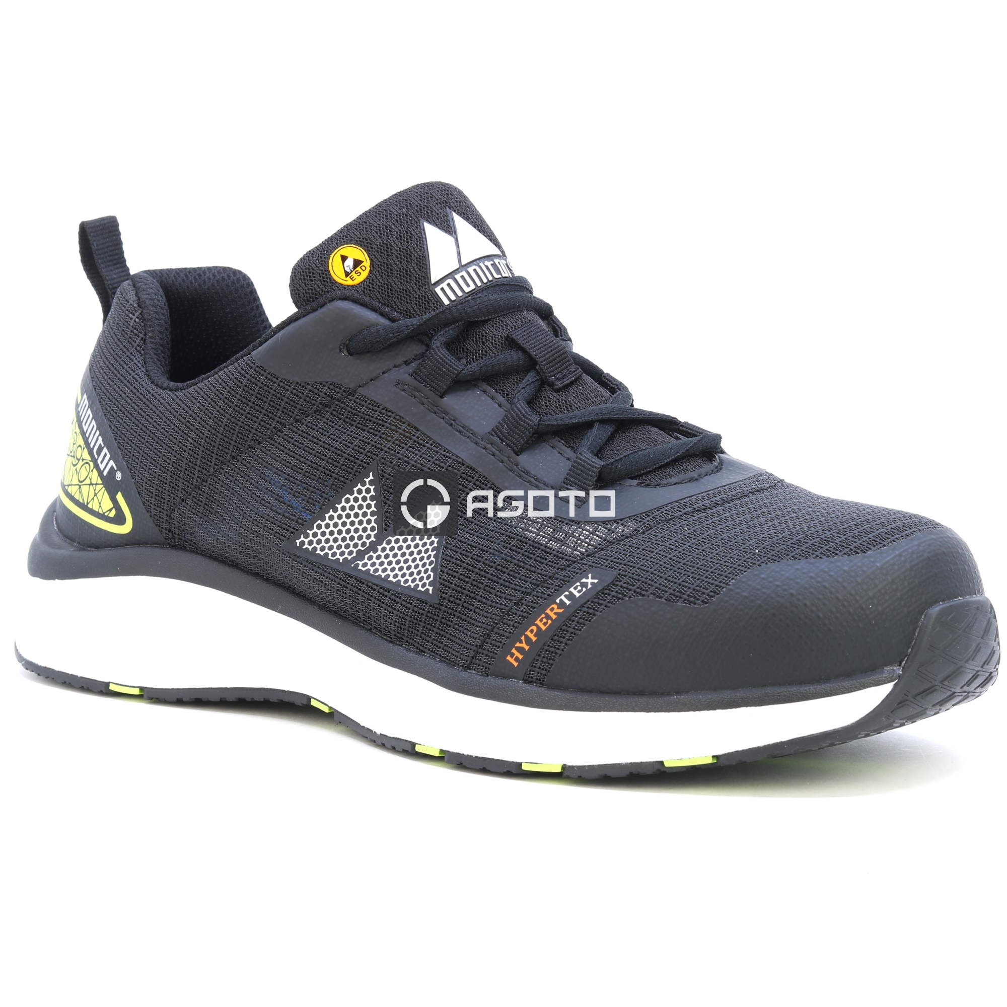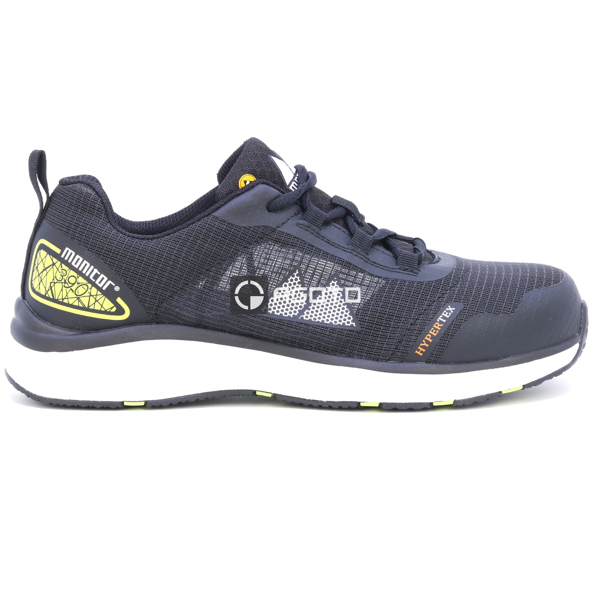Der Monitor Graphic ist unser Sortiment an leichten Sicherheitsschuhen für Lager, Industrie und Leichtbau. Der Three 100 Ninety (390) ist genau das, ein Sicherheitsschuh, der nur 390 Gramm wiegt, aber dennoch über eine Aluminium-Zehenschutzkappe und einen Pantzar-Durchtrittschutz verfügt. Das Obermaterial dieses Schuhs besteht aus extrem luftigem und strapazierfähigem Hypertex-Material mit Fokus auf Leichtigkeit und Atmungsaktivität. Trotz des geringen Gewichts und der leichten Optik ist dieser Schuh weit geschnitten. Die Sohle besteht aus Gummi mit einer EVA-Zwischensohle. Bei der Innensohle handelt es sich um eine Monitor's Pro Support-Sohle. Der wahrscheinlich leichteste Sicherheitsschuh der Welt!