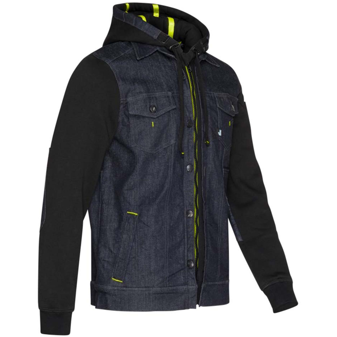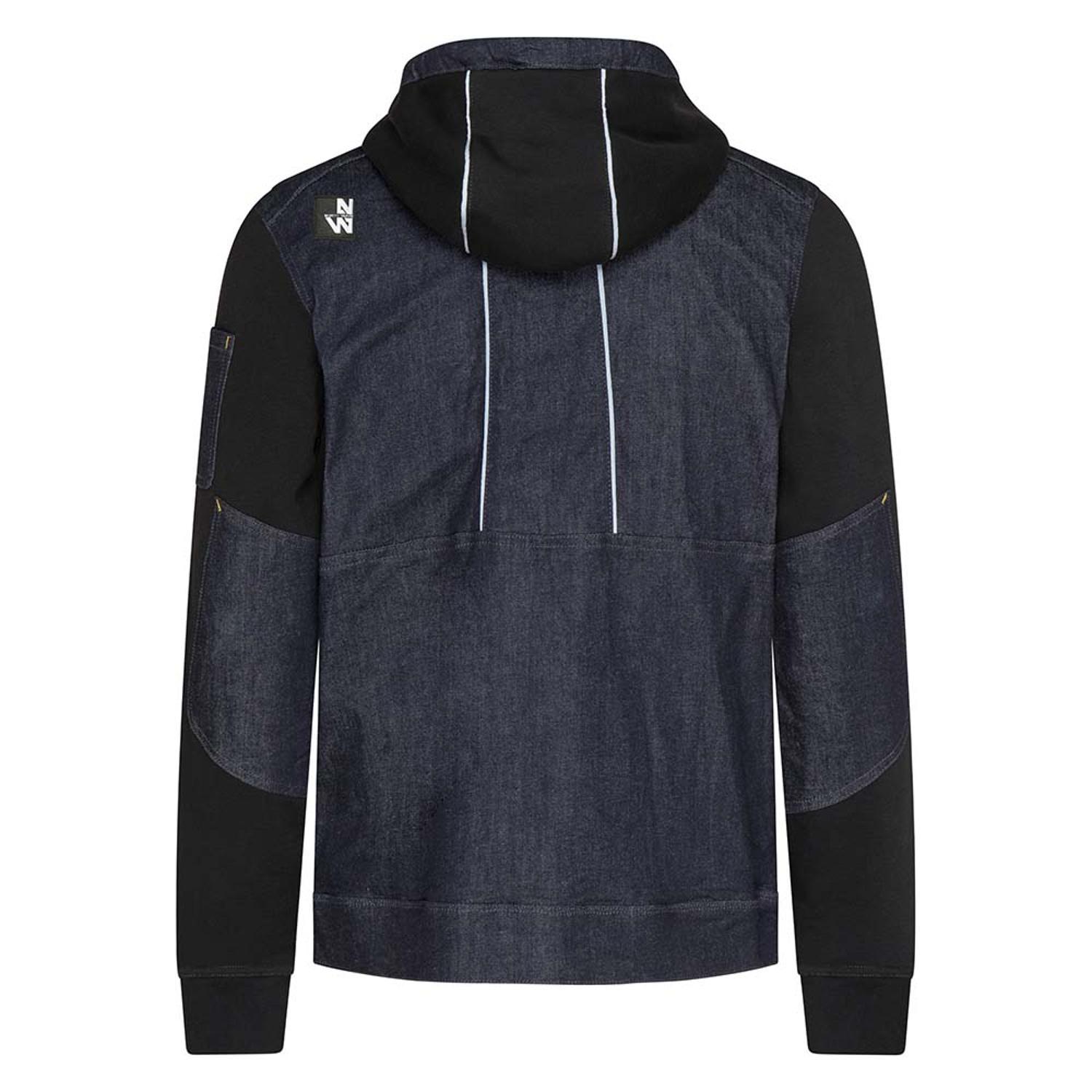 Eine moderne Jeans-Stretch-Arbeitsjacke, die die Bewegungsfreiheit nicht einschränkt und gleichzeitig viele Aufbewahrungstaschen für Kleinigkeiten bietet, darunter eine verstellbare Kapuze. DENIM 98 % Baumwolle 2 % Elastan, 360 g/m2. FLEECE 80 % Baumwolle 20 % Polyester, 300 g/m2