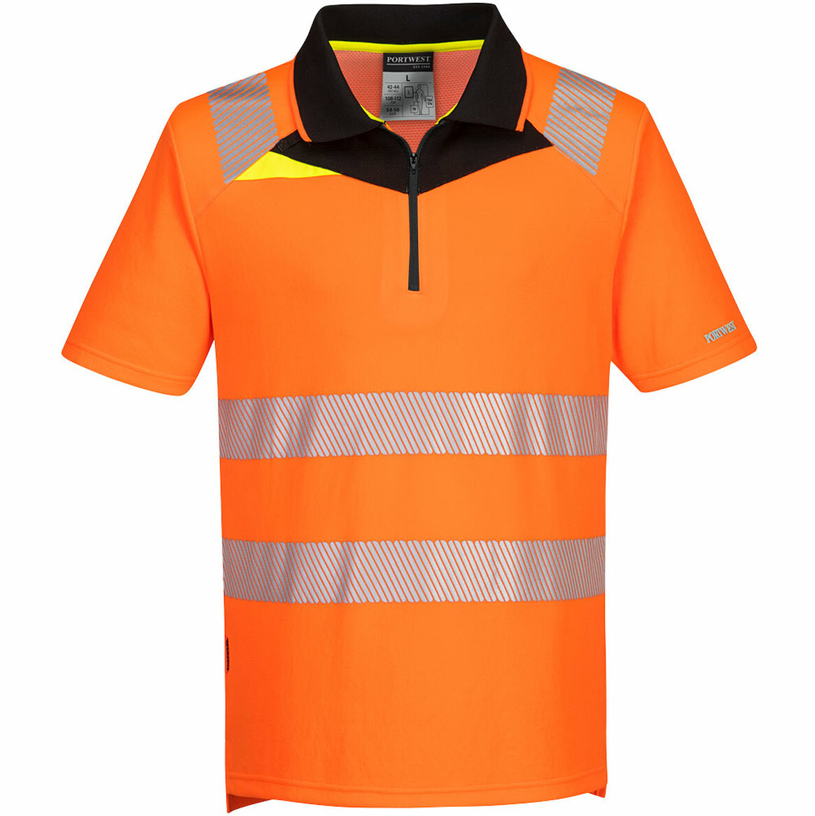 Modernes DX4-Poloshirt mit aktivem Schnitt aus hochwertigem Polyester- und Polypropylengewebe, das Sie den ganzen Tag kühl, trocken und bequem hält. Das leichte, wärmeaufgebrachte segmentierte Hivistex Pro-Reflexband ermöglicht eine verbesserte Sichtbarkeit und Mobilität. Saug-, Kühl- und Trocknungsfähigkeit. Ausgezeichneter Stil mit Kontrastkragen und fluoreszierendem Streifen. Kontrastfarbe für andere Stile. Schlanke Passform für außergewöhnlichen Komfort. Segmentiertes Reflexband zum Aufbügeln für bessere Sichtbarkeit. Schleife am Radio zur einfachen Befestigung