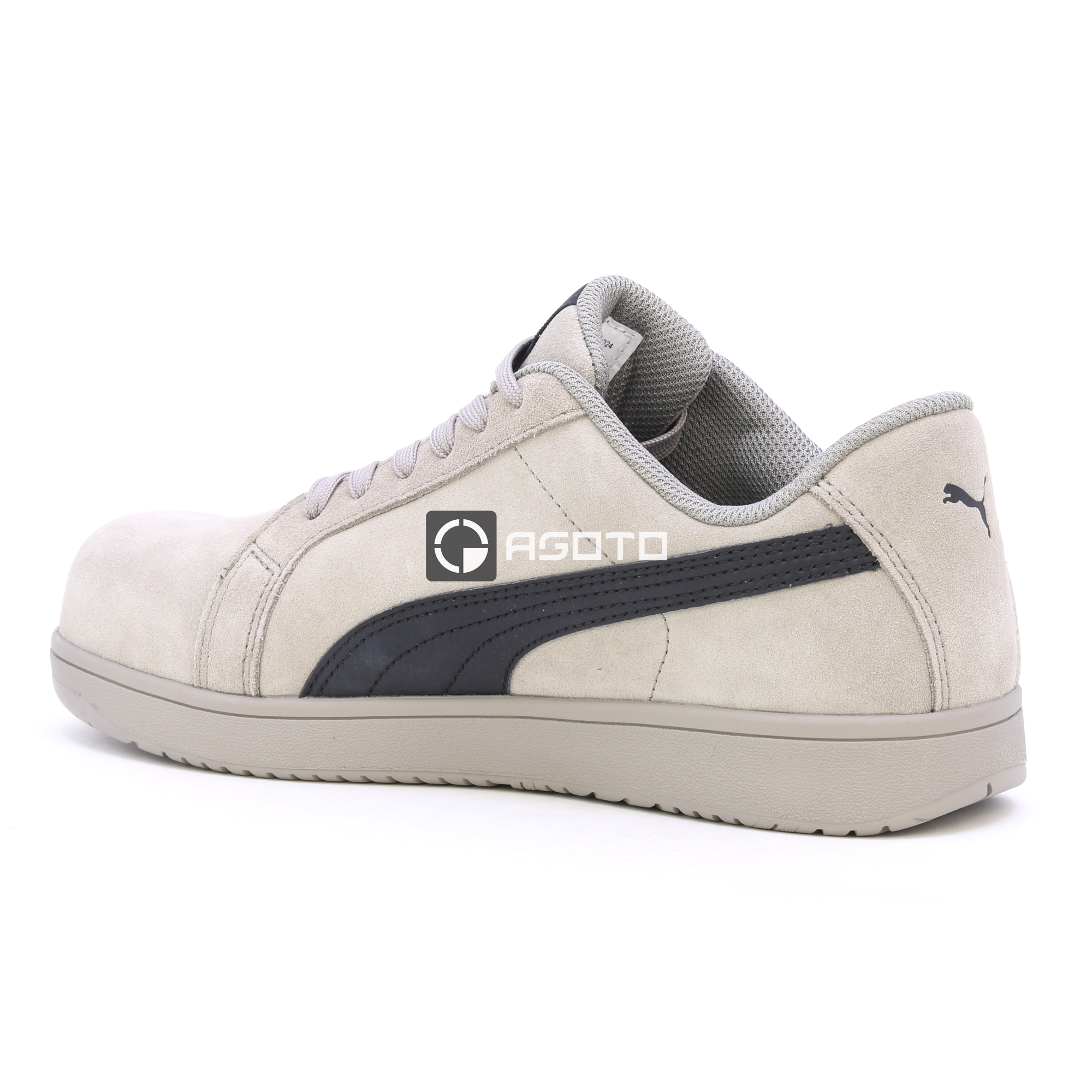 Ist das wirklich ein Sicherheitsschuh? Aber natürlich! Der neue ICONIC von PUMA Safety, inspiriert von klassischem Sportschuh-Design, sieht nicht nur gut aus, sondern überzeugt auch mit durchdachten Funktionen! Der S1PL-Sicherheitsschuh mit Fiberglas-Zehenkappe und flexibler Durchtrittschutz ist mit einer rutschhemmenden Sohle ausgestattet, die hitzebeständig bis 300 °C ist und mit optimalem Grip und perfekter Dämpfung überzeugt. Der in der Sohle integrierte Drehpunkt im Ballenbereich reduziert Reibung und Ermüdungserscheinungen. Die Einlegesohle Evercushion® RELIEF mit spezieller Fußgewölbeunterstützung sorgt für optimale Druckentlastung und eine natürliche Fußposition im Schuh. Stoßdämpfende Elemente im Fersen- und Vorderfußbereich absorbieren Erschütterungen und Aufprallkräfte und machen den ICONIC selbst an langen Arbeitstagen extrem bequem.