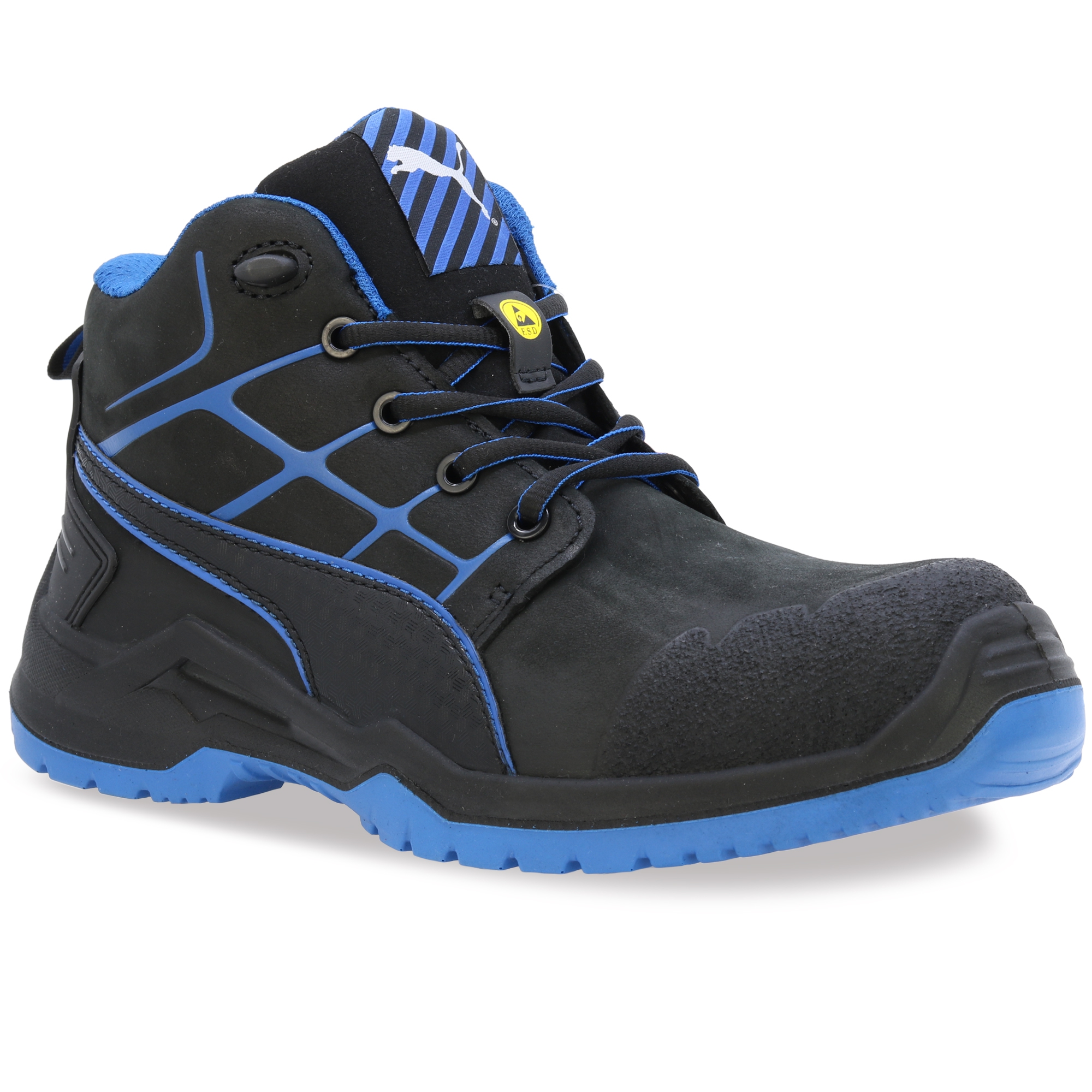 Der metallfreie KRYPTON BLUE aus der TECHNICS LINE Linie von PUMA SAFETY zeichnet sich durch hohe Flexibilität und spürbar leichte Bauweise aus. Erreicht wird das durch die naturalFLEXMOTION®-Sohlenarchitektur. Sie kombiniert das "Natural Running"-Konzept mit modernster Sicherheitsschuhtechnologie. Der S3 Sicherheitsstiefel mit ESD Eigenschaften aus geöltem Nubukleder ist mit einer hochbelastbaren Fiberglaskappe und FAP®-Durchtrittschutz ausgestattet. Das evercushion® BA Fußbett aus offenporigem Schaumstoff transportiert Feuchtigkeit vom Fuß weg und sorgt zusammen mit dem atmungsaktiven BreathActive Funktionsfutter für ein angenehmes Fußklima den ganzen Tag lang. Das speziell entwickelte Wafer-Profil der Laufsohle garantiert dabei bestmöglichen Grip, vor allem auf glatten Industrieböden.