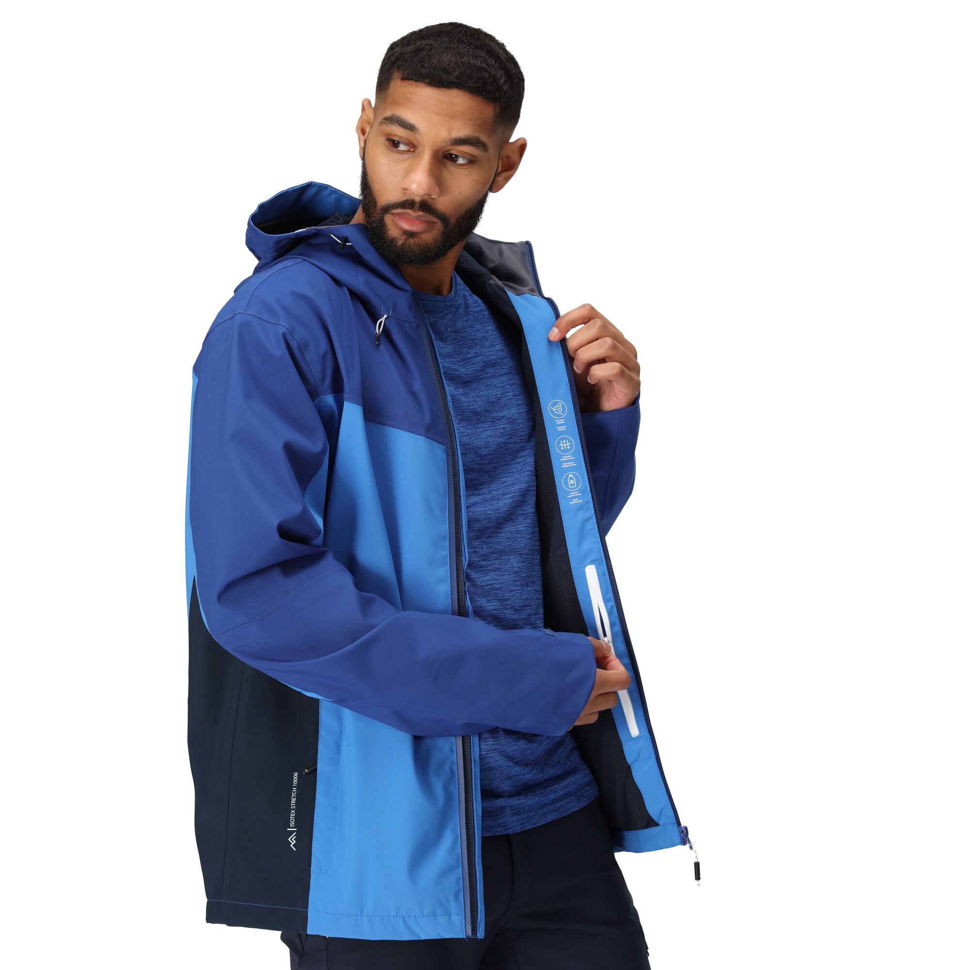 Pánská outdoorová bunda Regatta Birchdale. Díky membráně Isotex 10000 je nepromokavá a prodyšná. Pohodlí při nošení zaručuje celostrečový materiál. Bunda je vhodná na výlety i náročnější outdoorové aktivity. Membrána Isotex 10000 stretch (vodnní sloupec 10000mm) vodoodpudivá povrchová úprava, podlepené švy, kapuce s obousměrnými nastavovacími šňůrkami, vodoodpudivý hlavní zip s krytkou brady, dvě dolní kapsy na zip, jedna náprsní na zip, upravení rukávů suchým zipem, spodní lem s gumovou tkanicí, materiál: 100% polyester stretch