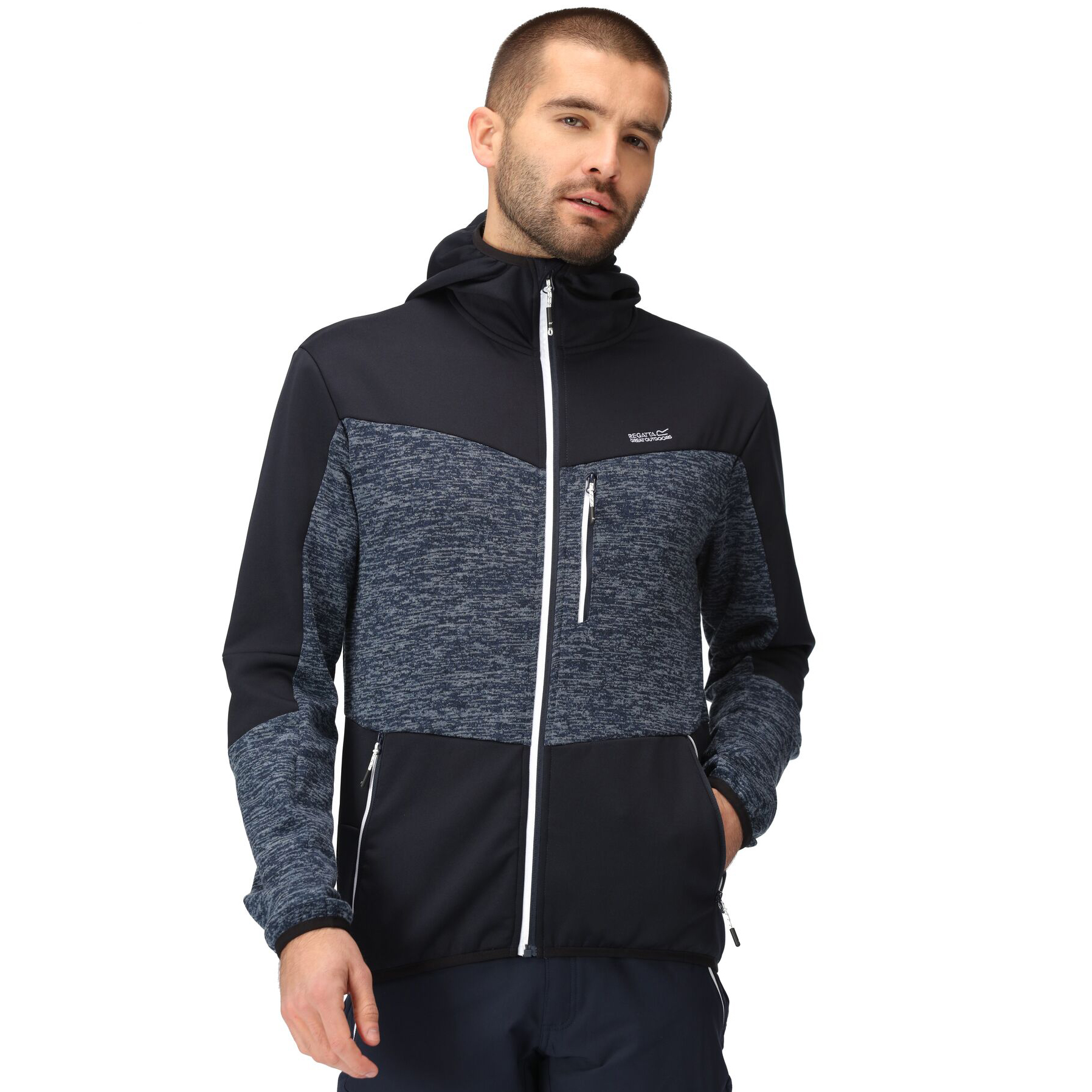 Der Cadford V Fleece Hoodie für Herren von Regatta verfügt über einen stilvollen melierten Strick und flexible Stretcheinsätze, was ihn zu einer idealen Mittelschicht für unterwegs macht. Dank des warmen und bequemen Fleece ist es ideal für Spaziergänge und Ausflüge in die Natur. Der melierte Strickeffekt verleiht ihm Stil. In kälteren Klimazonen können Sie dieses Fleece ohne voluminöse Teile unter einer Jacke tragen. Elastische Einfassungen an Bündchen, Kapuze und Saum verhindern das Eindringen von Witterungseinflüssen. Materialzusammensetzung: 85 % Polyester, 13 % Viskose/Viskose, 2 % Elastan