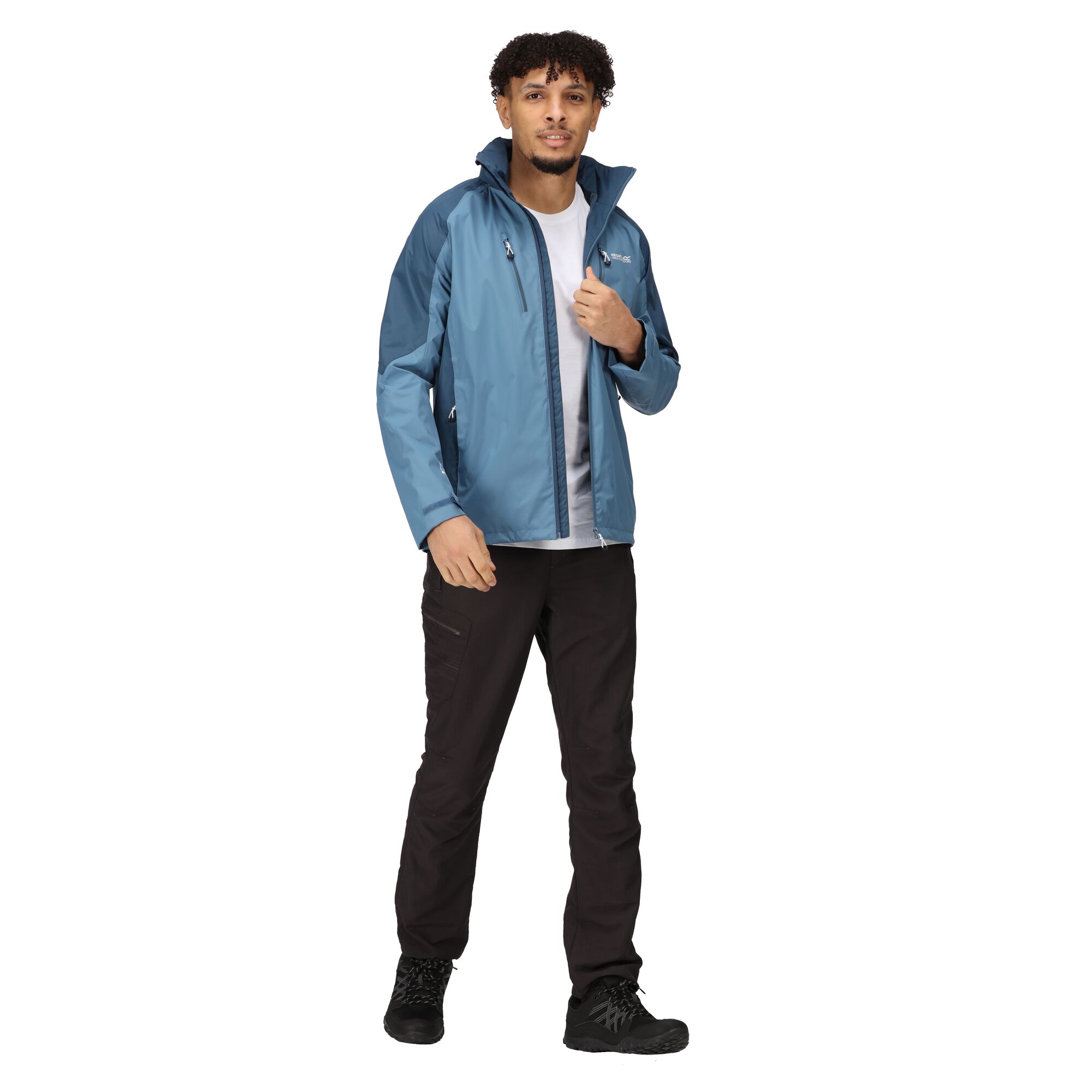 Die leichte Herrenjacke REGATTA CALDERDALE ist wasserdicht, atmungsaktiv und winddicht dank des verwendeten ISOTEX 5000-Materials. Die Jacke ist vollständig geöffnet und verfügt über eine integrierte Kapuze im Kragen. Die Kapuze hat einen Schirm, lässt sich leicht verstellen und je nach Wetterlage in den Kragen zurückrollen. Die Ärmel lassen sich per Klettverschluss verstellen, der untere Saum ist ebenfalls verstellbar. Die Jacke verfügt über zwei Haupttaschen mit Reißverschluss, zwei Brusttaschen und eine Innentasche. Die Innenseite der Jacke ist mit einem Mesh-Gewebe ausgestattet, das eine bessere Zirkulation der Körperfeuchtigkeit ermöglicht. Ein ideales leichtes Modell für anspruchslose Wanderungen oder Stadtbummel. Material ISOTEX 5000 (wasserdicht 5000 mm/cm2, Atmungsaktivität 5000 g/m2/24h), integrierte Kapuze, verstellbare Kapuze mit Schirm, Ärmel- und Saumregulierung, 2 Haupttaschen, 2 Brusttaschen, 1 Innentasche, Netzfutter.