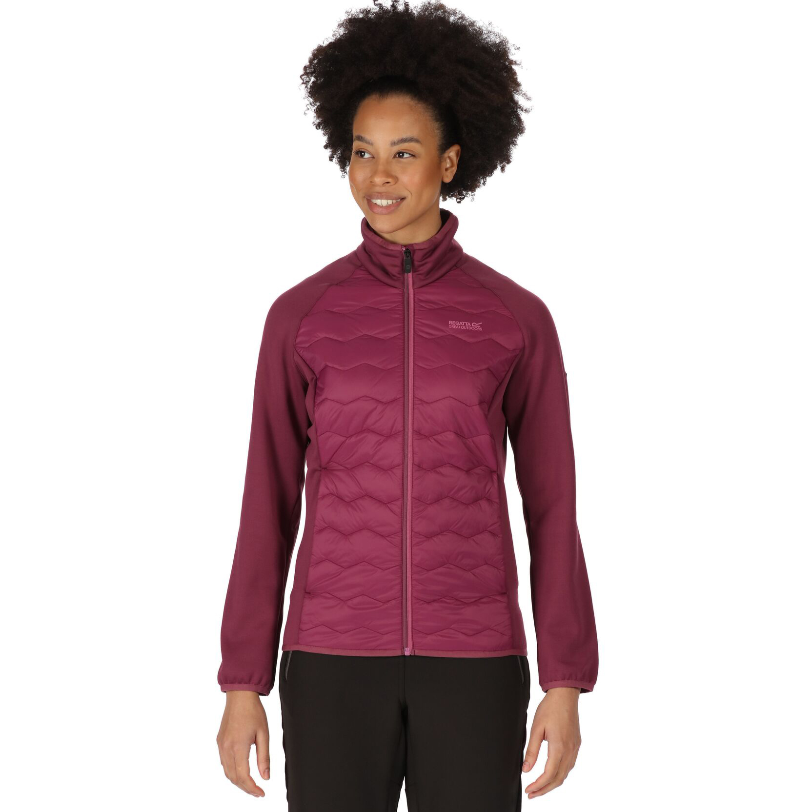 Die leichte, warme und flexible Clumber Hybrid III Damenjacke von Regatta kombiniert eine stark komprimierbare Warmloft-Polsterung mit einer wasserabweisenden Hülle und strategisch platziertem Extol Stretch-Gewebe. Sie besteht aus Polyamid und hat eine wasserabweisende DWR-Behandlung, die Sie vor widrigem Wetter schützt. Zwei Reißverschlusstaschen sind äußerst wertvoll für die Aufbewahrung eines Taschentuchs oder kleiner Gegenstände. Strategisch platziertes Extol Stretch Performance-Gewebe um Körper und Arme bietet volle Bewegungsfreiheit. Die vereinfachte Silhouette und die Stretchbindung eignen sich für Wanderungen in den Bergen oder für Spaziergänge mit Freunden durch die schöne Landschaft. Es verfügt über ein Regatta Outdoors-Abzeichen auf dem Ärmel.