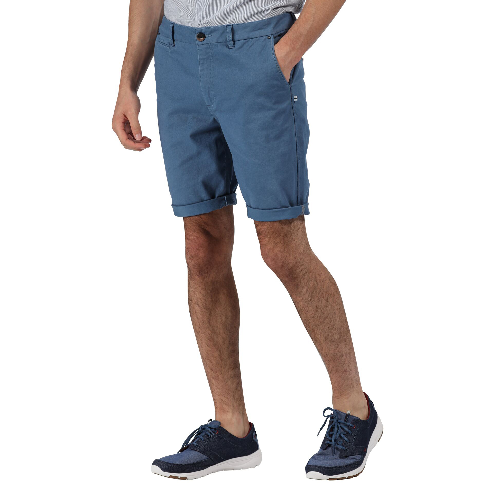 Regatta SALVATOR Herren-Shorts bestehen aus einem bequemen, dehnbaren, strapazierfähigen Baumwollmaterial. Die Shorts haben einen klassischen Knopf- / Reißverschluss, Schlaufen für einen möglichen Riemen, zwei Haupttaschen auf der Vorderseite, eine kleine Tasche für eine Uhr. Auf der Rückseite befinden sich zwei Knopftaschen. Die Hose läuft nach unten schmaler zu, die Länge geht auf die Knie, die Weichmachung des Materials garantiert den ganzen Tag ein angenehmeres Tragen. Dieses Modell hat ein klares Design und viel Stauraum, den Sie sicher bei jeder Gelegenheit nutzen werden. Material: 98 % Baumwolle, 2 % Elasthan