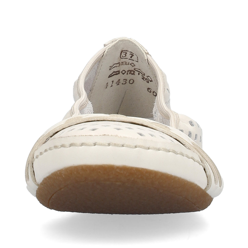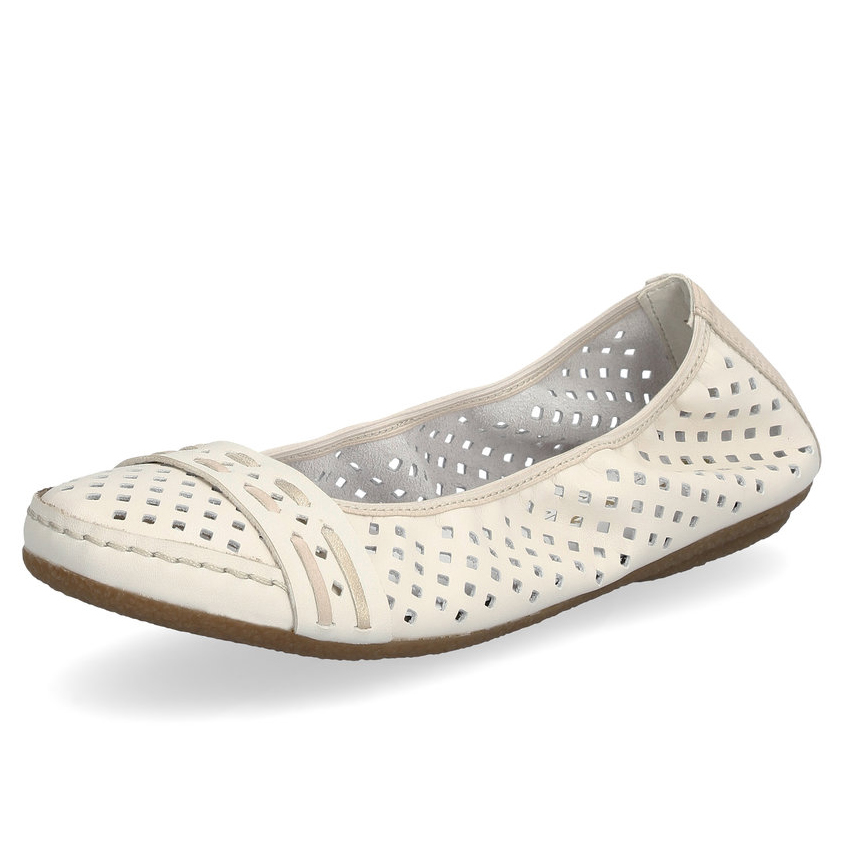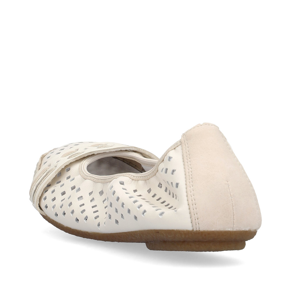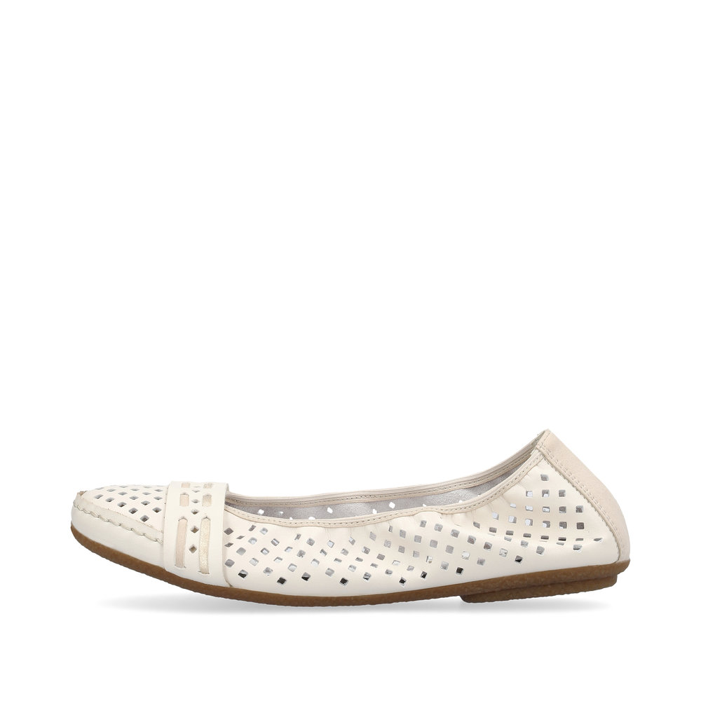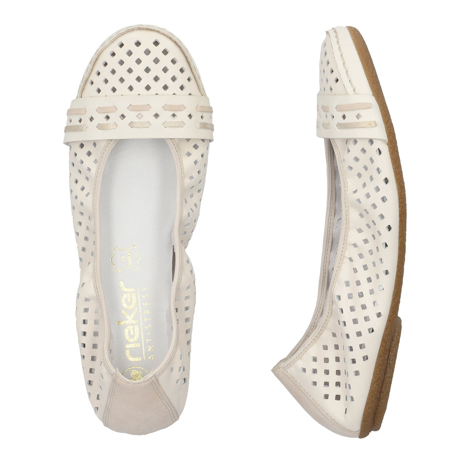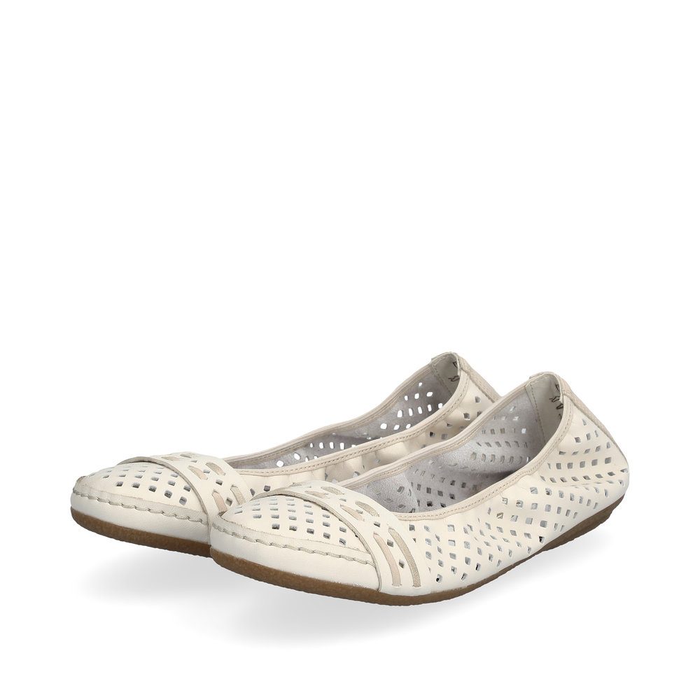 Diese eleganten Sommer-Ballerinas von Rieker sind die perfekte Wahl für warme Tage. Das stilvolle Design mit originellen Perforationen sorgt für Leichtigkeit und Luftdurchlässigkeit, während der Riemen über der Spitze einen besonderen Akzent setzt. Die weiche Leder-Innensohle bietet maximalen Komfort, auch bei längerem Tragen. Dank der hochwertigen Sohle mit Antistress-Technologie, die Stöße dämpft und sich dem Fuß anpasst, genießen Sie bei jedem Schritt Leichtigkeit und Flexibilität. Diese Ballerinas lassen sich nicht nur perfekt mit Sommerkleidern und Röcken kombinieren, sondern passen auch wunderbar zu Hosen.