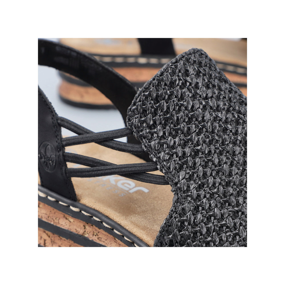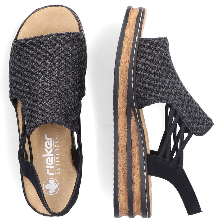Schreiten Sie stilvoll durch den Tag mit den schwarzen Sandalen von Rieker, die ein raffiniertes Flechtdesign mit modernem Look vereinen. Das hochwertig verarbeitete Obermaterial unterstreicht Ihre individuelle Eleganz, während seitliche Gummizüge für eine perfekte Passform und einfaches Anziehen sorgen. Die erhöhte Sohle verleiht nicht nur eine optische Streckung, sondern auch eine stilvolle Ausstrahlung durch ihre besondere Verarbeitung. Die weiche Innensohle garantiert maximalen Komfort bei jedem Schritt, sei es beim Stadtbummel oder einem langen Tag auf den Beinen. Diese Sandalen sind die perfekte Kombination aus Eleganz, Funktionalität und zeitlosem Tragekomfort, den Sie jeden Tag genießen können. Dank der Antistress-Technologie ist die Sohle leicht, flexibel und absorbiert effektiv Stöße beim Gehen, um das Wohlbefinden zusätzlich zu steigern.