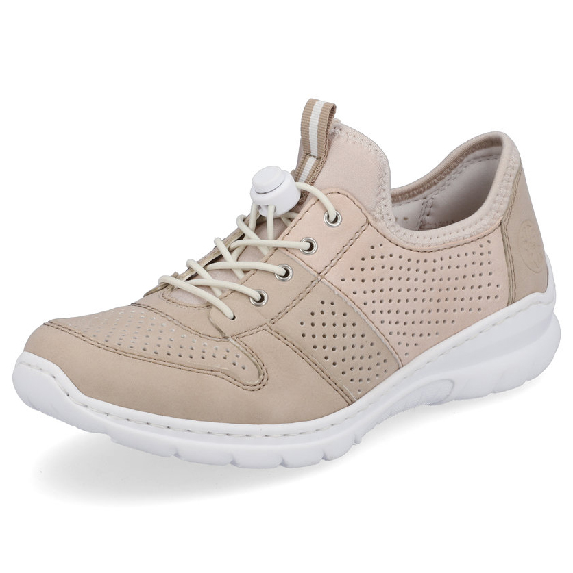 Stilvolle und bequeme Damenschuhe der Marke RIEKER, die perfekt für Frauen sind, die Eleganz und Komfort vereinen möchten. Das neutrale Farbschema verleiht dem Modell Vielseitigkeit, während die feine Perforation entlang des Schuhs für optimale Belüftung und ein frisches Tragegefühl sorgt. Die MemoSoft-Innensohle aus Memory-Schaum passt sich der Fußform an und bietet höchsten Komfort bei jedem Schritt. Dank der Antistress-Technologie ist die Sohle leicht, flexibel und absorbiert Stöße effektiv, was das Gehen den ganzen Tag über erleichtert. Diese Sneaker sind die perfekte Ergänzung für jedes Outfit und verleihen Ihnen bei jeder Gelegenheit Selbstbewusstsein.
