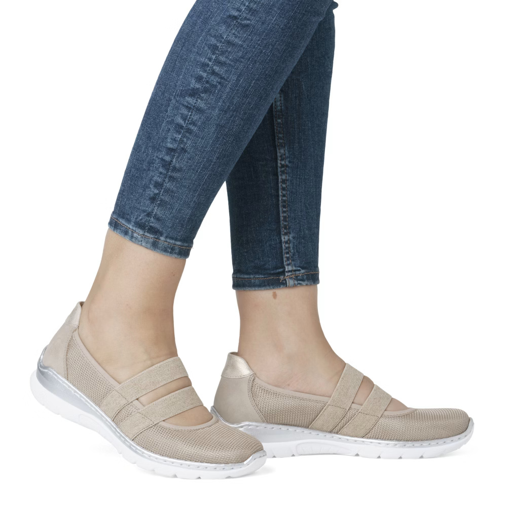 Stilvolles Design trifft auf höchsten Komfort – diese RIEKER Schuhe begeistern mit einer durchdachten Materialkombination in sanften, hellen Farbtönen. Elastische Riemen über dem Spann sorgen für optimalen Halt und eine perfekte Passform, während die unglaublich weiche MemoSoft-Memoryschaum-Einlegesohle jeden Schritt sanft abfedert und maximalen Tragekomfort bietet. Die leichte und flexible Sohle mit Antistress-Technologie gewährleistet natürliche Bewegungsfreiheit und absorbiert effektiv Stöße, wodurch diese Schuhe sowohl für den Arbeitsalltag als auch für Freizeitaktivitäten bestens geeignet sind. Die gelungene Verbindung von stilvollem Design und durchdachten Komfortdetails macht dieses Modell zur idealen Wahl für Frauen, die Eleganz und unbeschwerten Tragekomfort gleichermaßen schätzen.