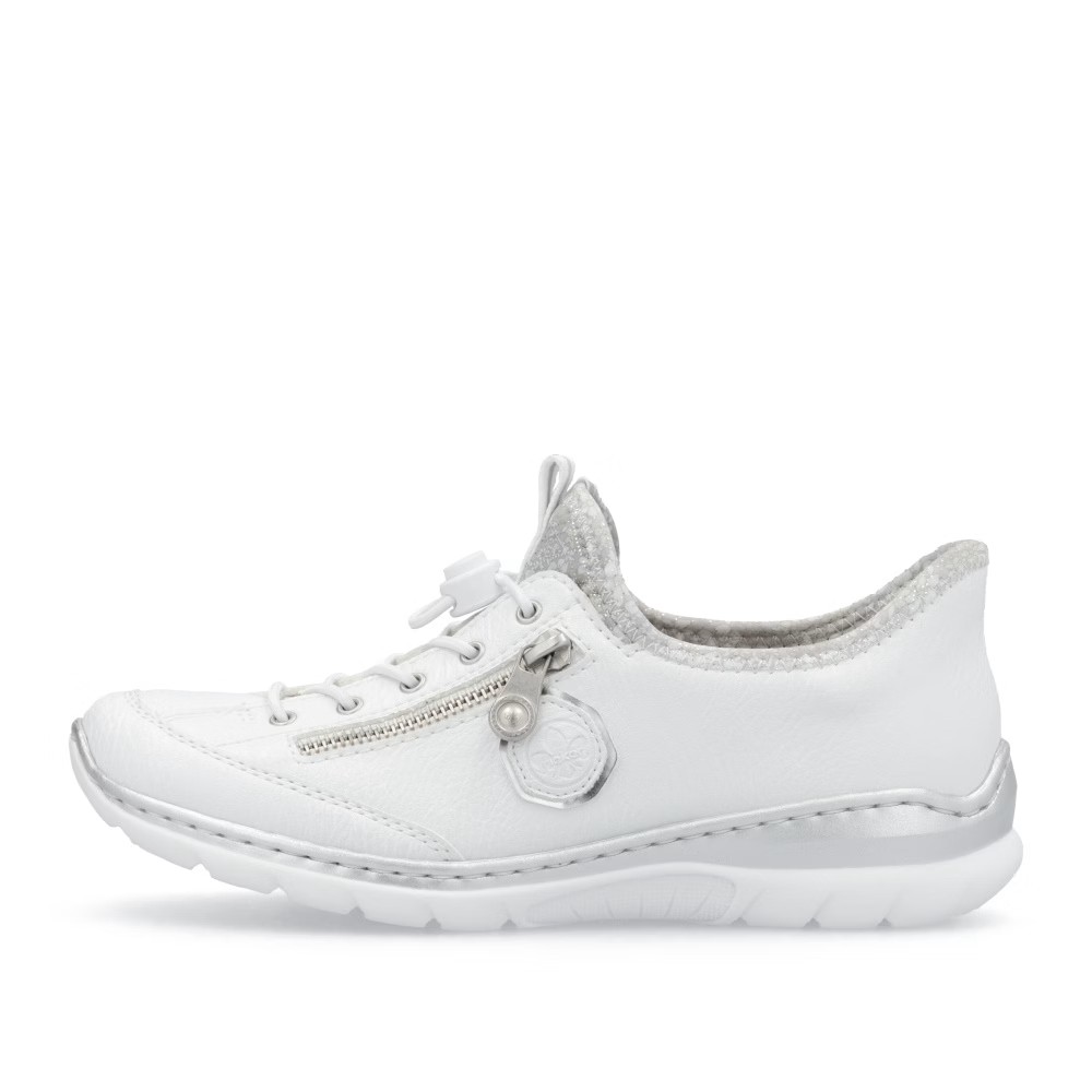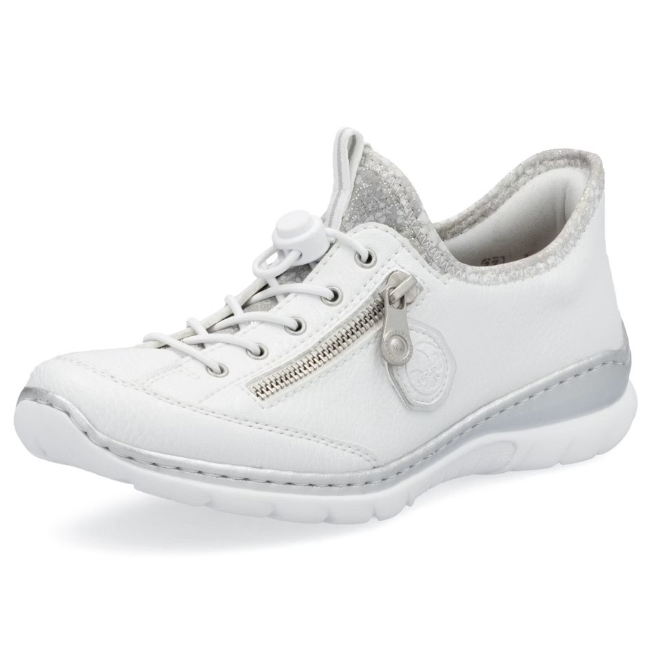 Komfort in zeitlosem Weiß – die Schuhe von RIEKER vereinen modernes Design mit himmlischem Tragekomfort. Hochwertige Materialien und eine präzise Verarbeitung sorgen dafür, dass das tägliche Tragen nicht nur stilvoll, sondern auch äußerst bequem ist. Ein großer Vorteil ist der elastische Einsatz am oberen Rand, der das Anziehen erleichtert, während die Gummischnürung und der Reißverschluss als ästhetisches Detail dienen. Für maximalen Komfort ist die Innensohle aus Memory Foam gefertigt, die sich besonders weich anfühlt und sich perfekt an die Fußform anpasst. Dieses Modell ist die ideale Wahl für den Alltag – sei es für die Arbeit oder die Freizeit.