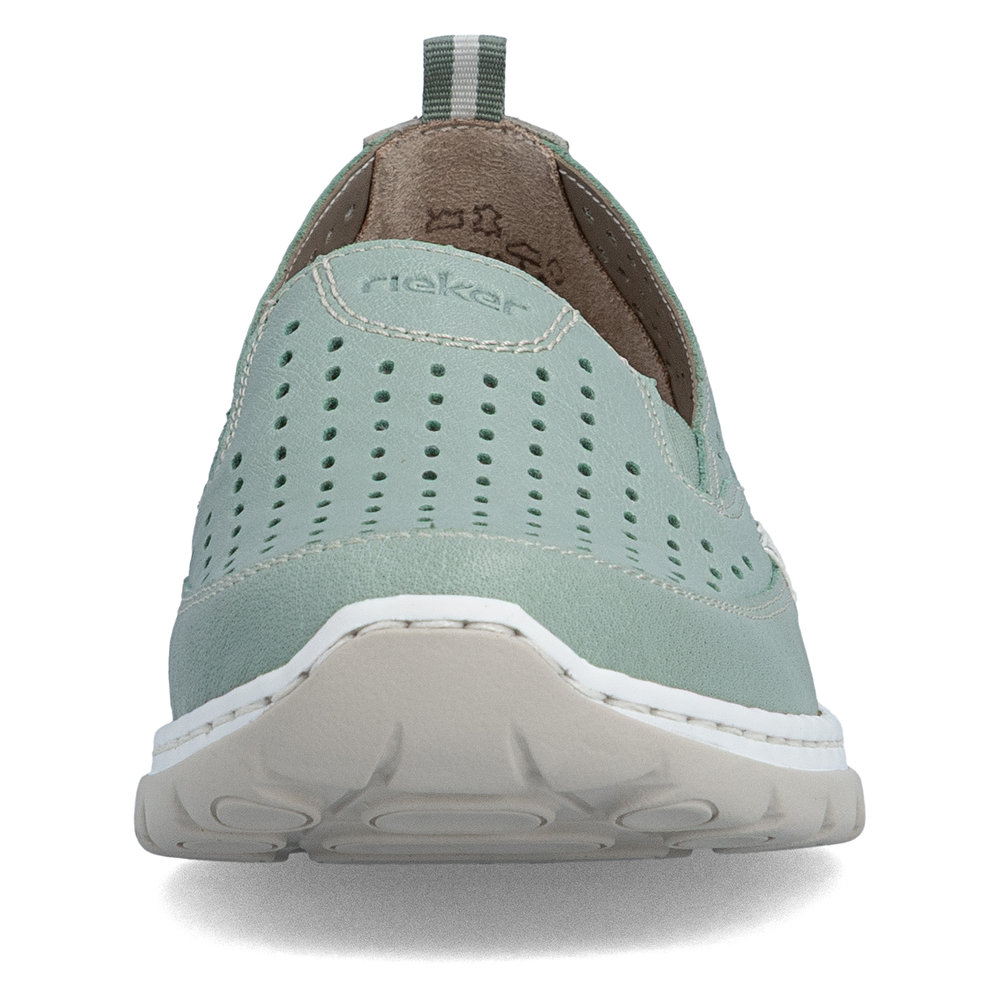 RIEKER L32F4-52 grüne Damen-Leder-Sommermokassins mit Antistress-Sohle