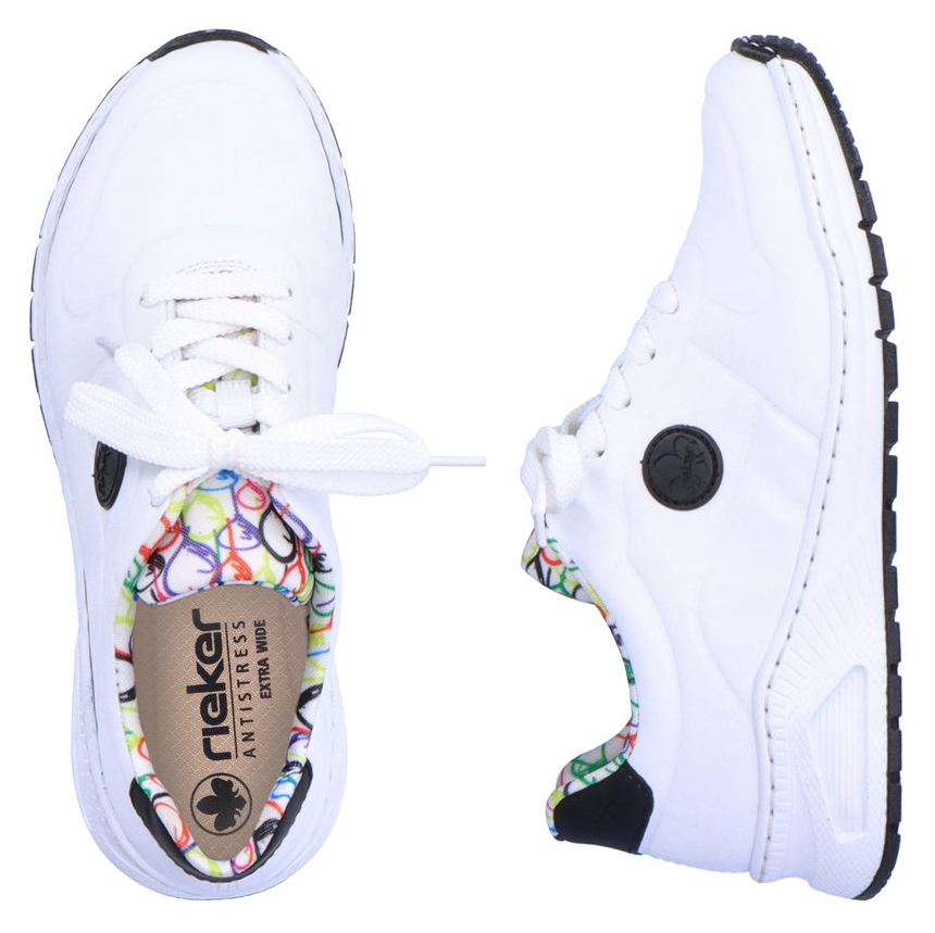 Diese einzigartigen Rieker-Sneaker verleihen Ihrem Outfit Frische und eine verspielte Note. Das weiße Obermaterial wird durch das schwarze Rieker-Logo an der Seite, ein schwarzes Detail an der Ferse und das luftige Ballonmuster auf dem Textilfutter und der Zunge zu einem echten Hingucker – inspiriert vom Jahrmarkt-Flair. Passend dazu finden Sie in unserem Sortiment auch einen schwarzen Rucksack mit Ballon-Design. Die klassische Schnürung sorgt für eine optimale Passform, während die herausnehmbare Memory-Foam-Einlegesohle und die Antistress-Sohle maximalen Komfort bieten. Ob beim Stadtbummel, im Kino oder bei einem Kaffee mit Freunden – mit diesen Sneakern setzen Sie modische Akzente