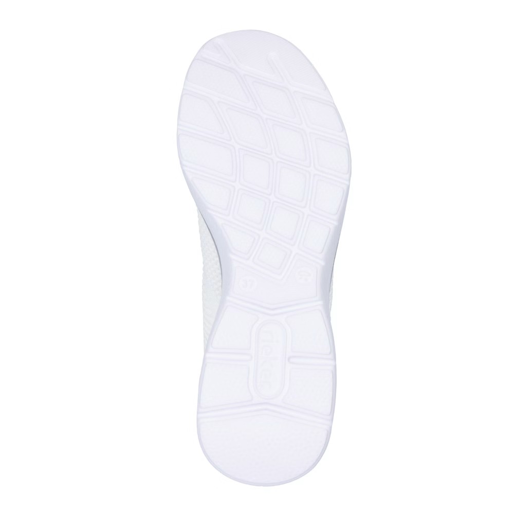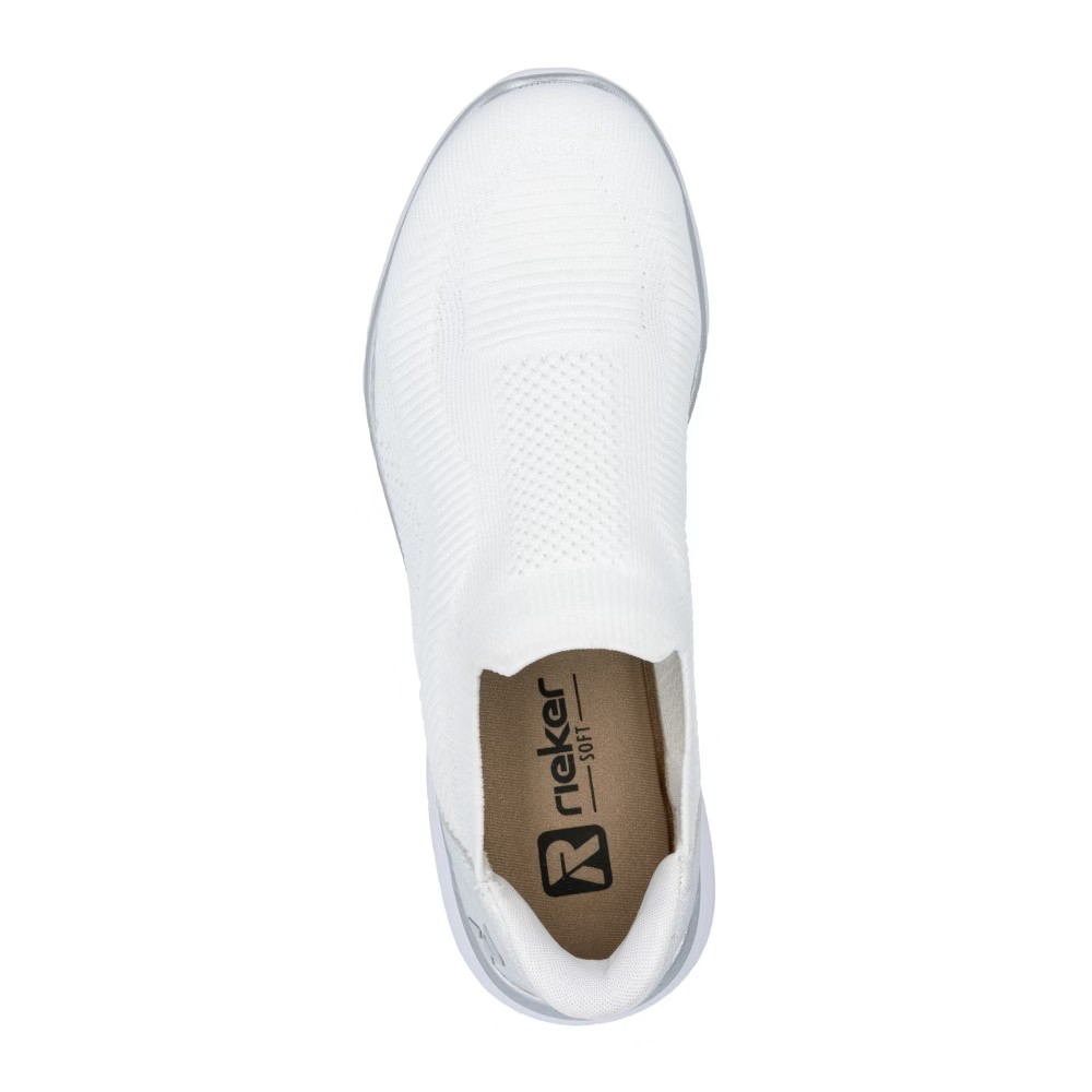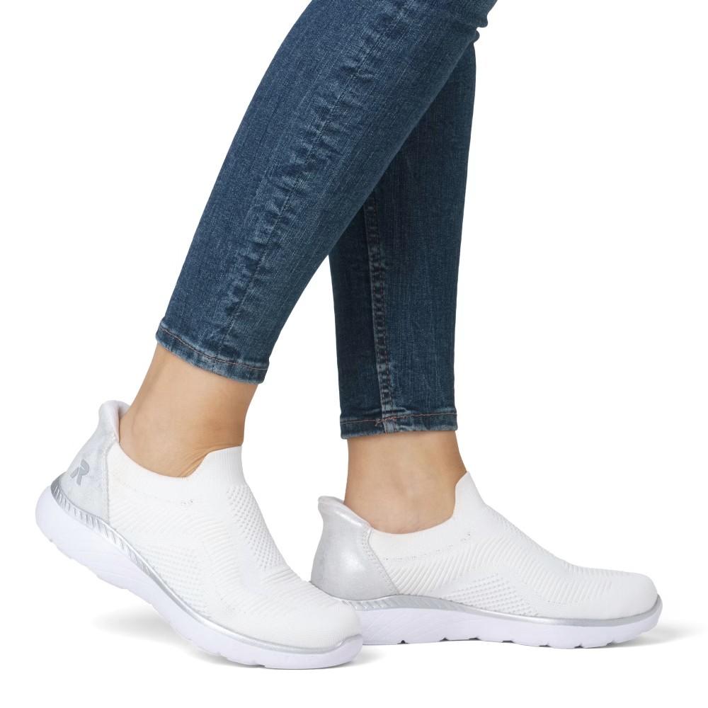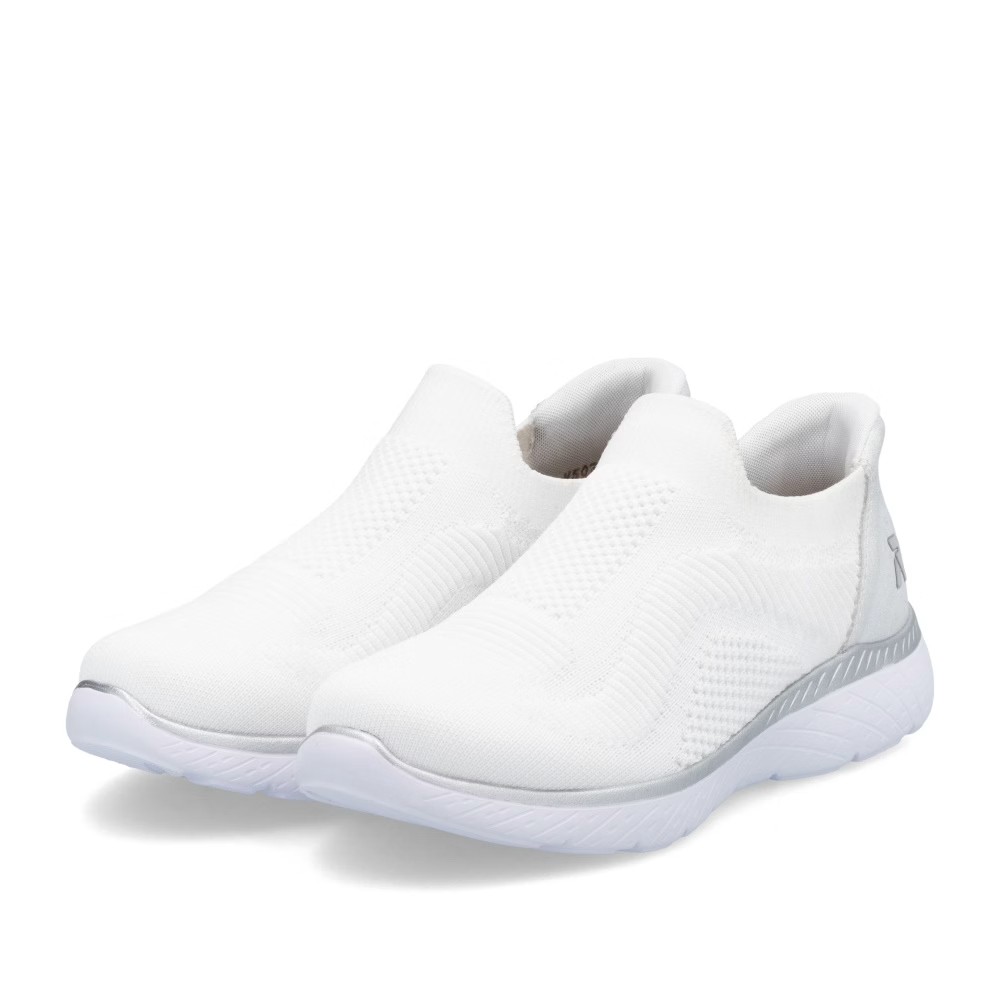 Die RIEKER Sneakers, die Sie mühelos anziehen und mit Leichtigkeit in den Tag starten, bieten nicht nur hohen Tragekomfort, sondern auch einen eleganten Stil dank der Kombination aus Weiß und Silber, die jedes Outfit aufhellt. Das textile Obermaterial sorgt für eine einfache Anpassung an die Fußform und ermöglicht ein schnelles Anziehen. Die weiche Memory-Foam-Einlegesohle passt sich perfekt an den Fuß an und bietet maximalen Komfort bei jedem Schritt. Die stoßdämpfende Sohle ist mit einem glänzenden Streifen verziert, der den Sneakern einen modernen Look verleiht und ihr einzigartiges Design unterstreicht. Eine ideale Wahl für den Alltag – sowohl für die Arbeit als auch für die Freizeit, wo modisches Design auf höchsten Tragekomfort trifft.