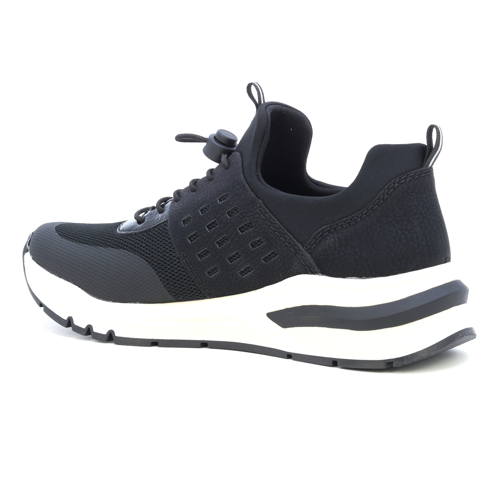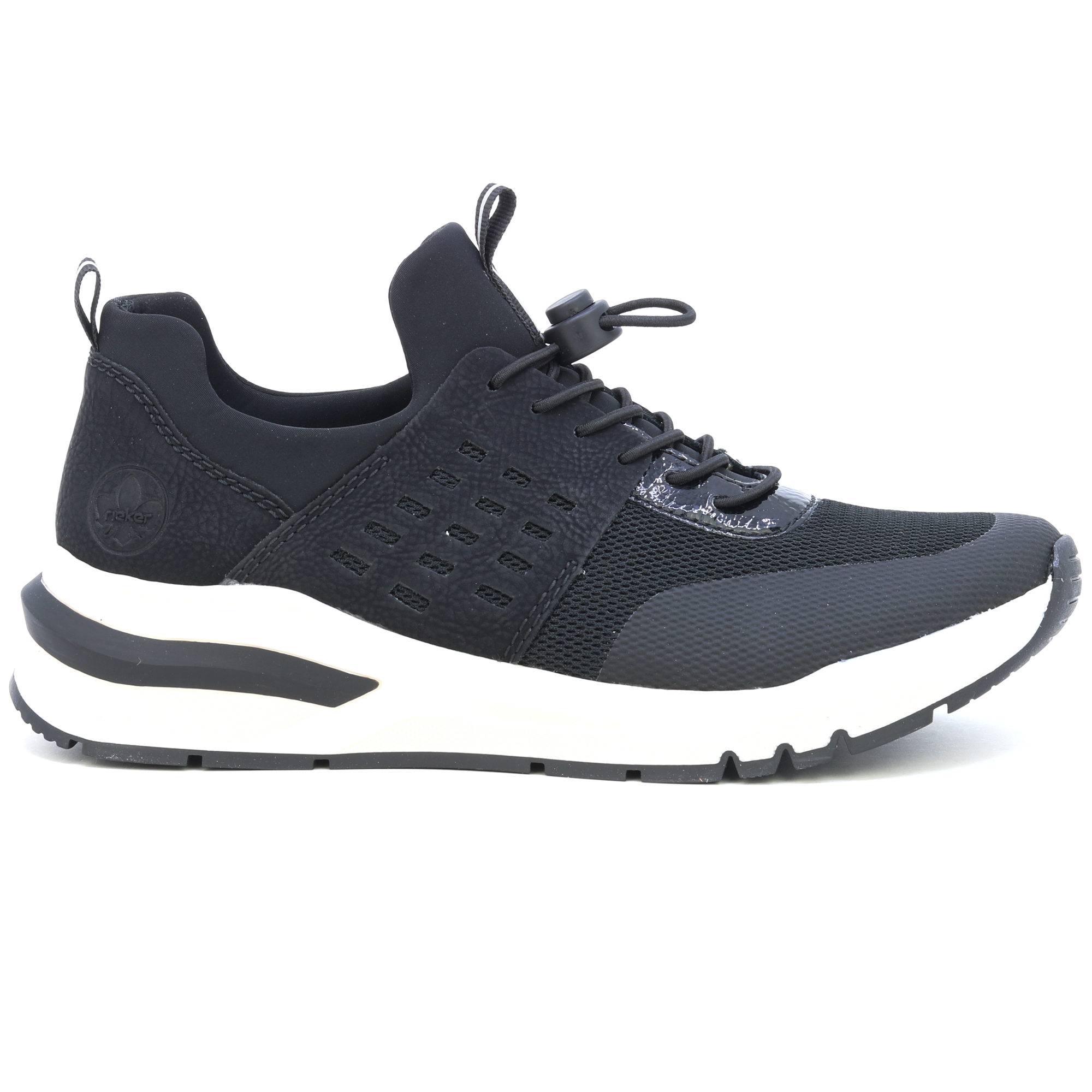 Die schwarzen Damen-Sneaker RIEKER M6651-00 stellen eine perfekte Kombination aus Eleganz und Komfort dar, die Sie im Alltag zu schätzen wissen. Die leichte Konstruktion und die flexible Sohle sorgen für Komfort auch bei längeren Bewegungen, während das moderne Design mit dezenten Details problemlos Ihr urbanes oder lässiges Outfit ergänzt. Hochwertige Materialien sorgen für Langlebigkeit und einfache Pflege, die weiche Innensohle für maximalen Komfort und die rutschfeste Sohle für Sicherheit auf verschiedenen Untergründen. Diese Sneaker sind eine tolle Wahl für alle Gelegenheiten, bei denen Sie einen stilvollen Look mit praktischem Komfort kombinieren möchten.