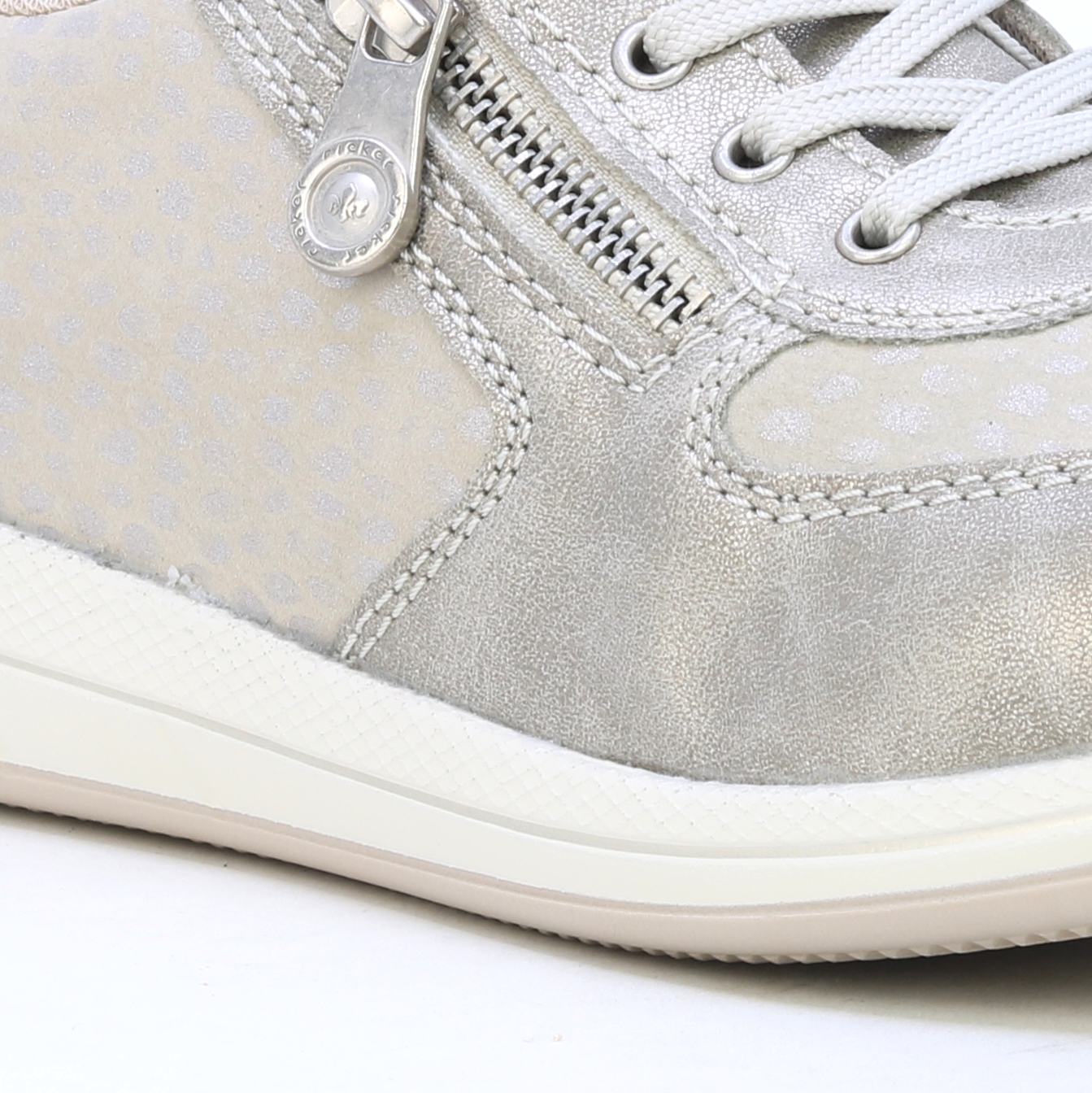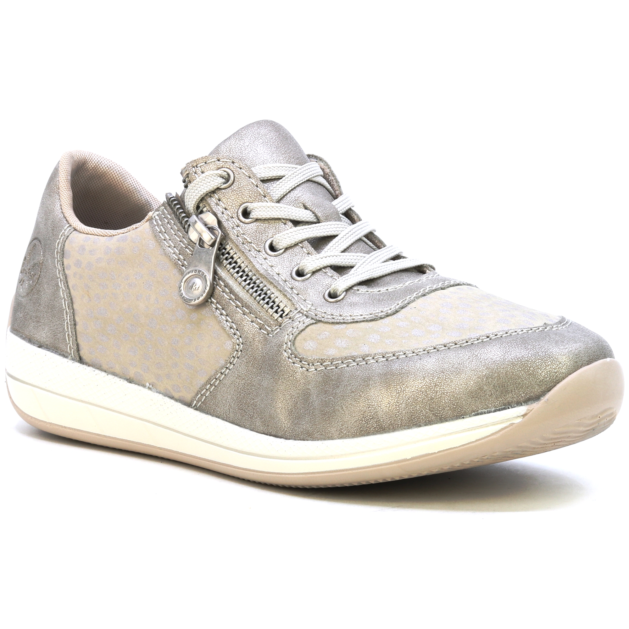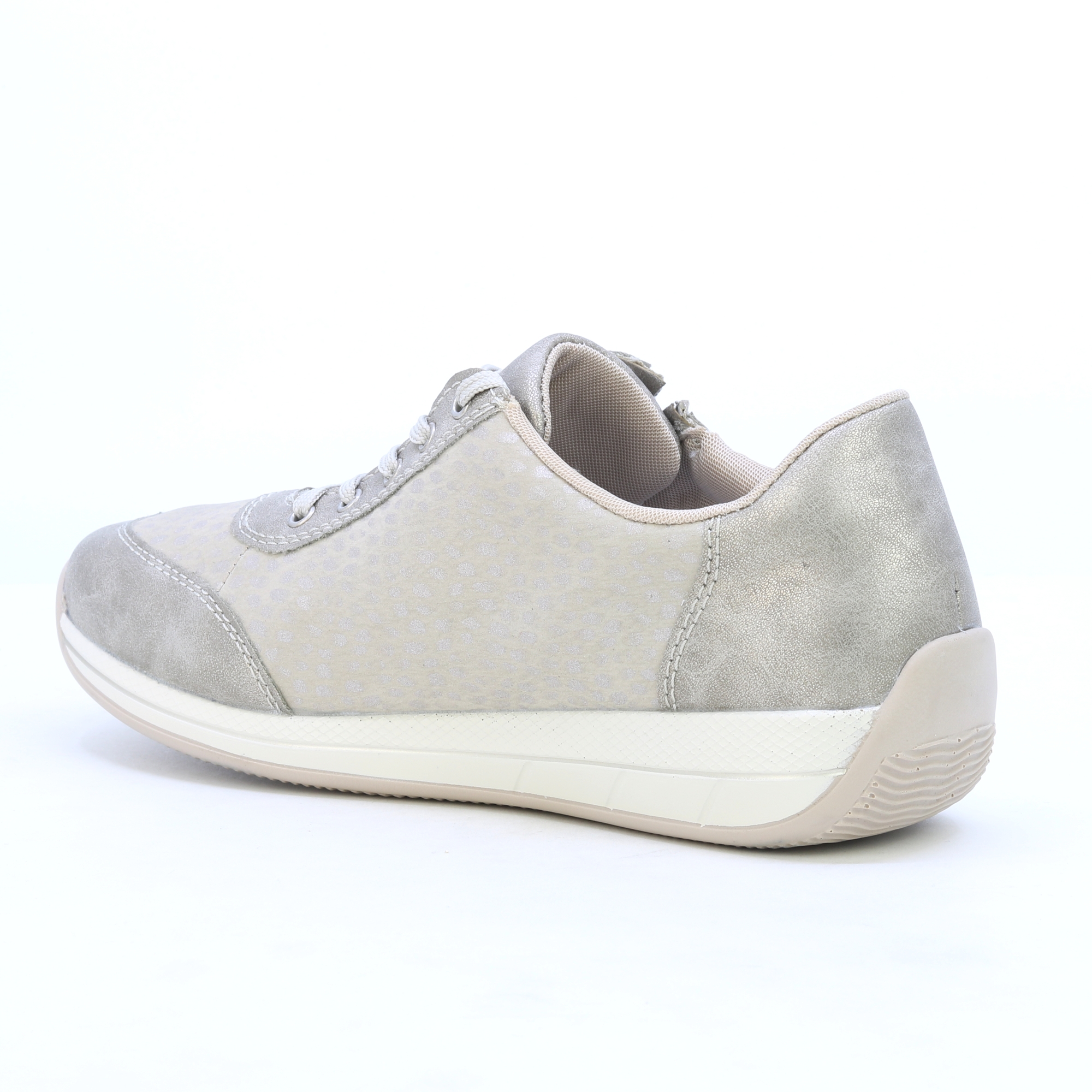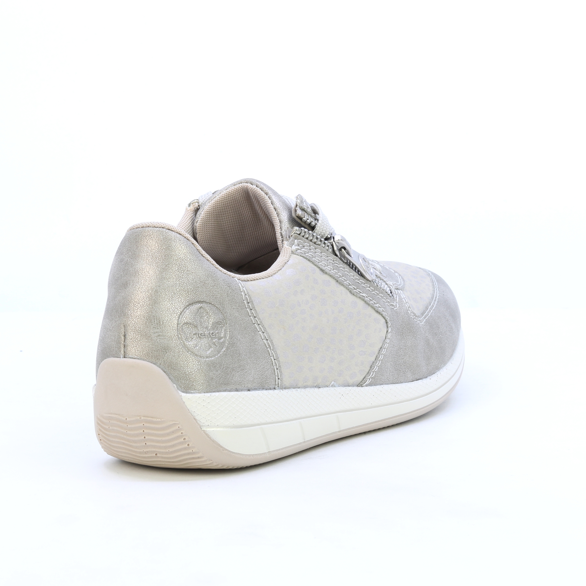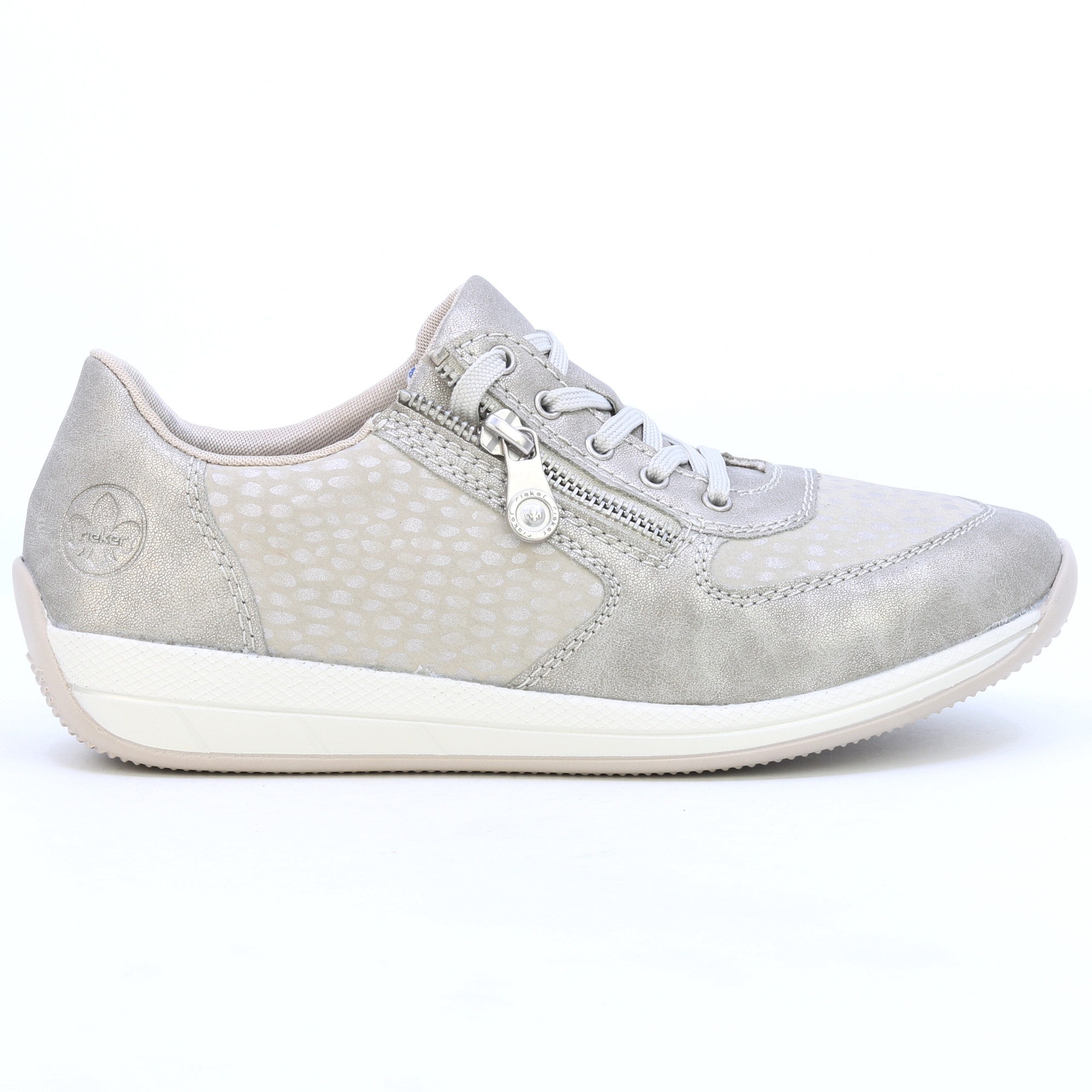 Die Damen-Sneaker RIEKER N1112-60 in der Farbe Beige sind eine tolle Kombination aus Stil und Komfort. Ihr modernes Design wird durch dezente Details ergänzt, die den Schuhen einen frischen und eleganten Look verleihen. Praktische Schnürung und Reißverschluss sorgen für einfaches Anziehen und Anpassen an die Fußform. Die leicht erhöhte Sohle sorgt nicht nur für Stabilität, sondern auch für maximalen Komfort beim ganztägigen Tragen. Diese Sneaker sind eine ideale Wahl für alltägliche Aktivitäten, Spaziergänge in der Stadt oder in der Freizeit.