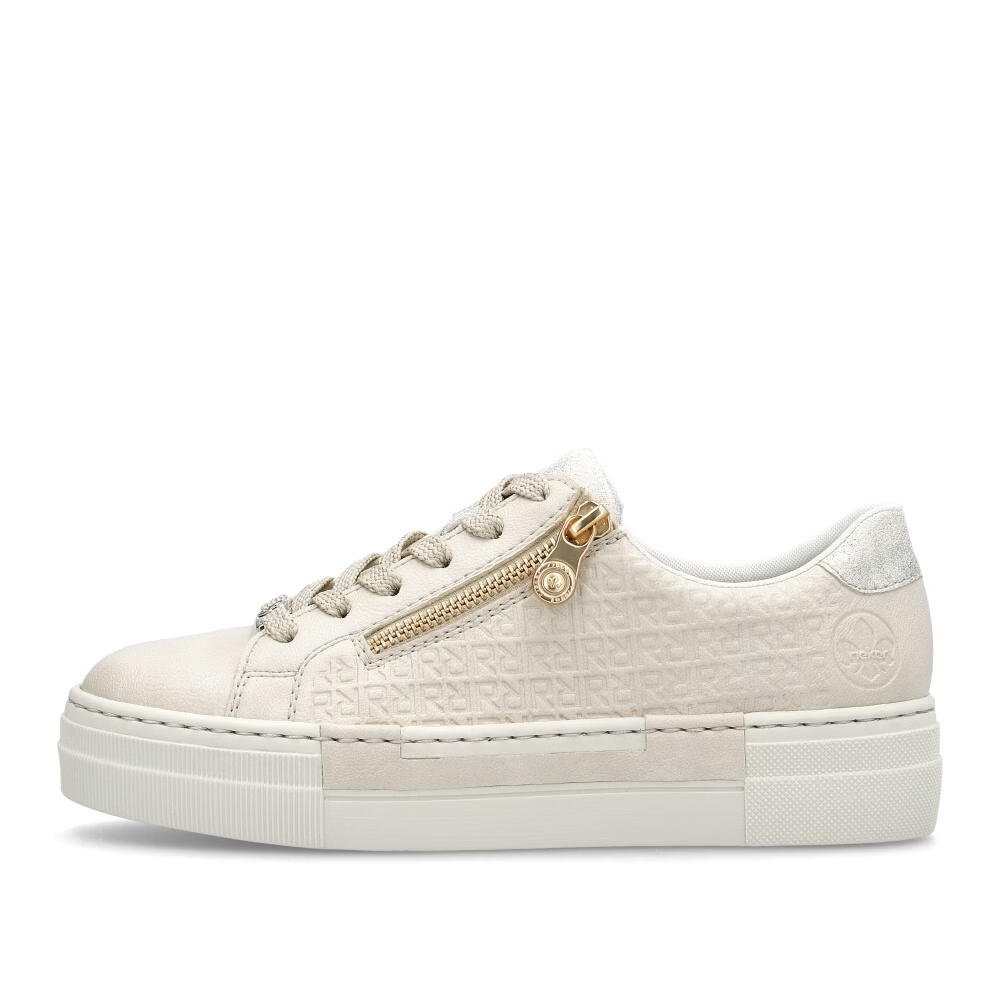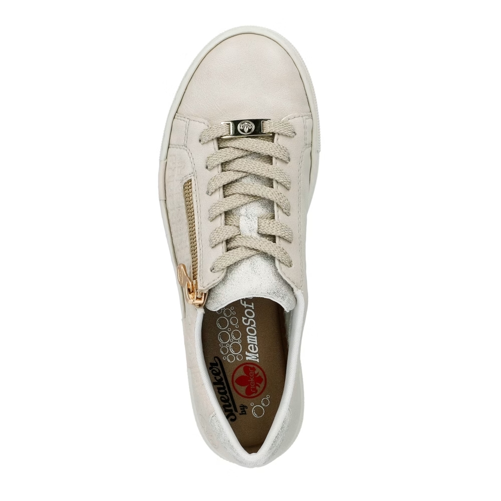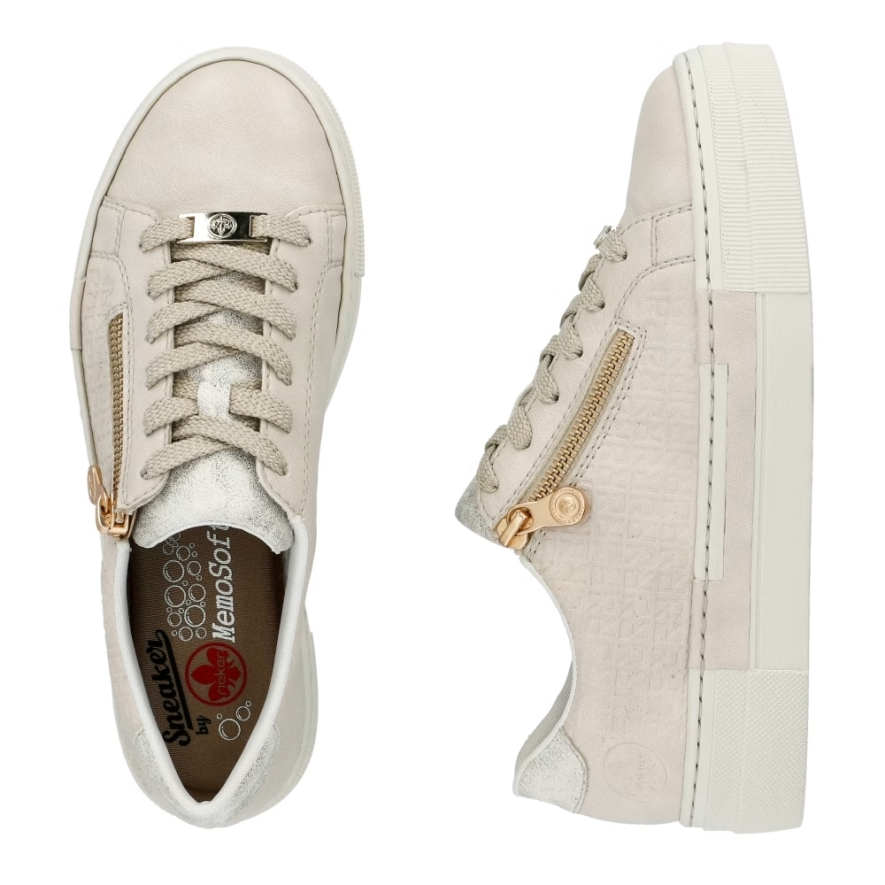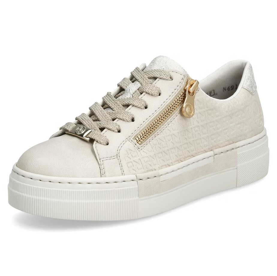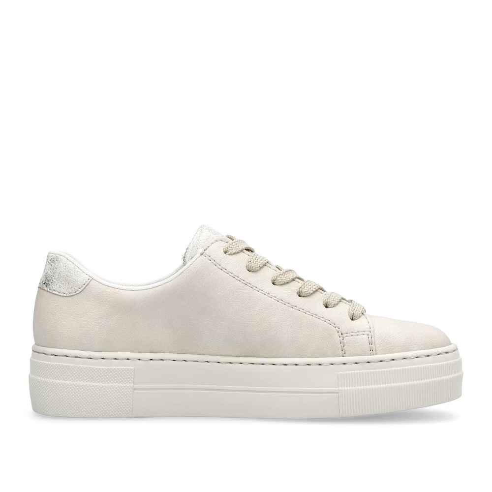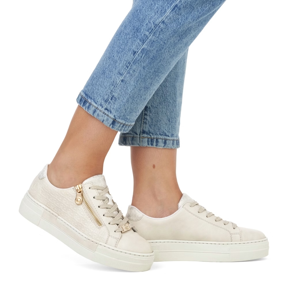 Die beige Damen-Sneaker RIEKER N4914-80 sind eine stilvolle Kombination aus Eleganz und Komfort, ideal für den Alltag. Dieses Modell besticht durch sein hellbeiges Obermaterial aus hochwertigem Kunstleder, das pflegeleicht ist und dem Schuh einen modernen Look verleiht. Das dezente Lochmuster an den Seiten der Sneaker verleiht nicht nur Stil, sondern sorgt auch für eine bessere Atmungsaktivität, die Sie bei längerem Tragen zu schätzen wissen. Die weiche RIEKER Antistress-Innensohle absorbiert Stöße perfekt und erhöht den Gehkomfort, während die leichte und flexible Sohle für Stabilität auf verschiedenen Untergründen sorgt. Durch die praktische Schnürung können die Sneaker je nach Bedarf angepasst werden und der Beigeton lässt sich leicht mit verschiedenen Outfits kombinieren, was diese Sneaker zu einer vielseitigen Wahl für jede Frau macht, die stilvoll aussehen und sich gleichzeitig wohlfühlen möchte.