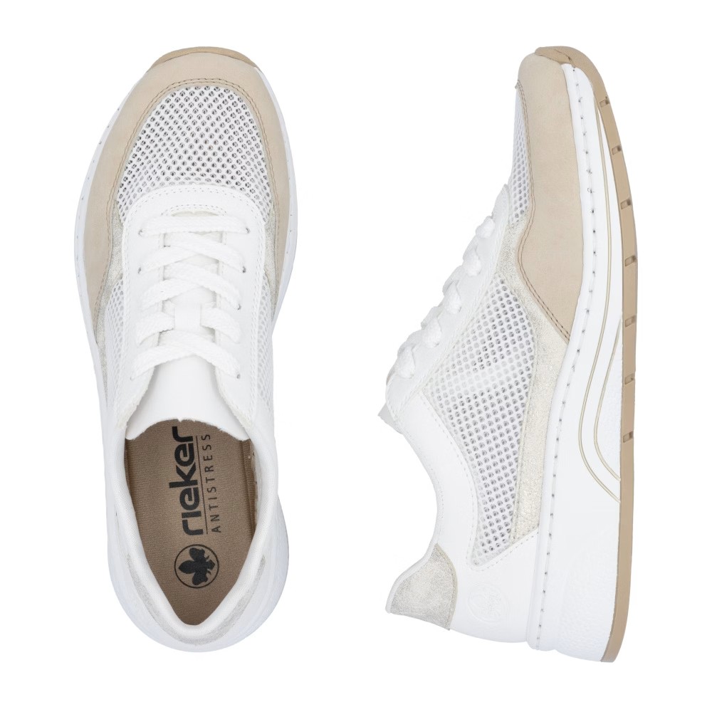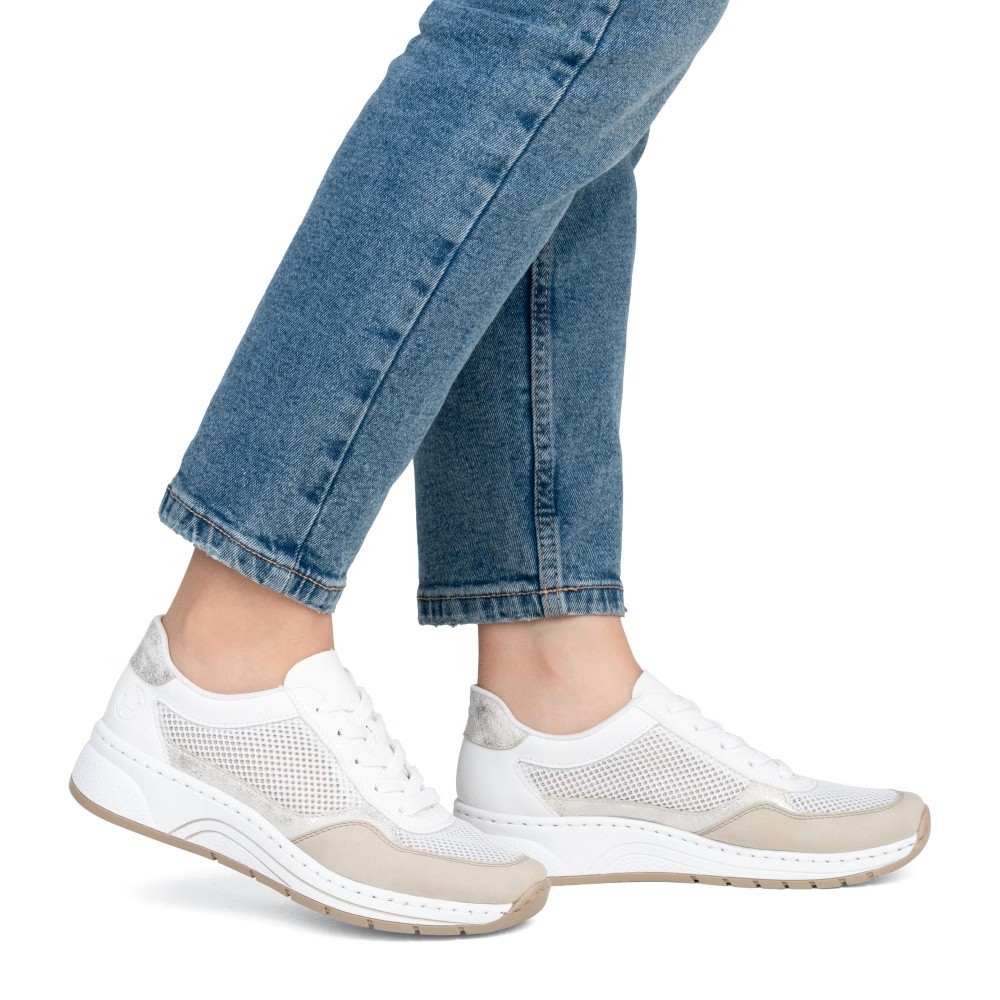 Dieses Sneakermodell überzeugt nicht nur durch seine dezente Farbgestaltung, sondern vor allem durch die atmungsaktiven Textileinsätze, die an warmen Tagen für optimale Belüftung sorgen. Die klassische Schnürung ermöglicht eine individuelle Anpassung an den Fuß, während die MemoSoft-Memory-Foam-Sohle für ein besonders weiches und angenehmes Laufgefühl sorgt. Dank der Antistress-Technologie genießen Sie maximale Leichtigkeit, Flexibilität und hervorragende Stoßdämpfung – ideal für lange Tage. Perfekt für einen Stadtbummel, den Arbeitsalltag oder als vielseitige Ergänzung zu Hosen und Röcken.