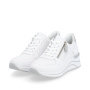 Das REMONTE-Schuhwerk ist die hochwertigere Linie der Marke RIEKER, die sich durch die hohe Qualität der verwendeten Materialien auszeichnet. Diese einzigartigen RIEKER-Sneakers verleihen jeder Frau durch ihr zeitloses Design und die hervorragend verarbeitete Sohle einen femininen Charme. Der Reißverschluss am Spann und die Schnürung ermöglichen ein einfaches Anziehen und eine individuelle Anpassung der Schuhe an Ihre Bedürfnisse. Dank der weichen, herausnehmbaren Einlegesohle und der höheren Sohle werden Sie sich den ganzen Tag über wie auf Wolken fühlen. Dieses Modell eignet sich perfekt für den Weg zur Arbeit oder für einen Stadtspaziergang, und der breitere Schnitt sorgt dafür, dass Ihre Füße ausreichend Platz haben.