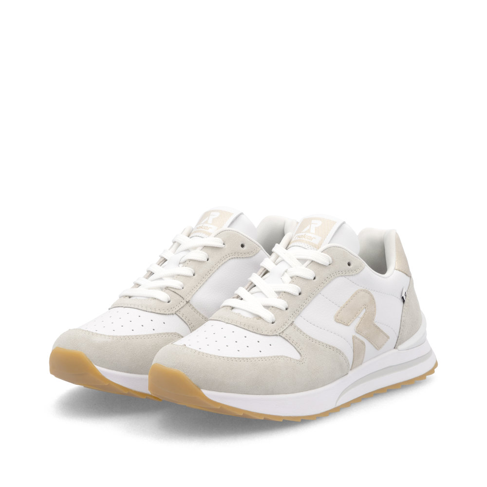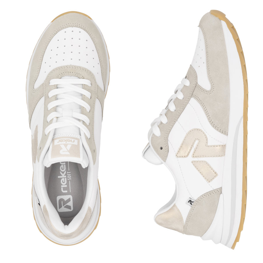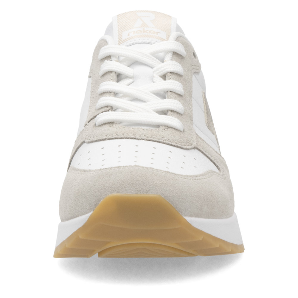 Die weißen Damen-Leder-Sneaker Rieker W2401-81 vereinen Stil, Komfort und Qualität in einem. Ihr Obermaterial aus weichem Echtleder sorgt nicht nur für eine elegante Optik, sondern auch für hohe Strapazierfähigkeit und Anpassungsfähigkeit an die Fußform. Dank ihrer leichten Konstruktion und der atmungsaktiven Verarbeitung eignen sie sich ideal für den ganztägigen Einsatz, egal ob in der Stadt, im Beruf oder bei Freizeitaktivitäten. Ausgestattet sind die Schuhe mit einer praktischen Schnürung, die eine einfache Anpassung ermöglicht und einer flexiblen Sohle, die Stöße absorbiert und für Stabilität auf unterschiedlichen Untergründen sorgt. Der Rieker W2401-81 erfüllt hohe Komfortansprüche und die Anti-Stress-Technologie sorgt für einen leichten und bequemen Schritt. Eine großartige Wahl für einen eleganten Stil im Alltag.
