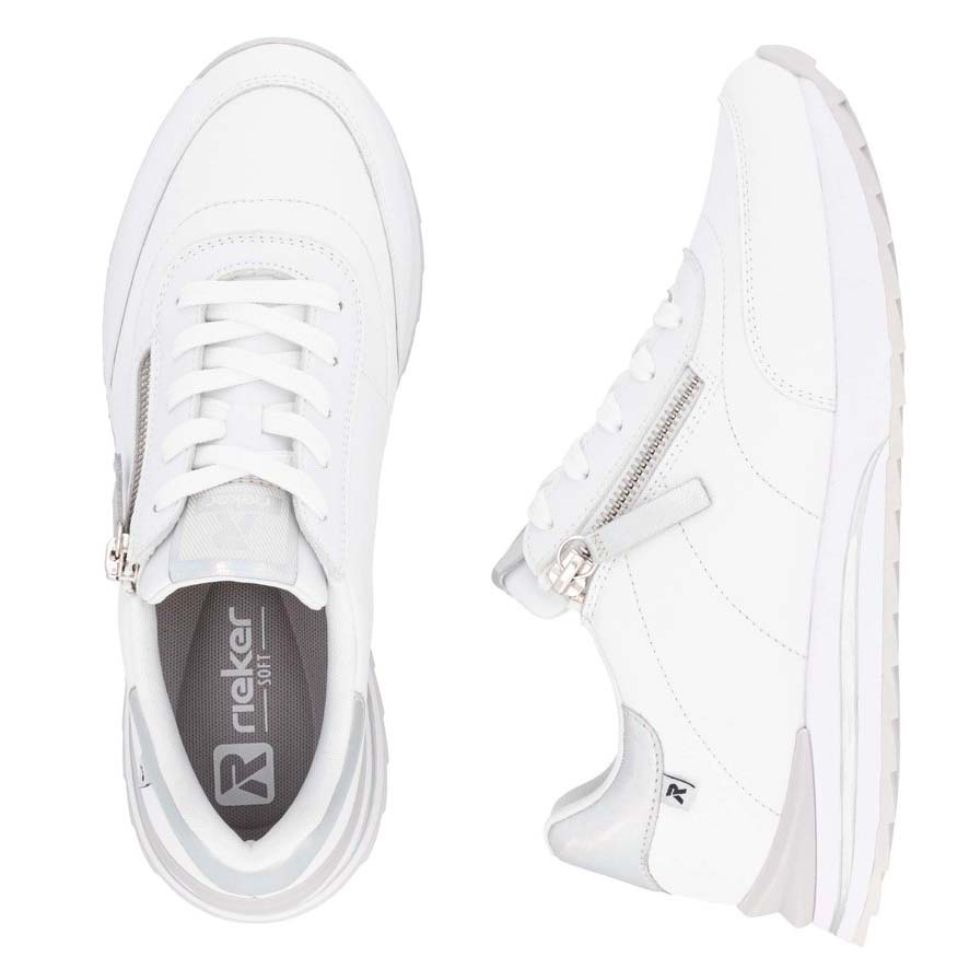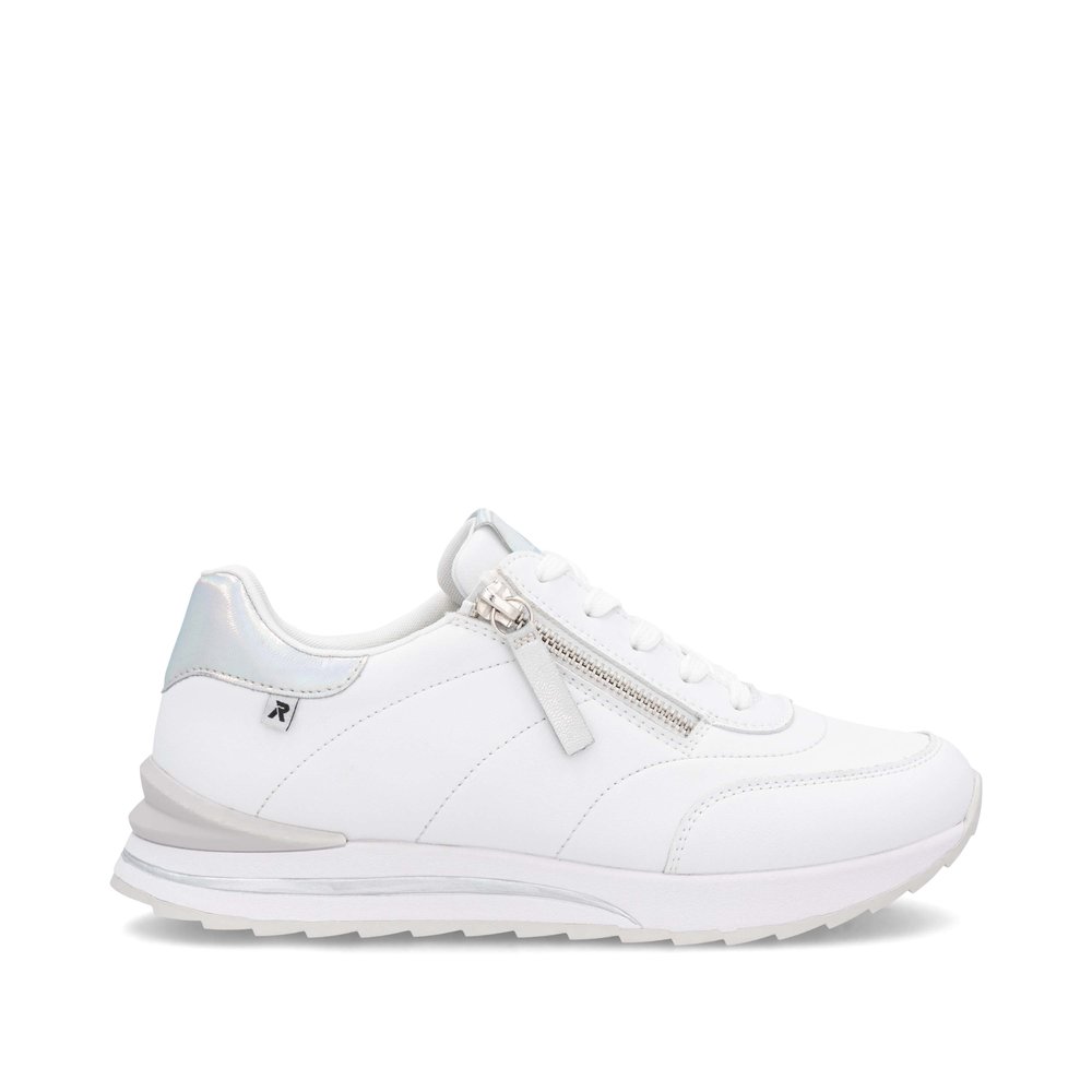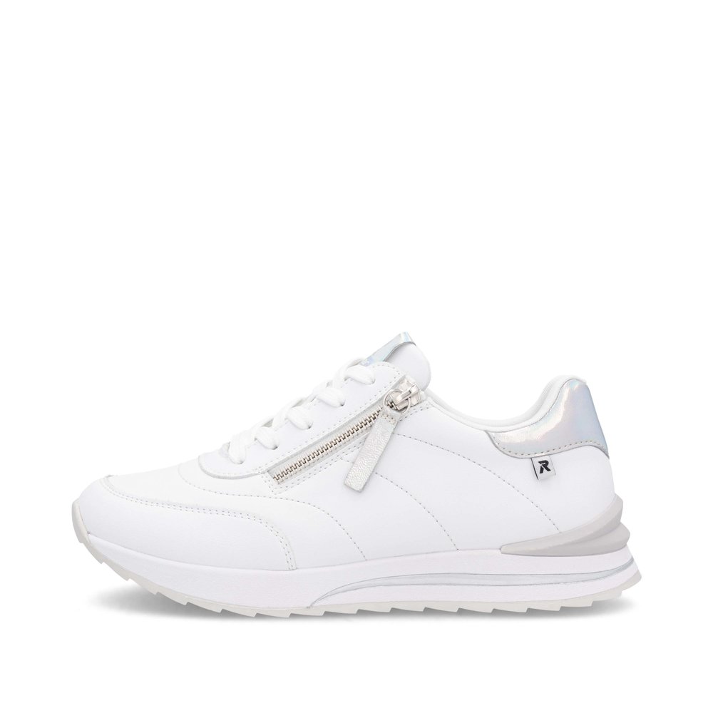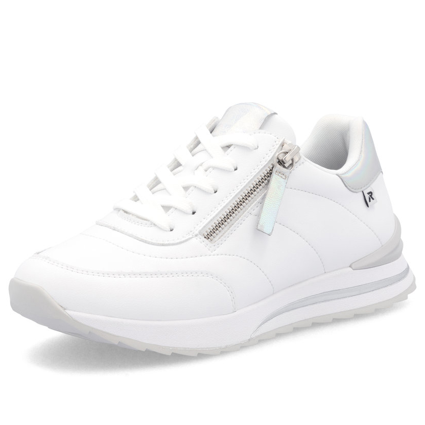 Genießen Sie sportlichen Stil mit den RIEKER Sneakern, die Sie auf den ersten Blick lieben werden. Das weiße Obermaterial ist mit dezenten glänzenden Details veredelt und verleiht dem Schuh eine moderne Optik. Dank der Schnürung lässt sich der Schuh perfekt an Ihre Fußform anpassen, während die herausnehmbare Einlegesohle optimalen Halt und ganztägigen Komfort bietet. Die erhöhte Sohle sorgt für Stabilität und ein angenehmes Laufgefühl, sodass diese Sneaker die ideale Wahl für den Alltag sind. Die Kombination aus Stil und Funktionalität mit der RIEKER Sport-Technologie macht jeden Schritt zu einem besonderen Erlebnis.