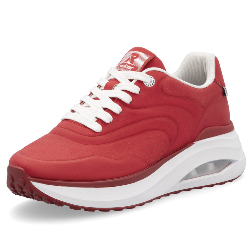 Die roten Sneaker von RIEKER vereinen sportlichen Stil mit höchstem Komfort – ideal für den Alltag und aktive Tage. Das Obermaterial beeindruckt mit einem minimalistischen, perforierten Muster und klaren Linien, die dem Schuh eine moderne Optik verleihen. Die robuste Sohle mit integrierter Luftkammer sorgt für optimale Dämpfung bei jedem Schritt, während die klassische Schnürung eine perfekte Anpassung an den Fuß ermöglicht. Die herausnehmbare Rieker Soft-Innensohle bietet ganztägigen Tragekomfort und Atmungsaktivität. Dank der Antistress-Technologie sind die Schuhe besonders leicht, flexibel und stoßdämpfend. Zudem ist dieses Modell vegan und somit frei von tierischen Materialien – ideal für alle, die Wert auf einen bewussten Lebensstil legen. Mit dem RIEKER Sport Sneaker genießen Sie modernes Design und Funktionalität in perfekter Balance.