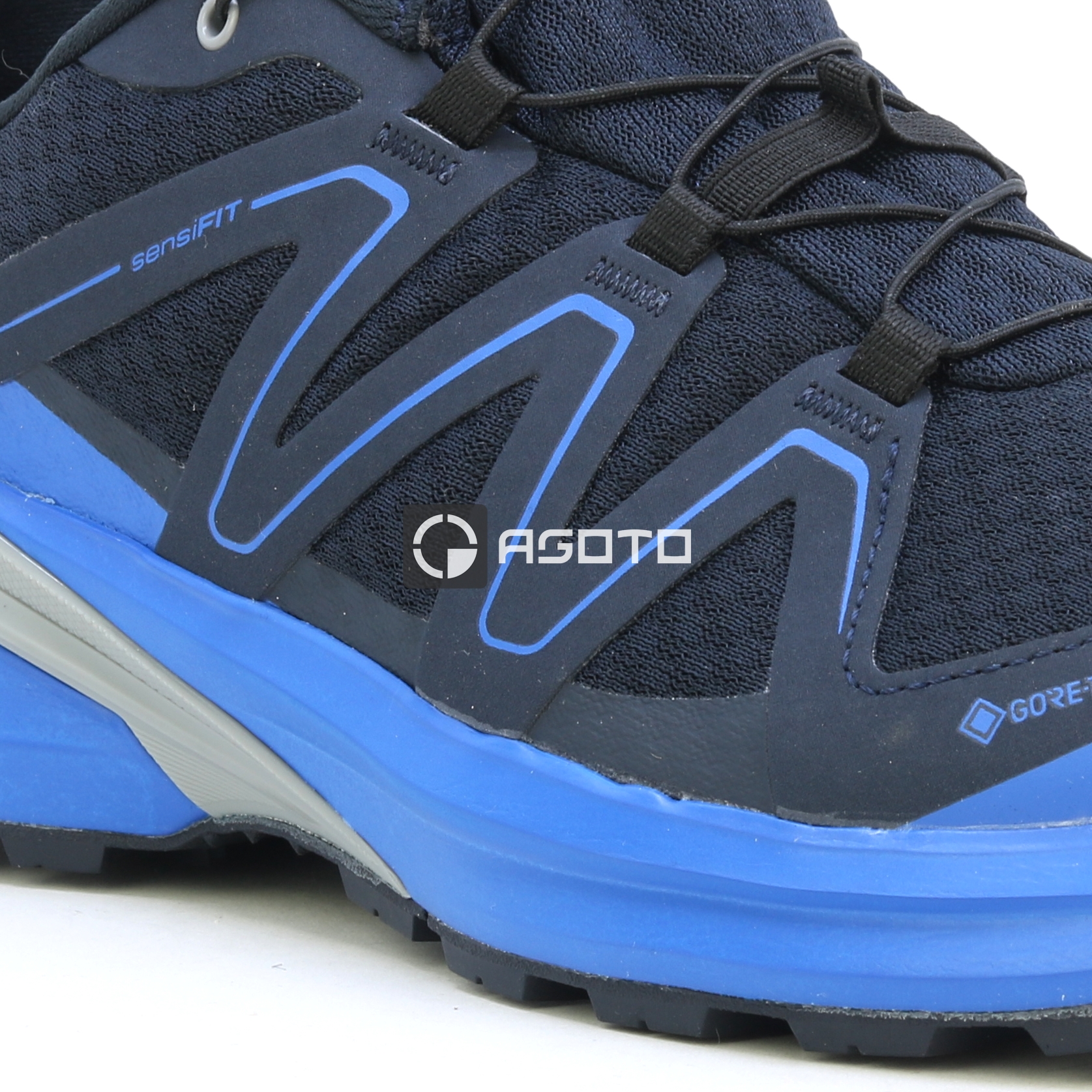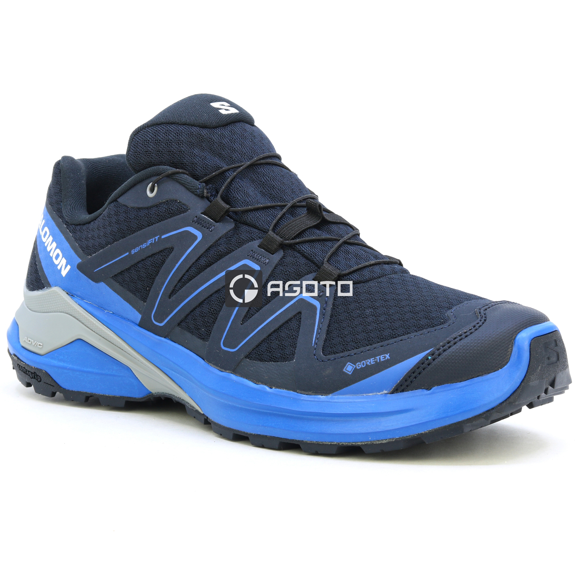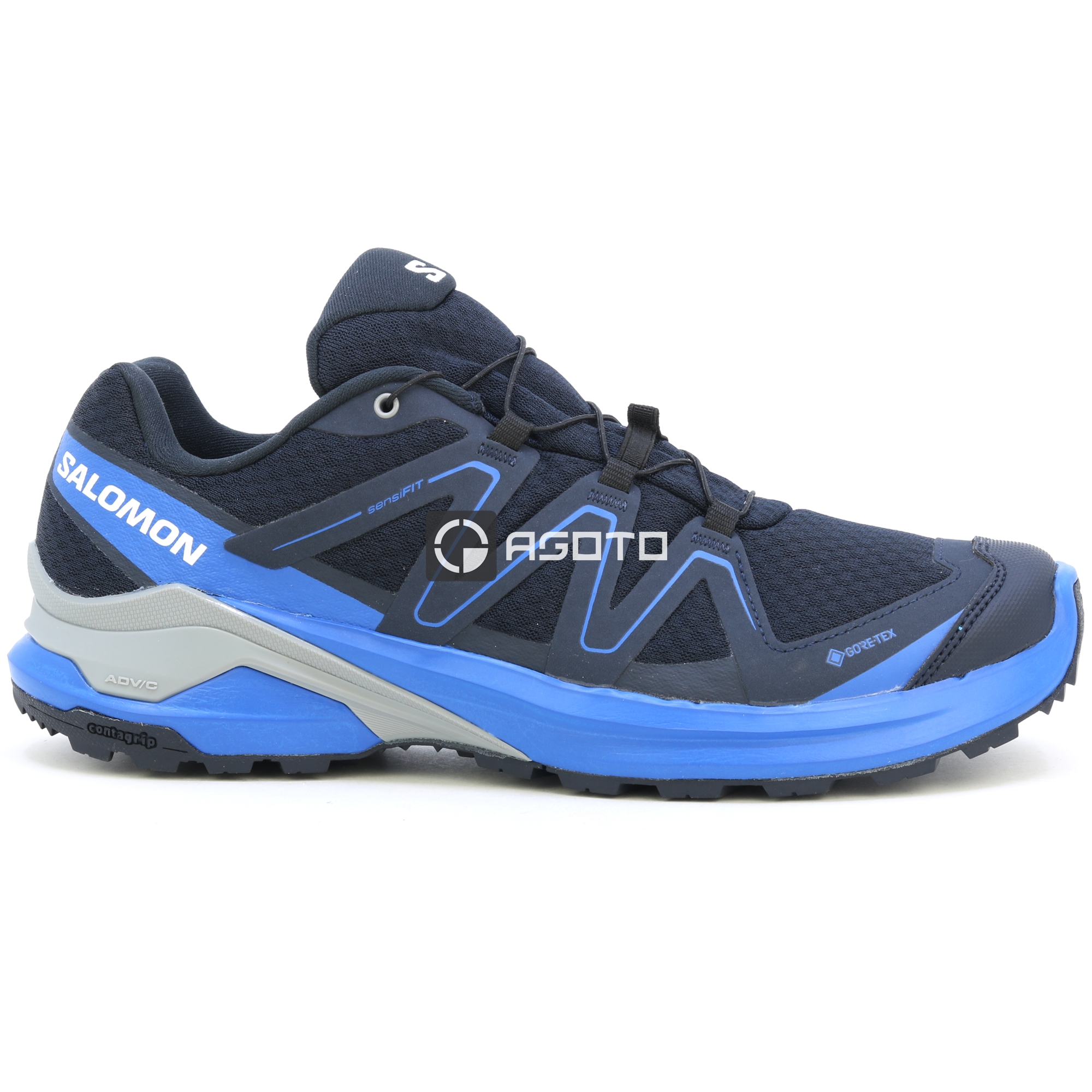 Der Salomon EXAMOTION GTX in der Farbkombination Dark Navy / Nautical Blue / Monument ist ein vielseitiger Outdoor-Schuh, der sportliches Design mit innovativer Technologie und hohem Tragekomfort vereint. Die GORE-TEX Membran hält Ihre Füße auch bei schlechtem Wetter trocken, während atmungsaktive Materialien für optimale Belüftung sorgen – selbst bei langen Einsätzen. Das strapazierfähige Obermaterial ist auf Langlebigkeit ausgelegt und passt sich dem Fuß hervorragend an, egal ob Sie auf Waldwegen oder in der Stadt unterwegs sind. Die leichte Zwischensohle bietet angenehme Dämpfung und Stabilität, während die Außensohle mit griffigem Profil für sicheren Halt auf verschiedensten Untergründen sorgt. Der EXAMOTION GTX ist die perfekte Wahl für aktive Menschen, die einen zuverlässigen Schuh für Alltag und Abenteuer in der Natur suchen.
