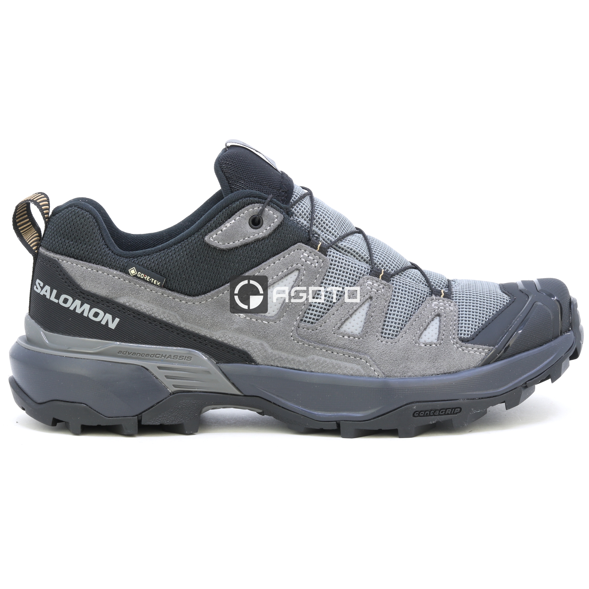 Der Salomon X Ultra 360 Ltr GTX verbindet die klassische Robustheit von Leder mit einem modernen Ansatz für Outdoor-Schuhe und knüpft an die erfolgreiche X-Ultra-Serie an, die bei Wanderern weltweit sehr beliebt ist. Ausgestattet mit einer GORE-TEX Membran bietet der Schuh zuverlässigen Schutz vor Nässe, während die gedämpfte EnergyCell-Zwischensohle aus EVA-Schaum für effektive Stoßabsorption sorgt. Die Advanced Chassis™ Technologie gewährleistet hohe Seitenstabilität, sicheren Halt und gleichzeitig Flexibilität bei jedem Schritt. Die All Terrain Contagrip® Laufsohle bietet hervorragende Traktion auf unterschiedlichsten Untergründen – von nassen und rutschigen Passagen bis hin zu trockenen und steinigen Trails. Strapazierfähiges Nubukleder in Kombination mit synthetischem Obermaterial erhöht die Widerstandsfähigkeit und den Schutz auch unter anspruchsvollen Bedingungen, während eine verstärkte Zehenkappe und ein Schmutzschutzsystem vor vorzeitigem Verschleiß schützen. Für hohen Tragekomfort sorgt die geformte, antibakterielle OrthoLite® Einlegesohle, die Atmungsaktivität fördert und Geruchsbildung reduziert. Die SensiFit™ Technologie umschließt den Fuß präzise, und das Quicklace™ Schnellschnürsystem ermöglicht ein einfaches Anpassen mit praktischer Verstautasche für die Schnürsenkel. Durch den Einsatz recycelter Materialien ist dieses Modell zudem eine umweltbewusstere Wahl und bietet die ideale Balance aus Leistung, Langlebigkeit und Komfort bei jeder Tour.