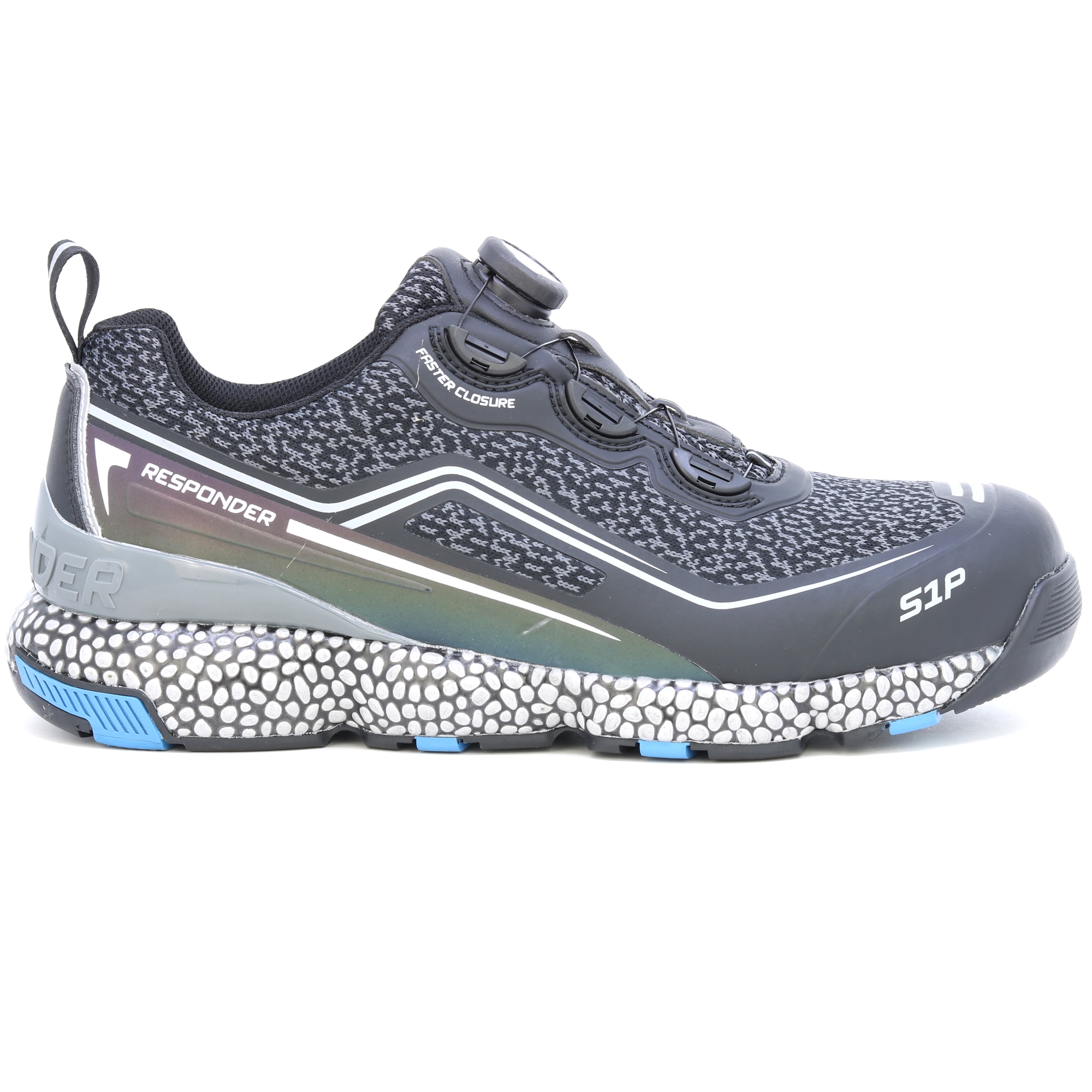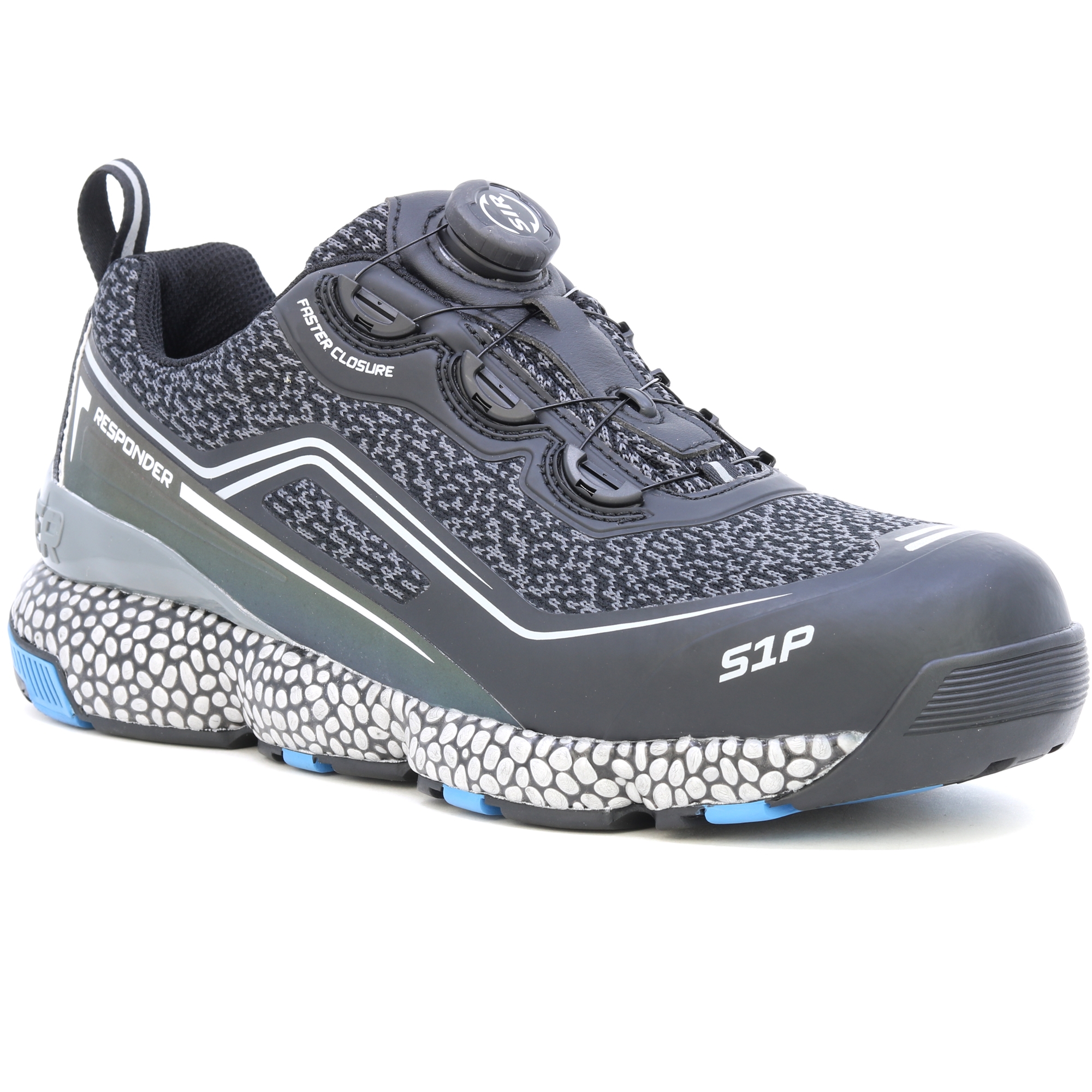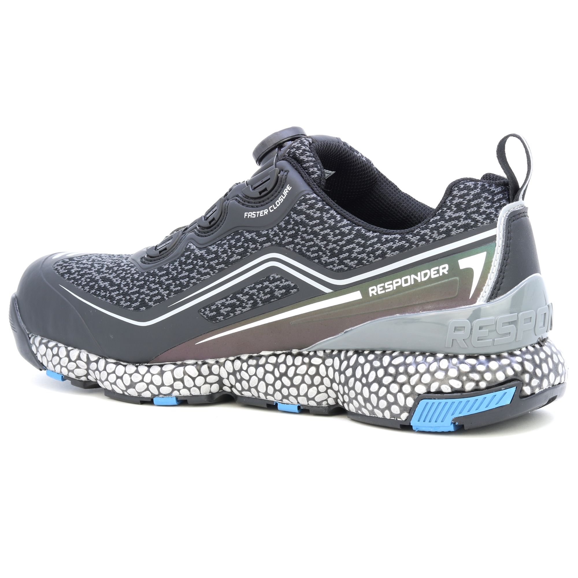 AUFMERKSAMKEIT! Extrem leichte und bequeme Arbeitsschuhe. Das patentierte Responder-System vermittelt das Gefühl, einen Fuß in Schaumstoffpantoffeln zu haben und garantiert gleichzeitig, dass Sie sich auch nach dem ganzen Tag Tragen nicht müde fühlen! Halbschuhe mit ultradynamischem Design, mit Aluminium-Zehenkappe und einer Verbundzwischensohle mit einer konstanten Dicke von 4 mm. Ausgestattet mit einem Obermaterial aus Action-Nubukleder mit Schnürsenkeln und reflektierenden Einsätzen. E-TPU Responder/Gummisohle sorgt für hervorragende Elastizität und Dämpfungswirkung: Die Zwischensohle aus expandiertem thermoplastischem Polyurethan bedeckt den gesamten Fuß und bietet Flexibilität und voll reaktionsfähige Dämpfung. Die Gummisohle betont dank ihrer tiefen Längsrillen die Flexibilität der Sohle und sorgt für hervorragenden Halt auf allen Untergründen. Die RESPONDER-Zwischensohle besteht aus einer Mischung, die Tausende von E-TPU-Perlen mit hoher Elastizität und Haltbarkeit kombiniert. Futter und Perforation im Plantarbereich mit hervorragenden Anti-Schock-Eigenschaften. Antistatisch. Das Polyester-Mesh-Futter verfügt aufgrund seines hochsaugfähigen Gewebes und seiner Struktur über eine hervorragende Drainage. Hauptmerkmale: Die patentierte RESPONDER-Technologie in der Zwischen- und Einlegesohle sorgt für eine hervorragende Reaktionsdämpfung, extreme Leichtigkeit und Flexibilität auf der gesamten Fußoberfläche und gewährleistet so eine hervorragende Leistung auch nach längerem und intensivem Gebrauch. Der Fersenstabilisator beugt Fußermüdung vor und verbessert die Fußstabilität.